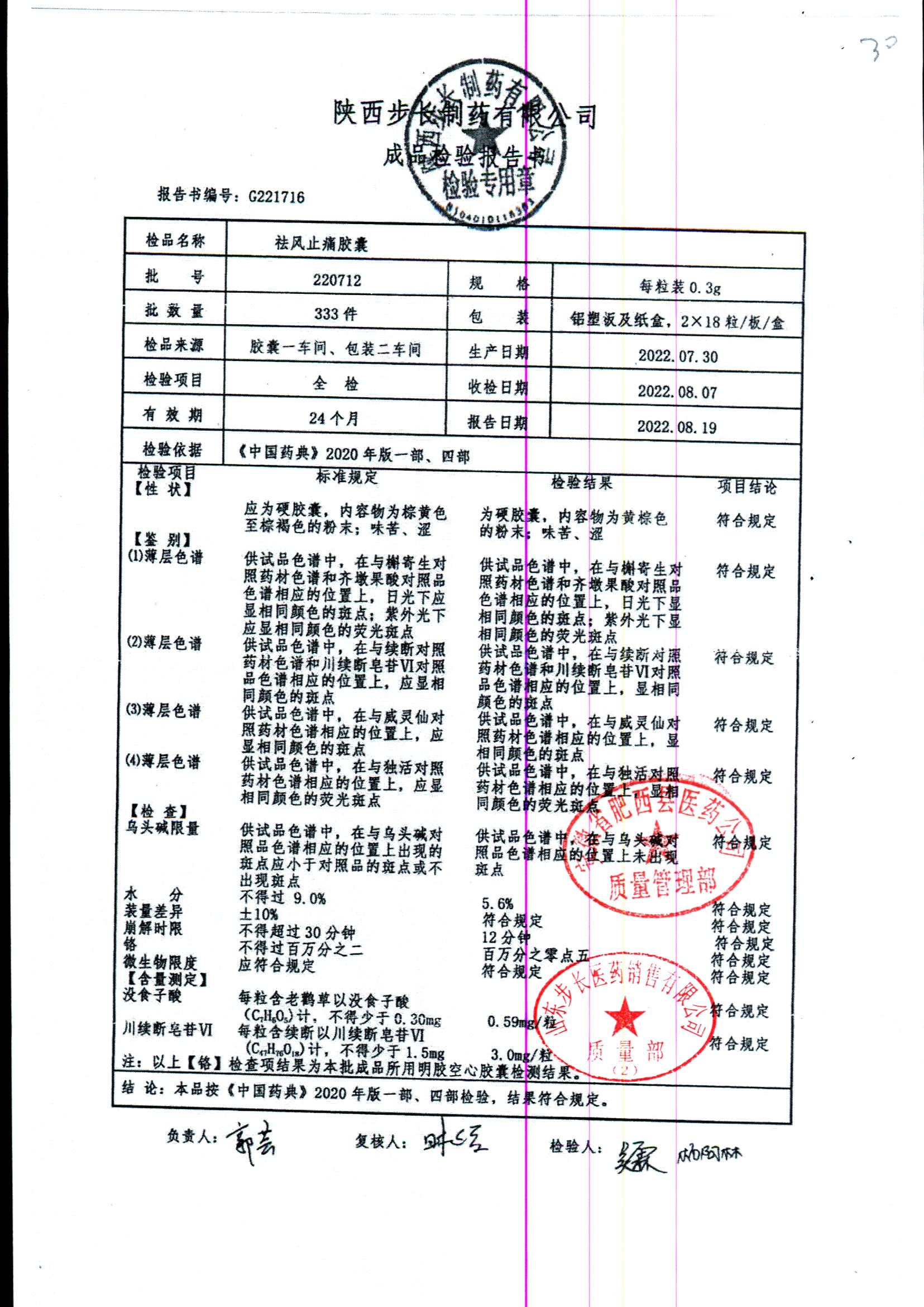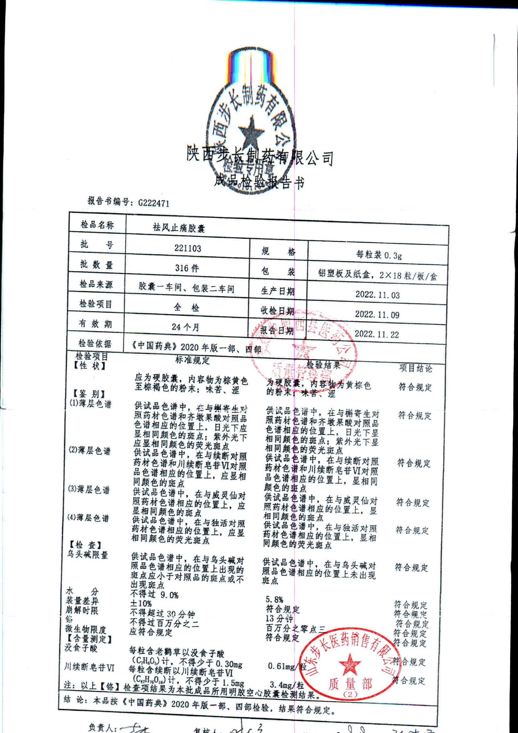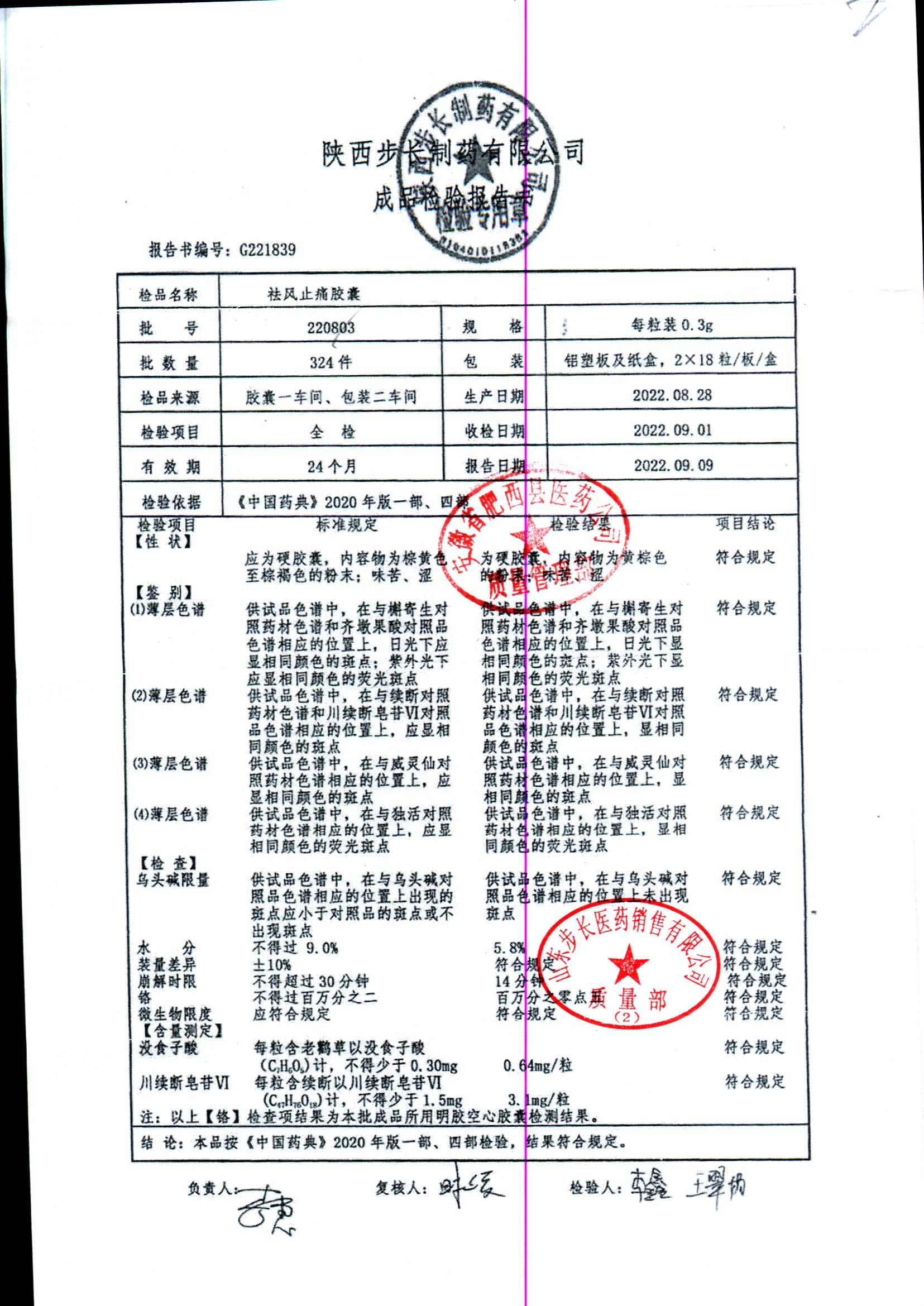 祛风止痛胶囊 | 0.3g*36粒 | 220803 | 查看详情 |