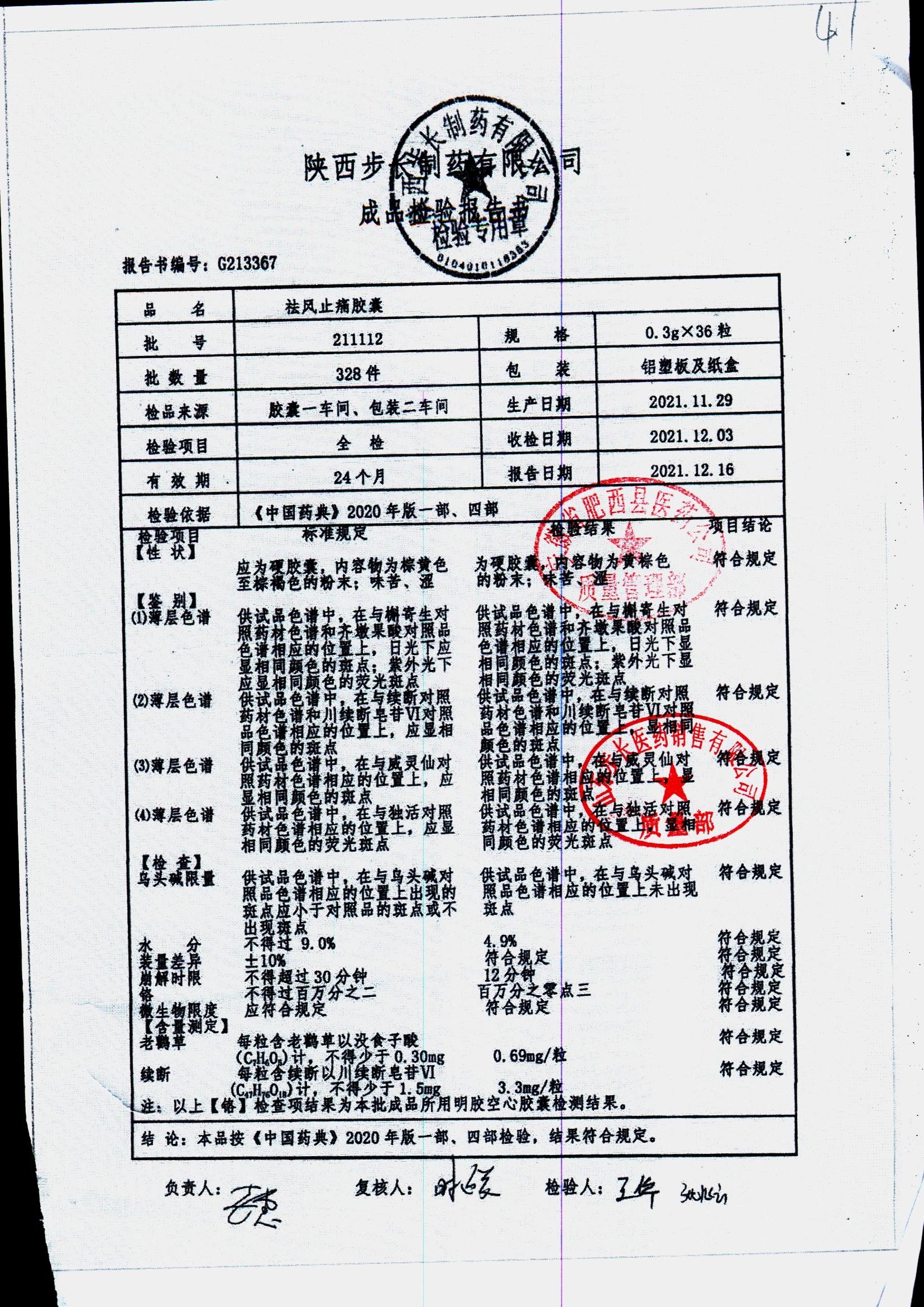 祛风止痛胶囊 | 0.3g*36粒 | 211112 | 查看详情 |