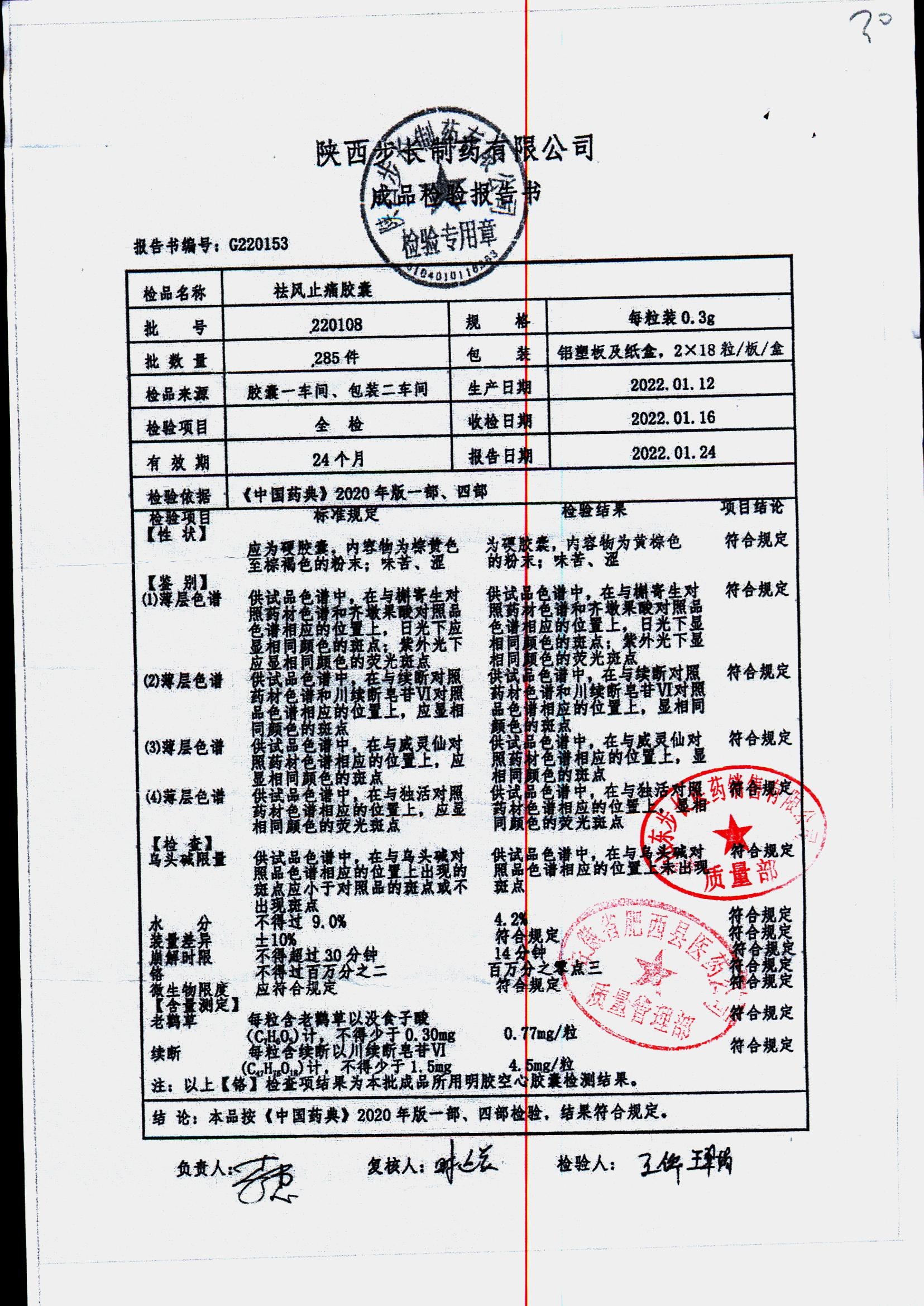祛风止痛胶囊 | 0.3g*36粒 | 220108 | 查看详情 |