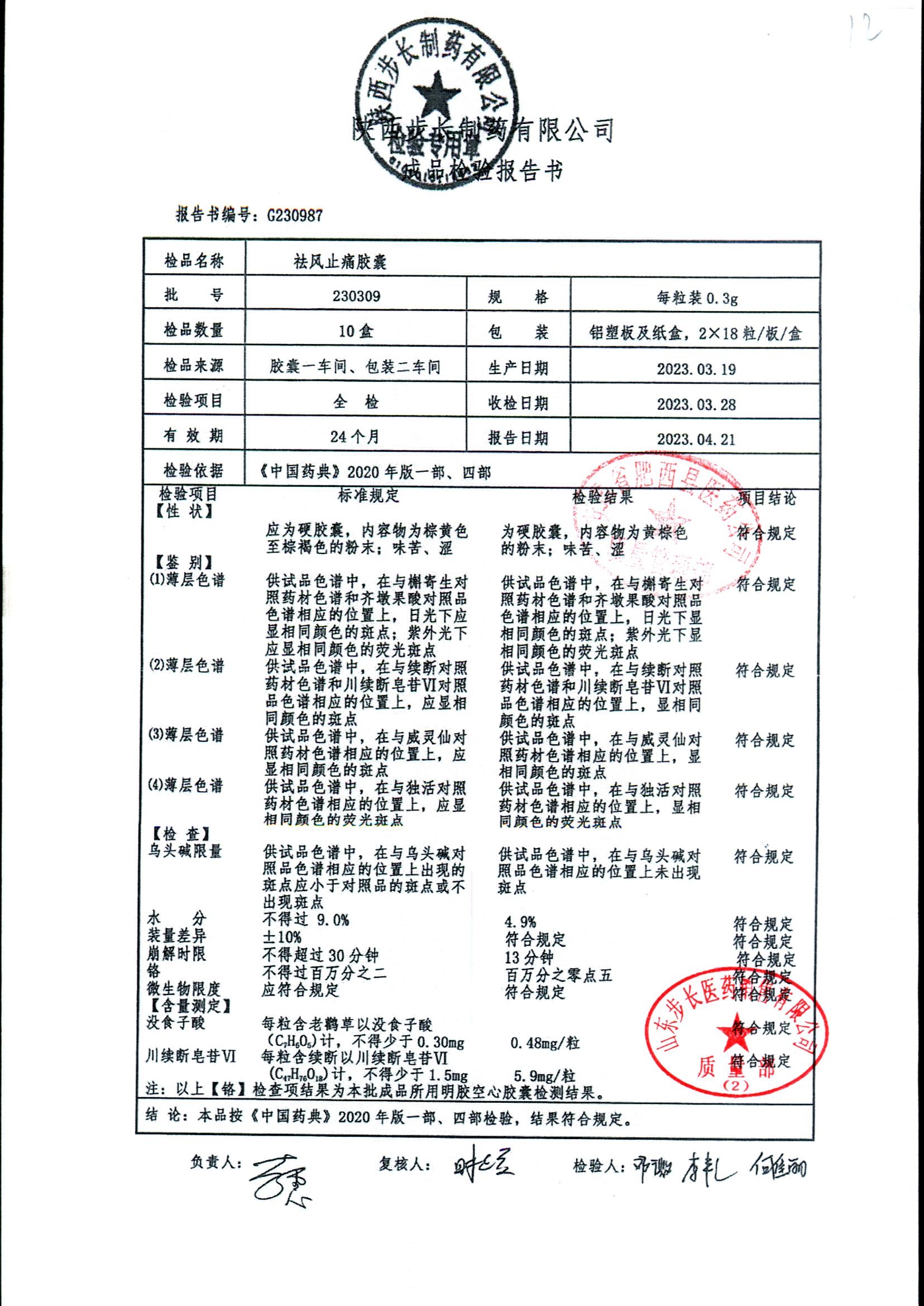 祛风止痛胶囊 | 0.3g*36粒 | 230309 | 查看详情 |