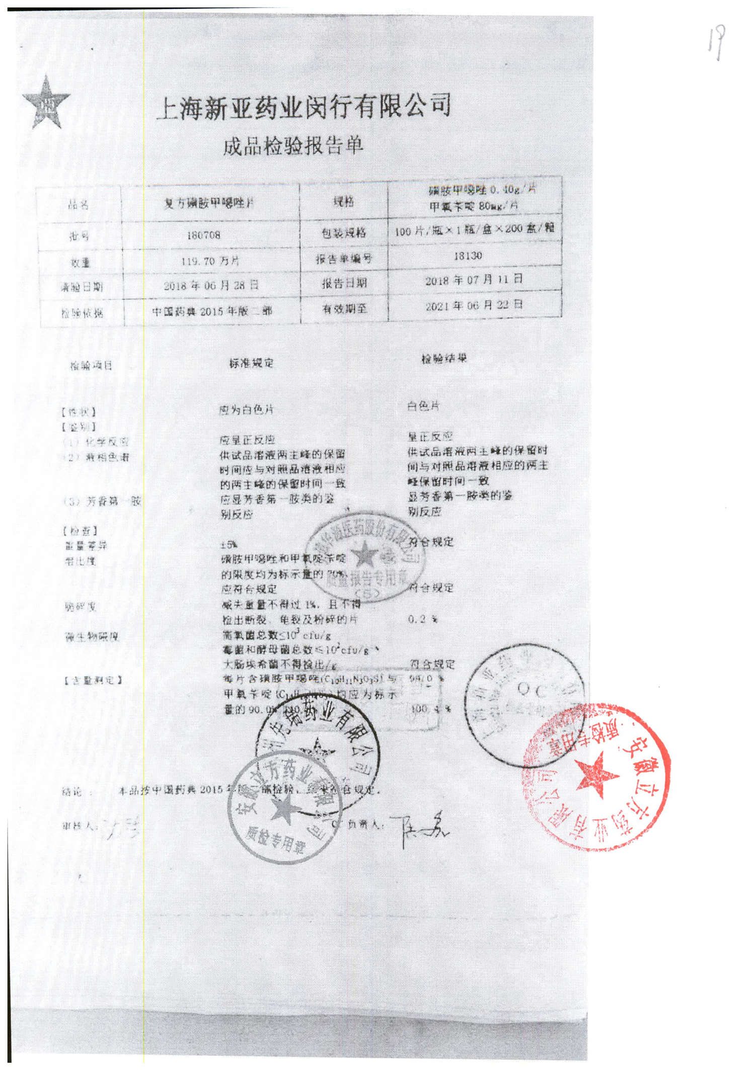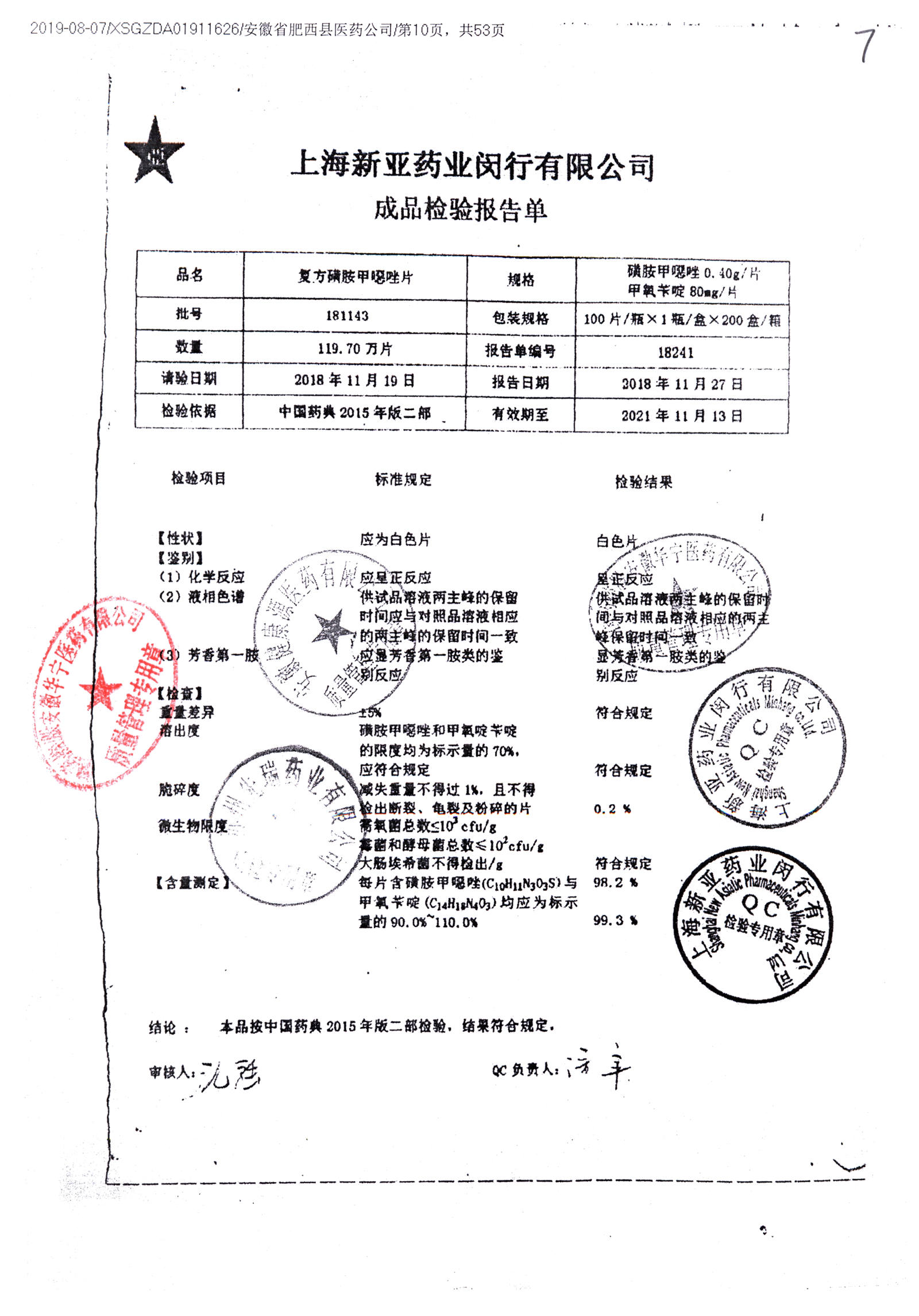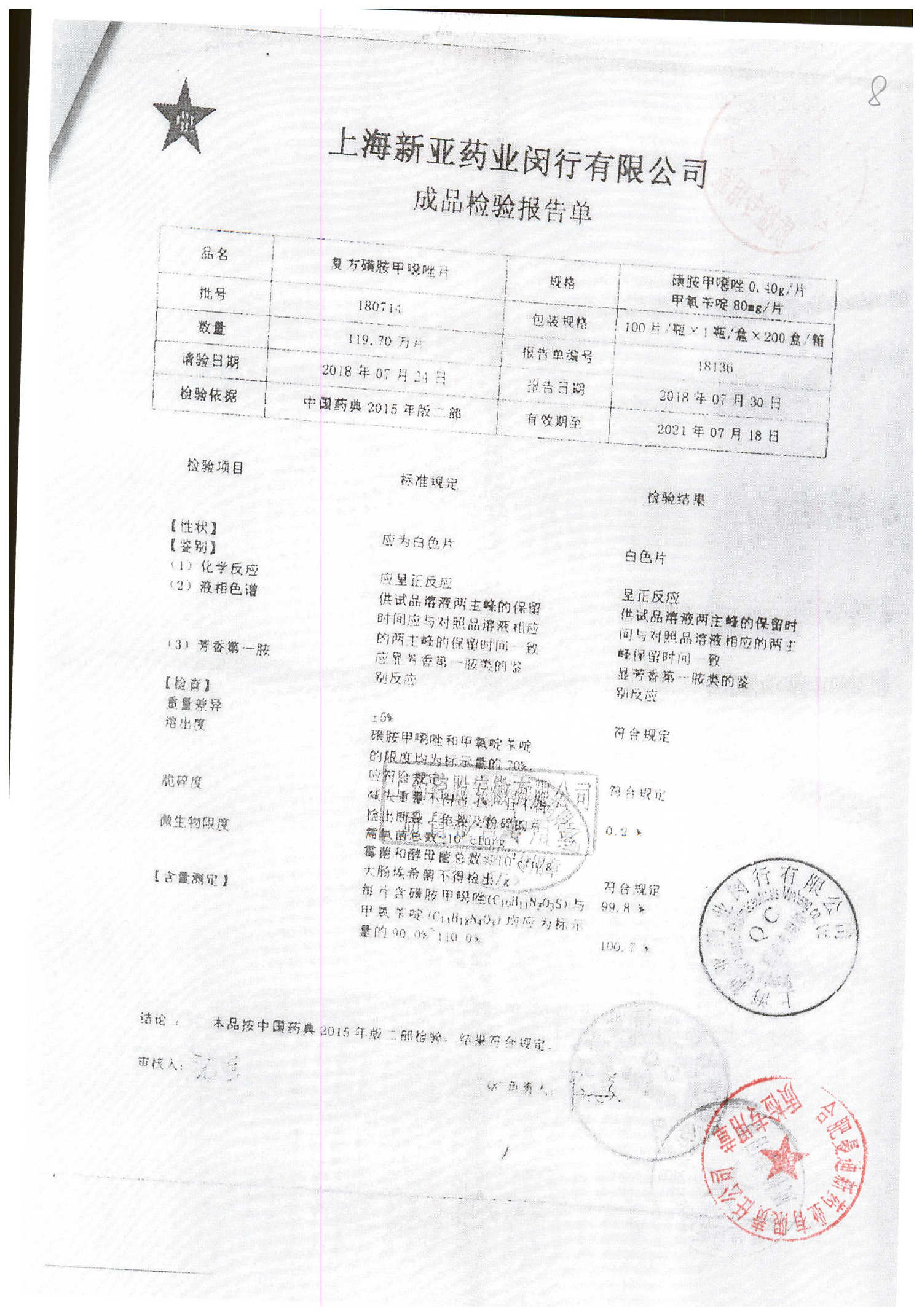 复方磺胺甲噁唑片 | 100片 | 180708 | 查看详情 |