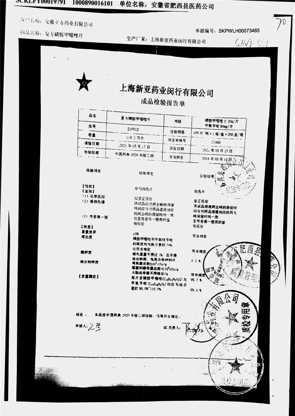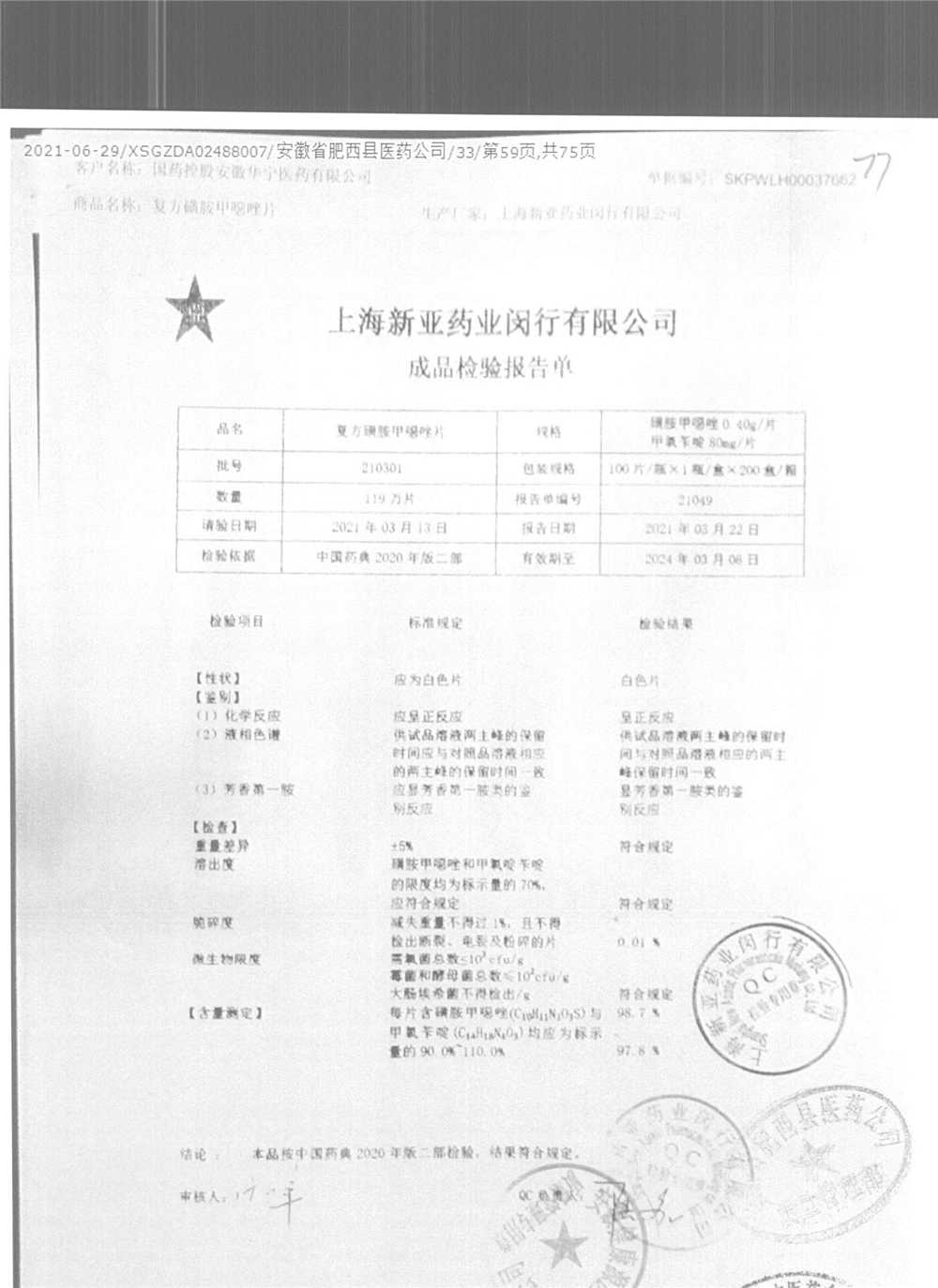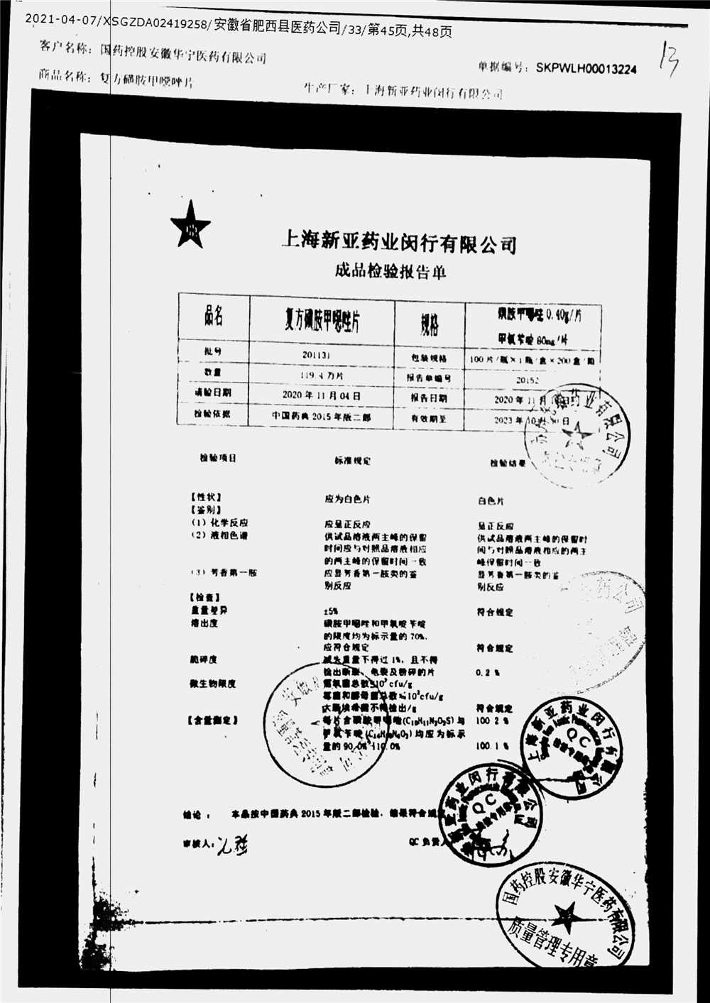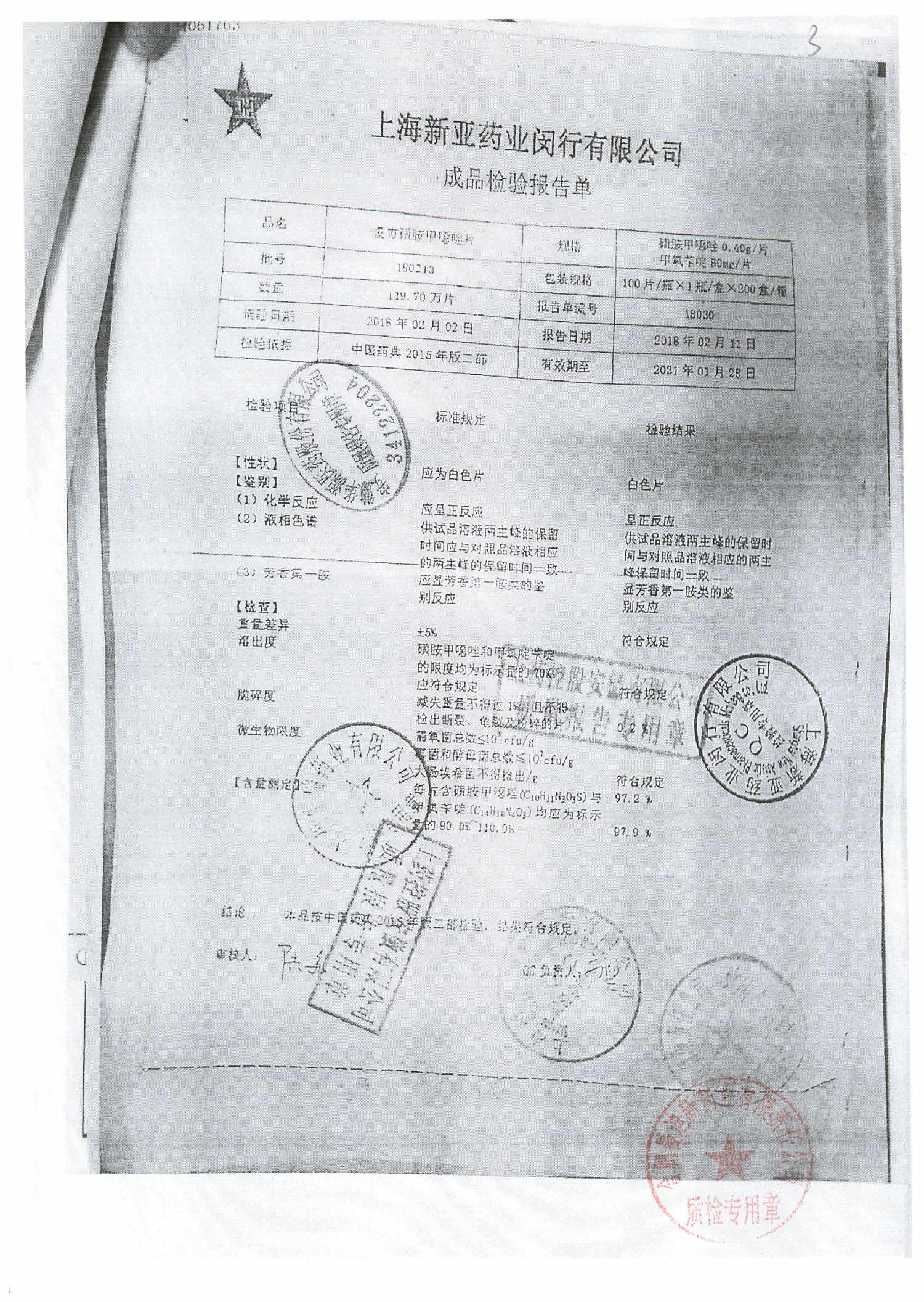 复方磺胺甲噁唑片 | 100片 | 211203 | 查看详情 |
