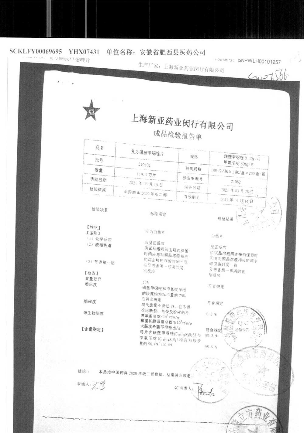 复方磺胺甲噁唑片 | 100片 | 210401 | 查看详情 |
