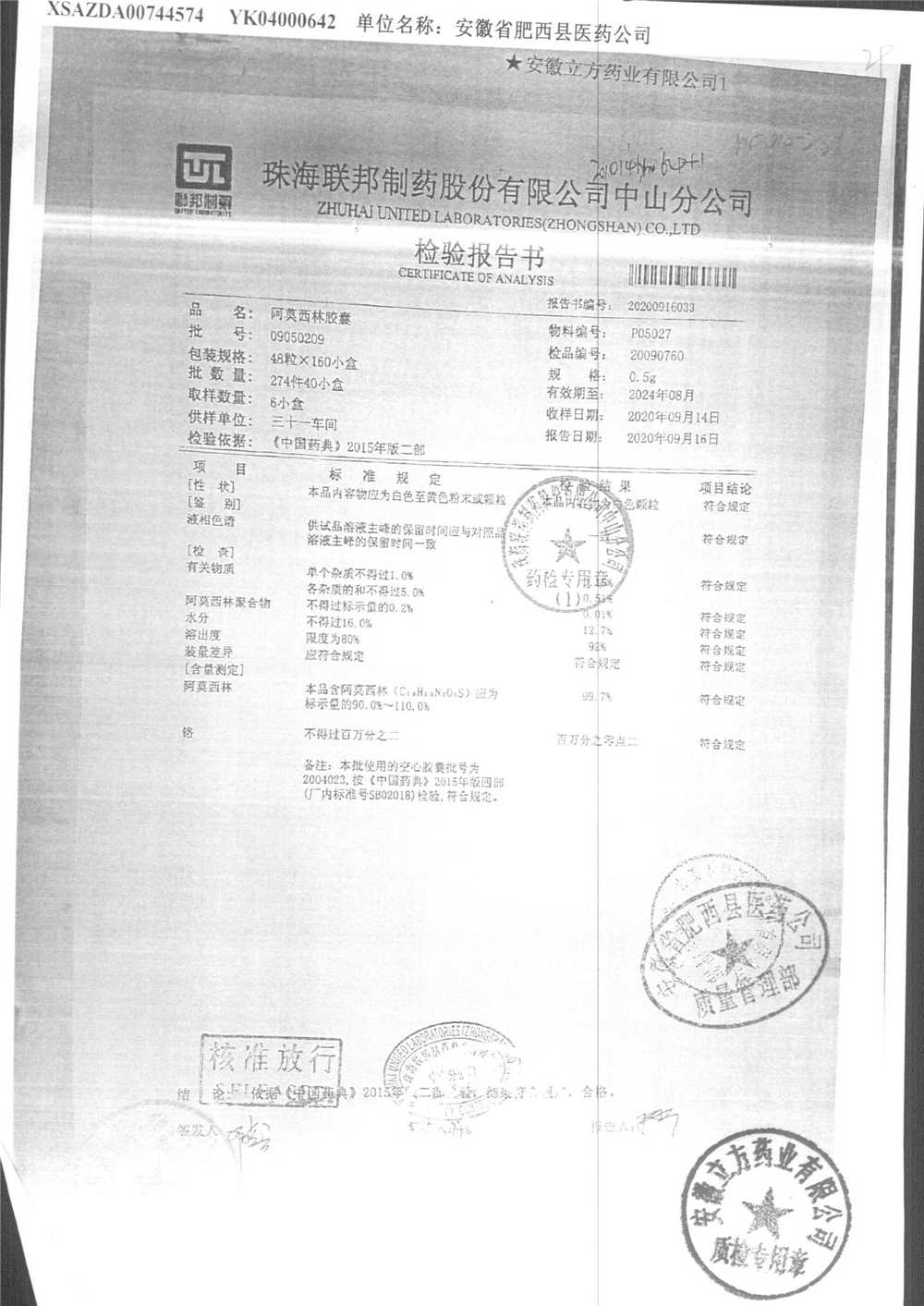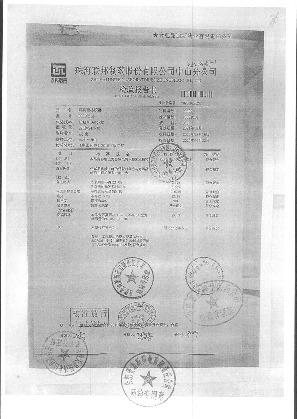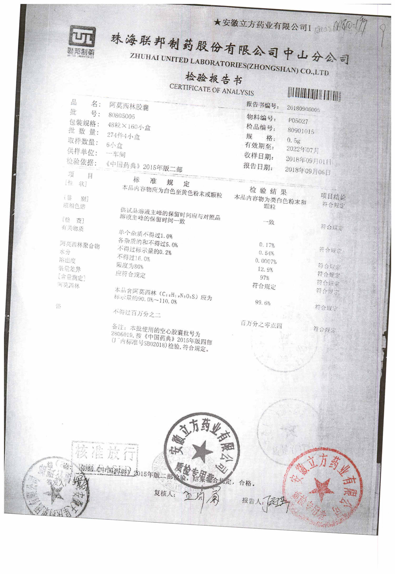 阿莫西林胶囊 | 0.5g*48粒 | 9B050109 | 查看详情 |
