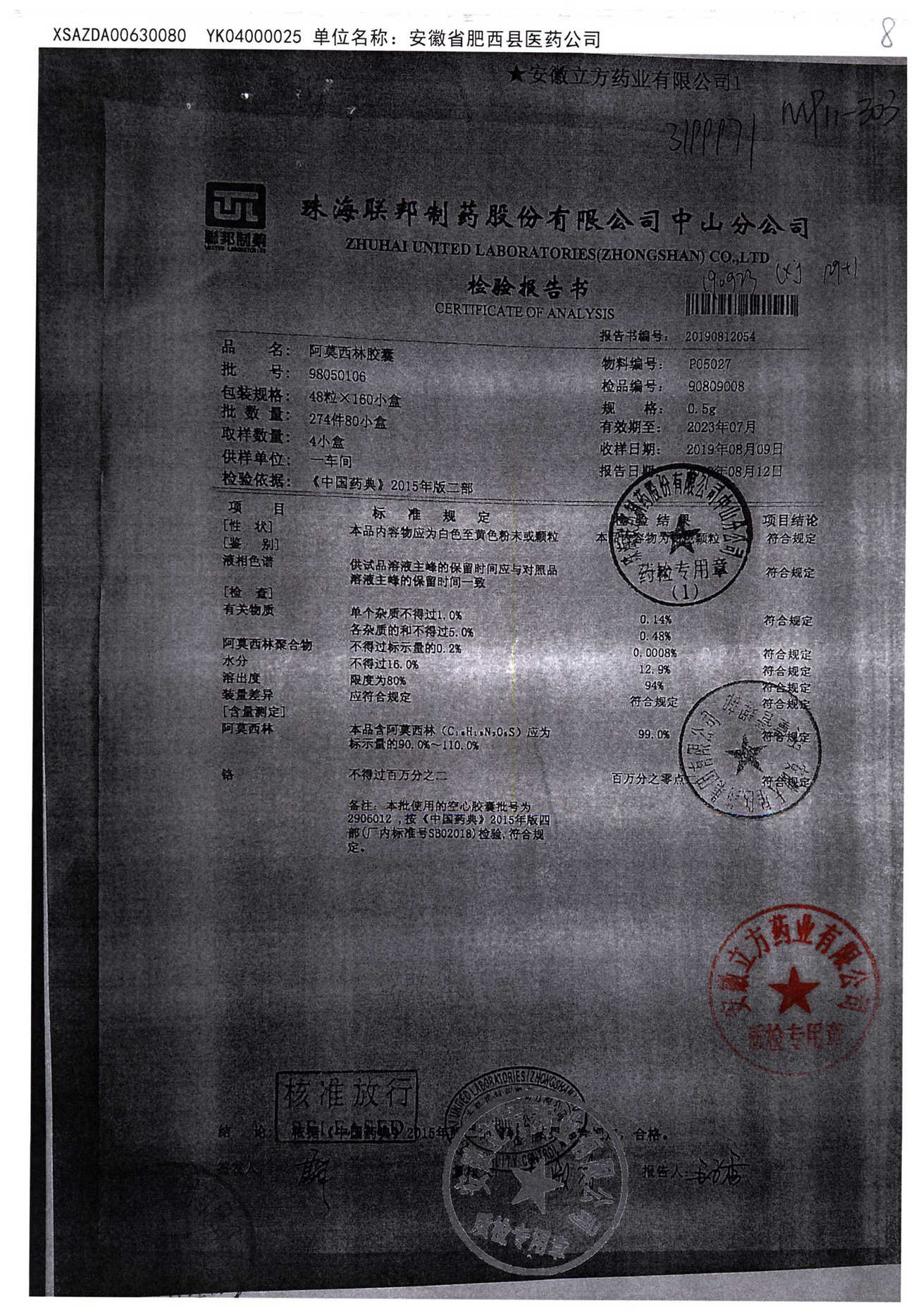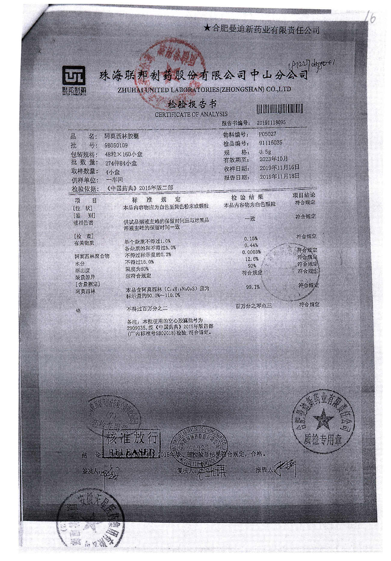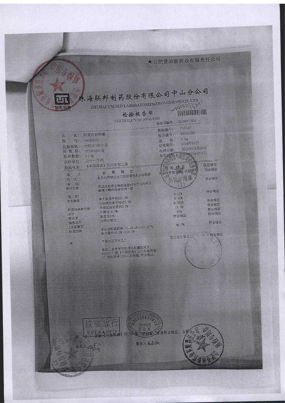 阿莫西林胶囊 | 0.5g*48粒 | 9B050109 | 查看详情 |