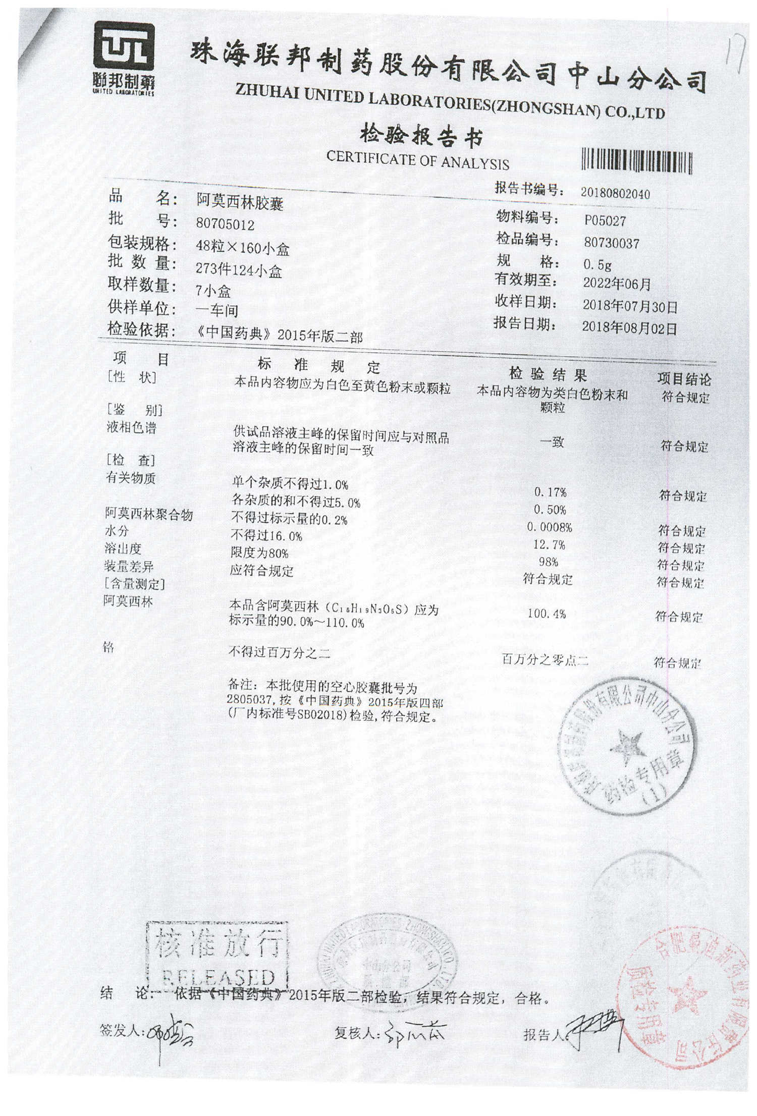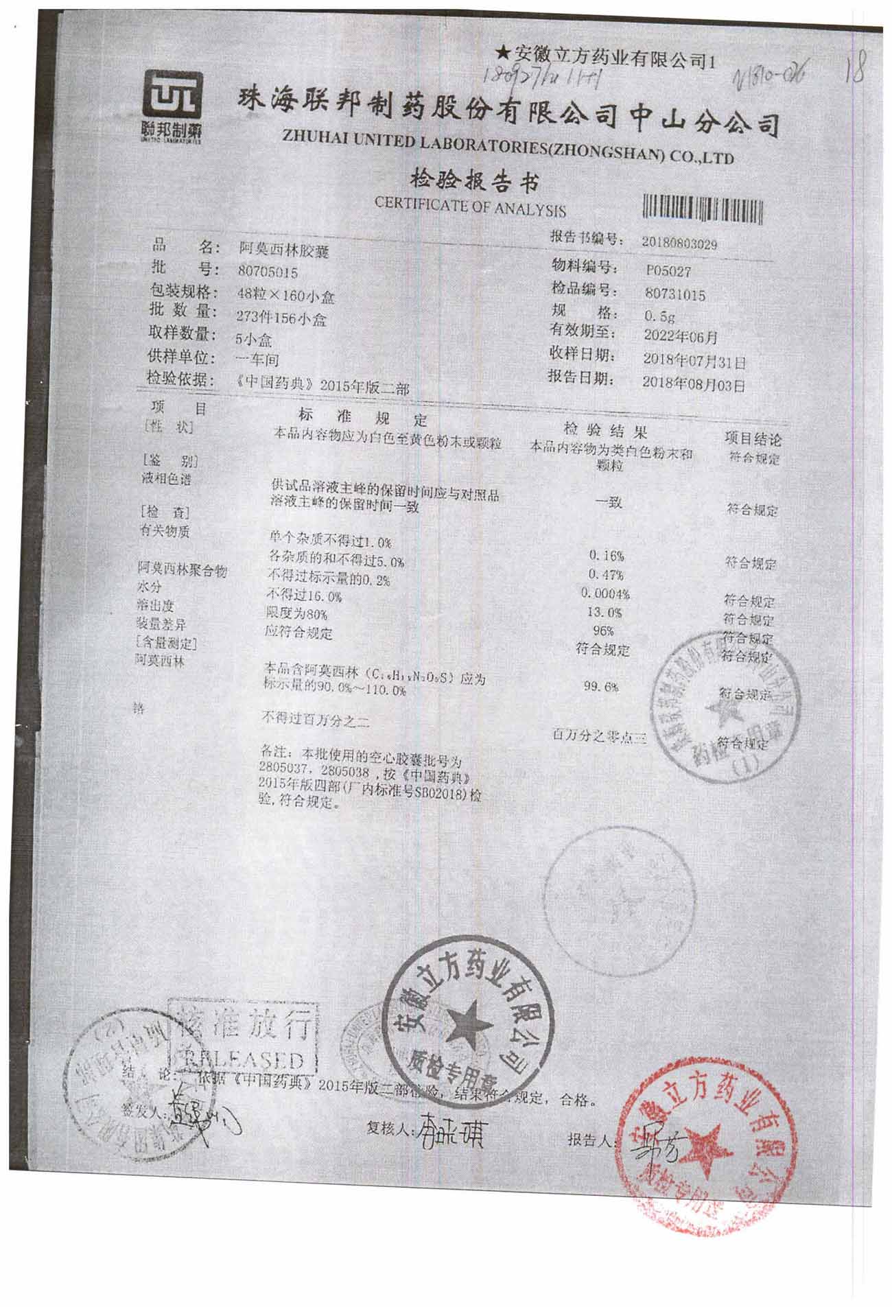 阿莫西林胶囊 | 0.5g*48粒 | 80731015 | 查看详情 |