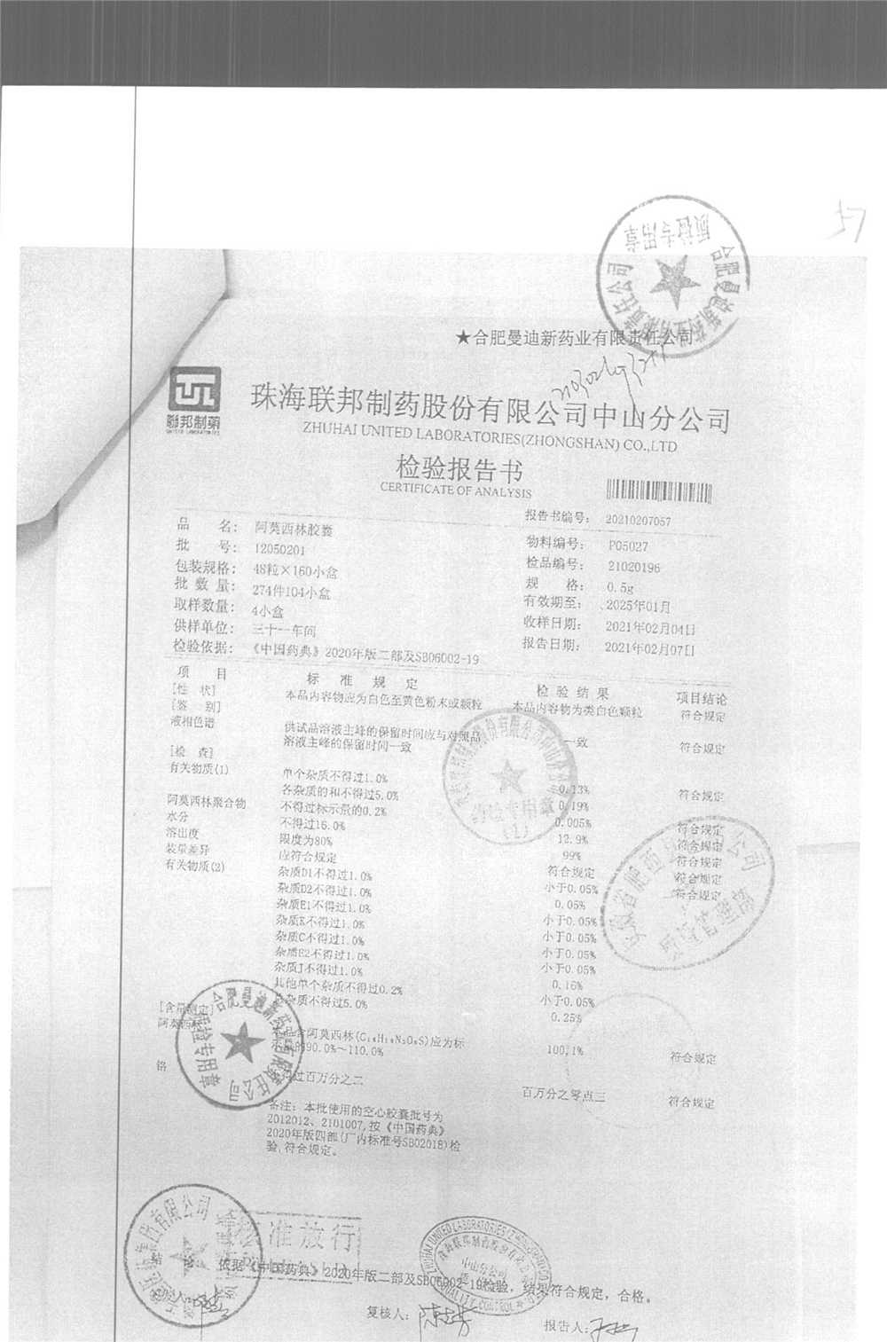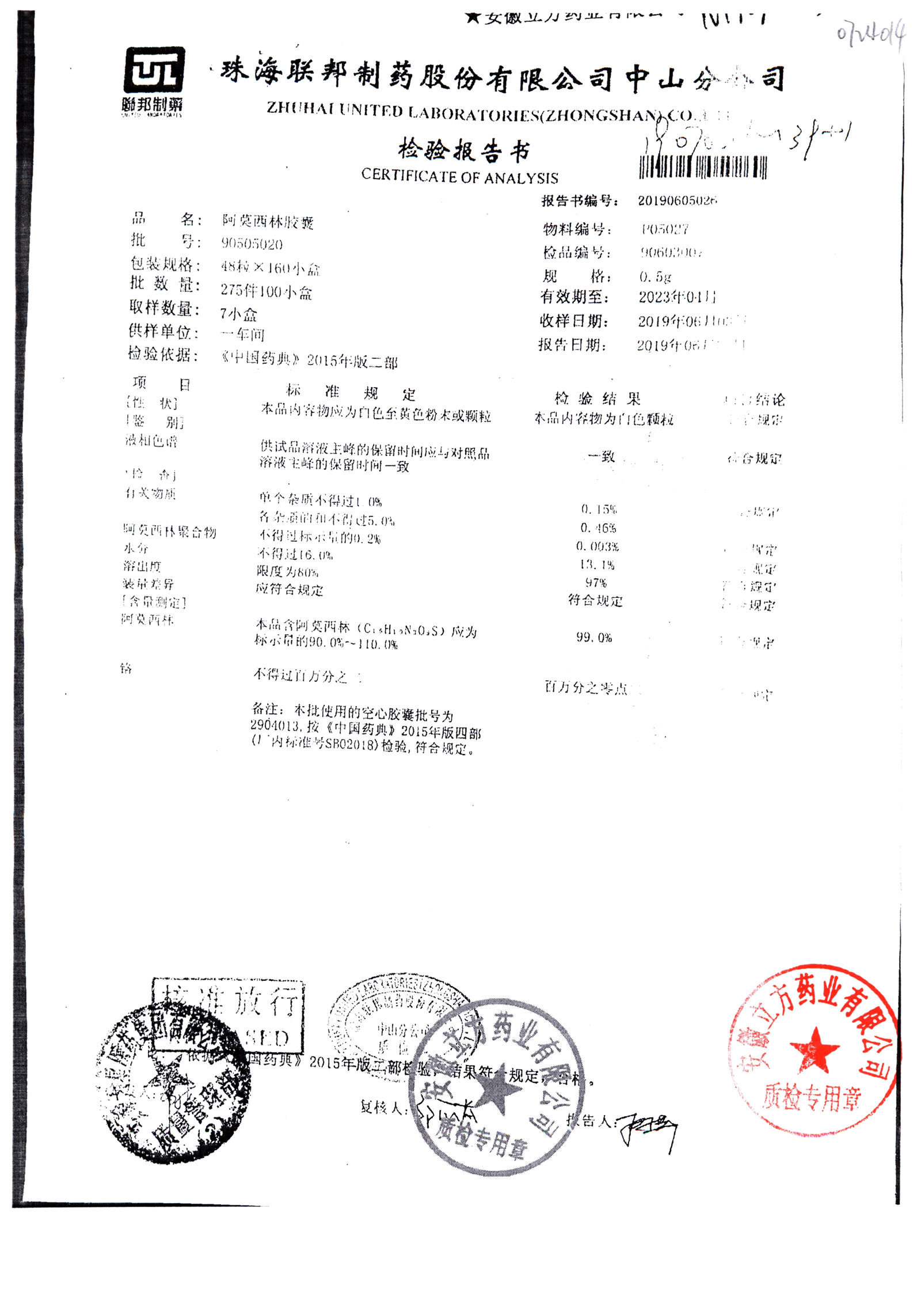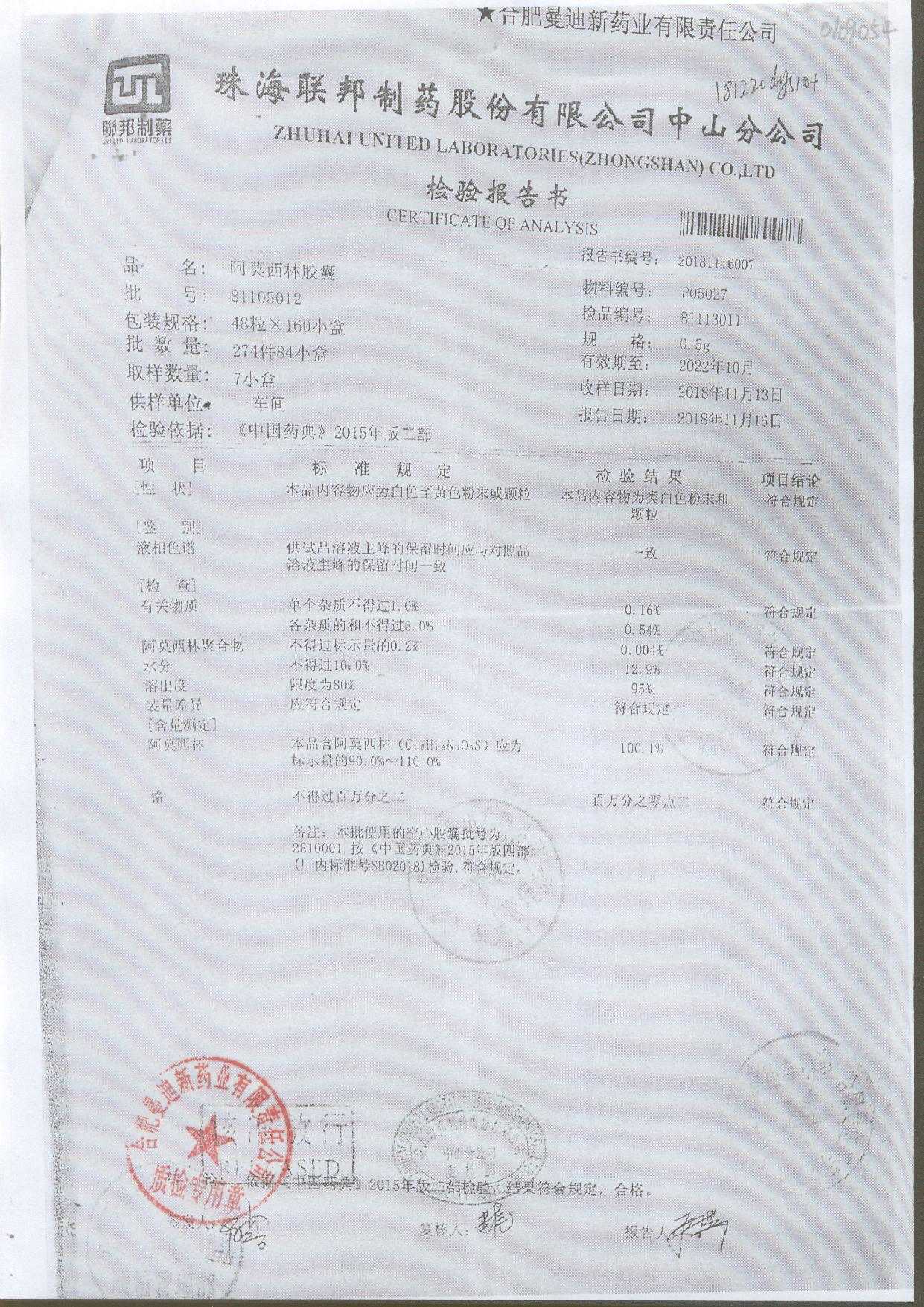阿莫西林胶囊 | 0.5g*48粒 | 14050212 | 查看详情 |