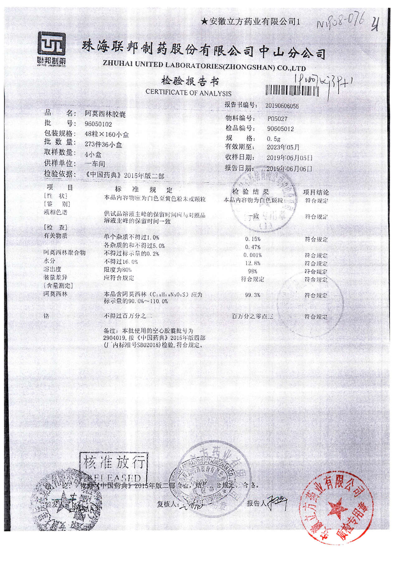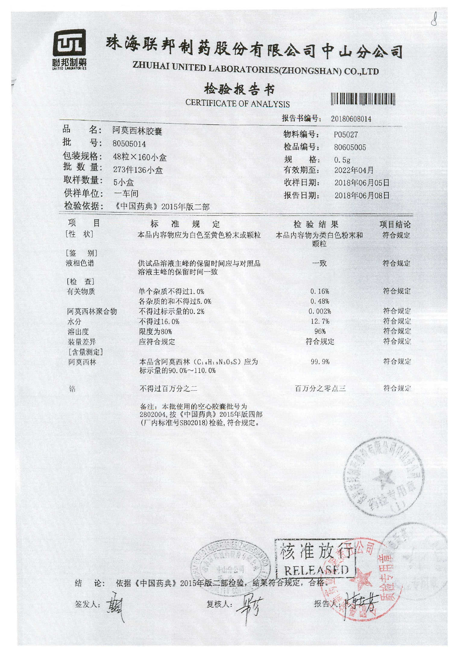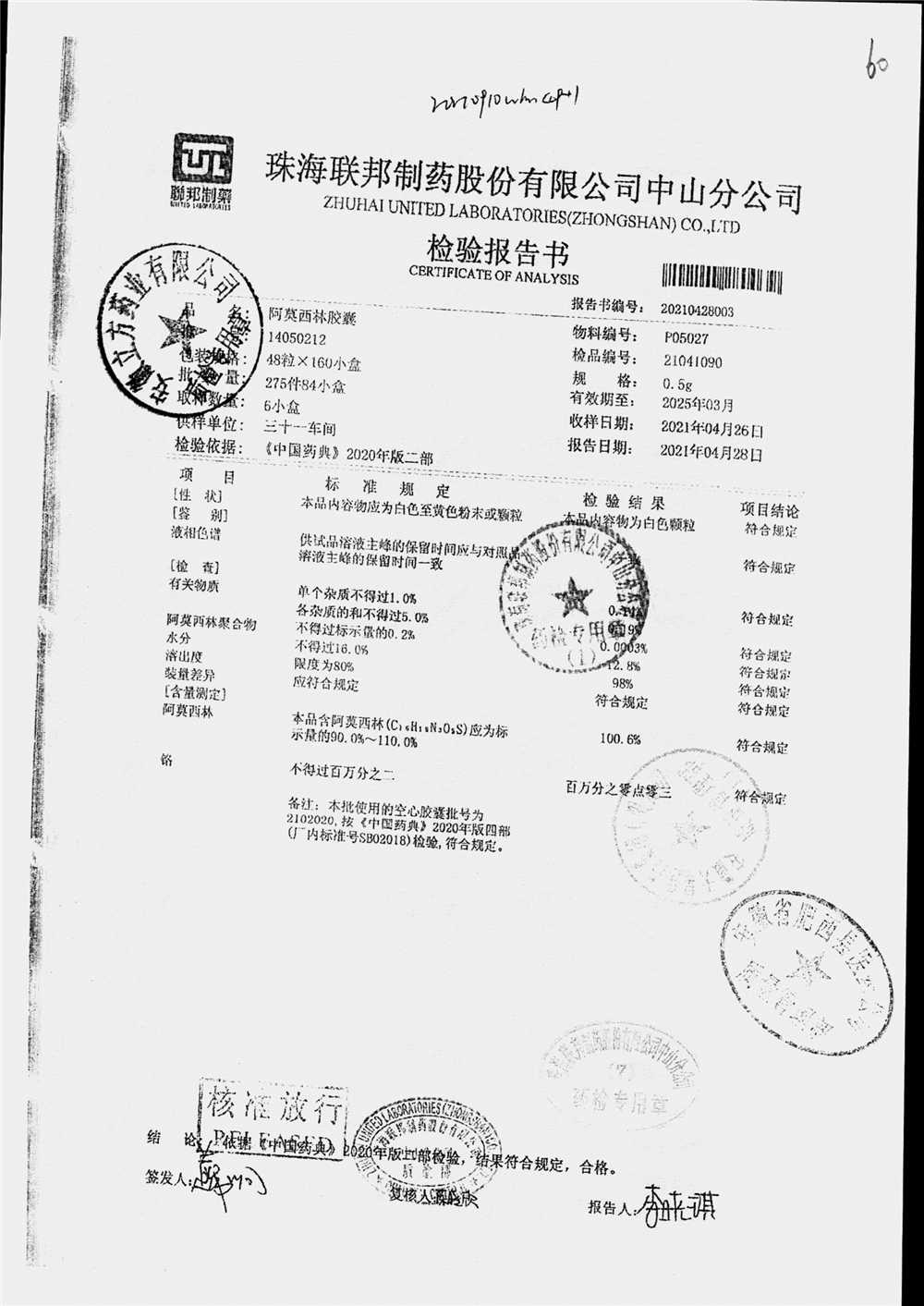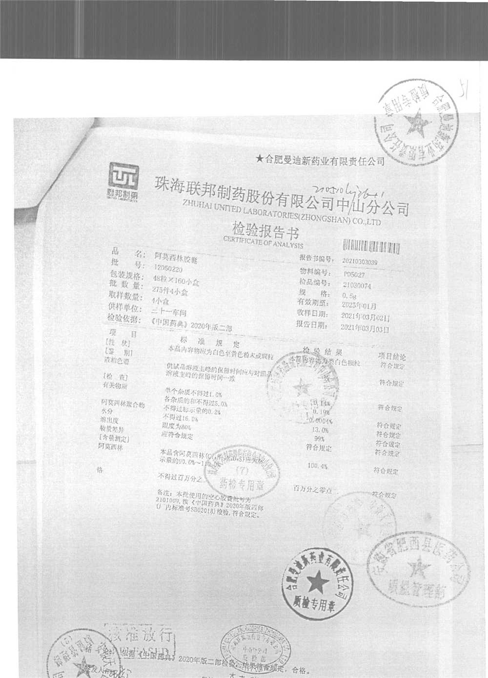 阿莫西林胶囊 | 0.5g*48粒 | 14050212 | 查看详情 |