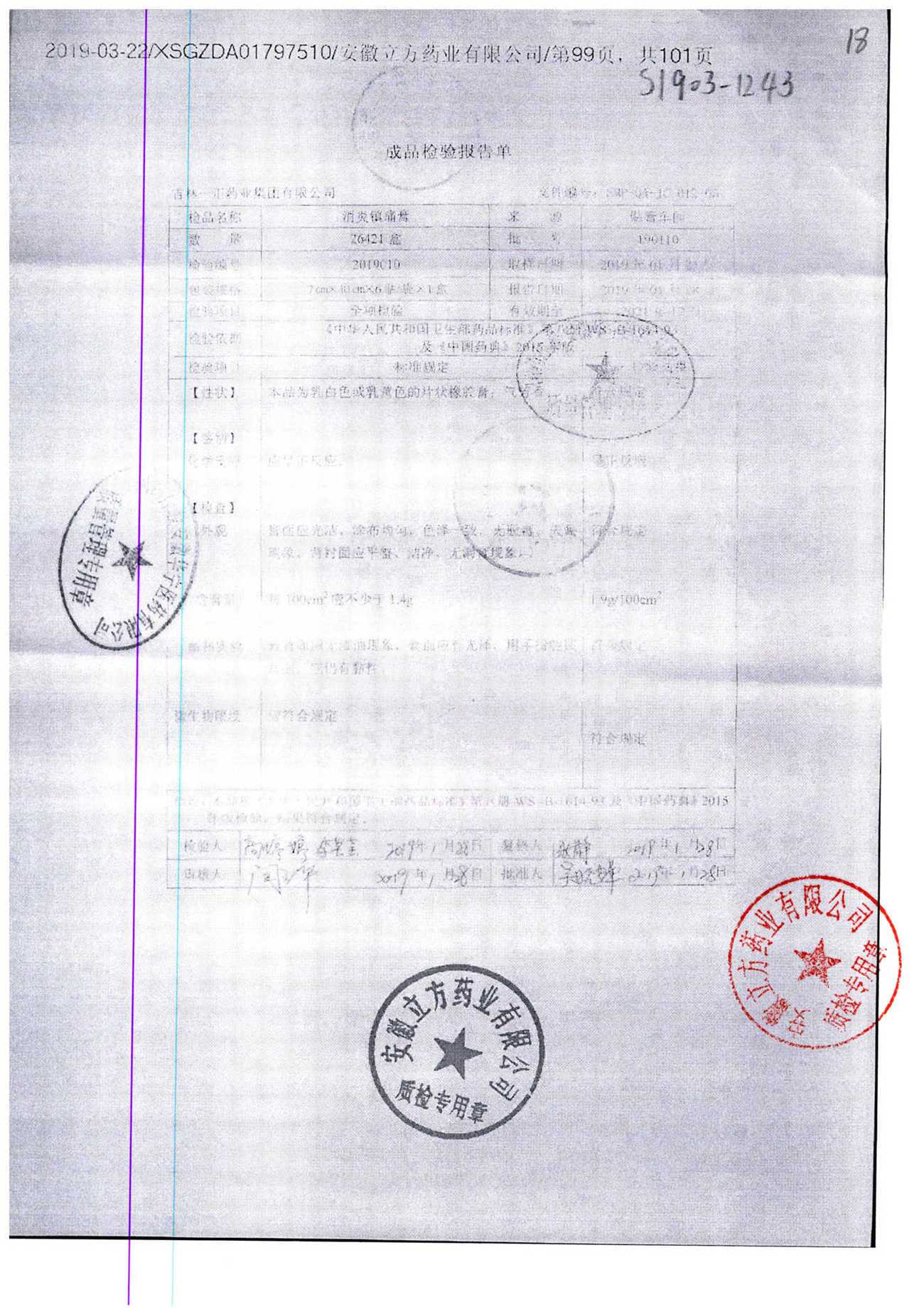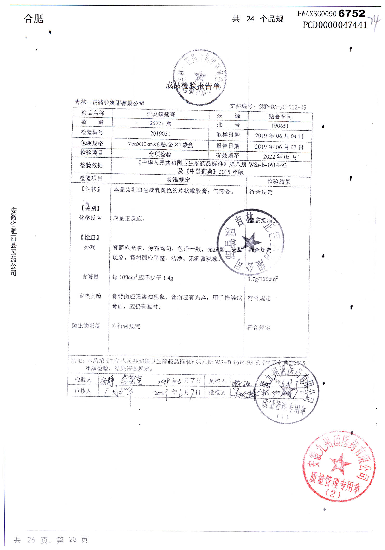 消炎镇痛膏 | 7cm*10cm*6贴 | 190110 | 查看详情 |