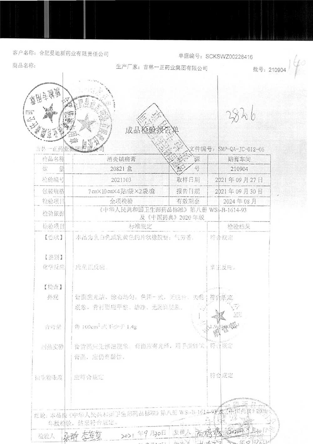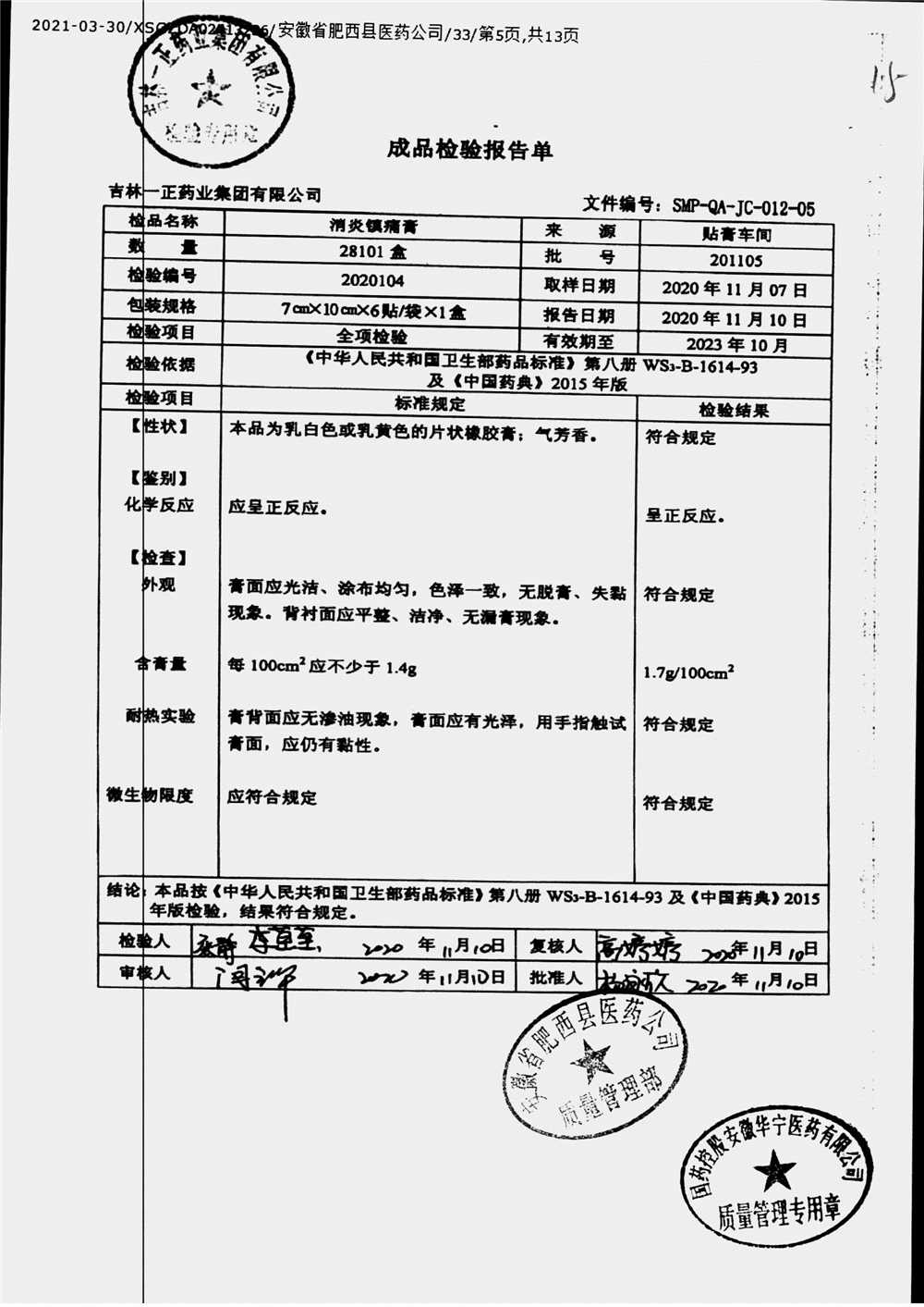 消炎镇痛膏 | 7cm*10cm*6贴 | 201105 | 查看详情 |