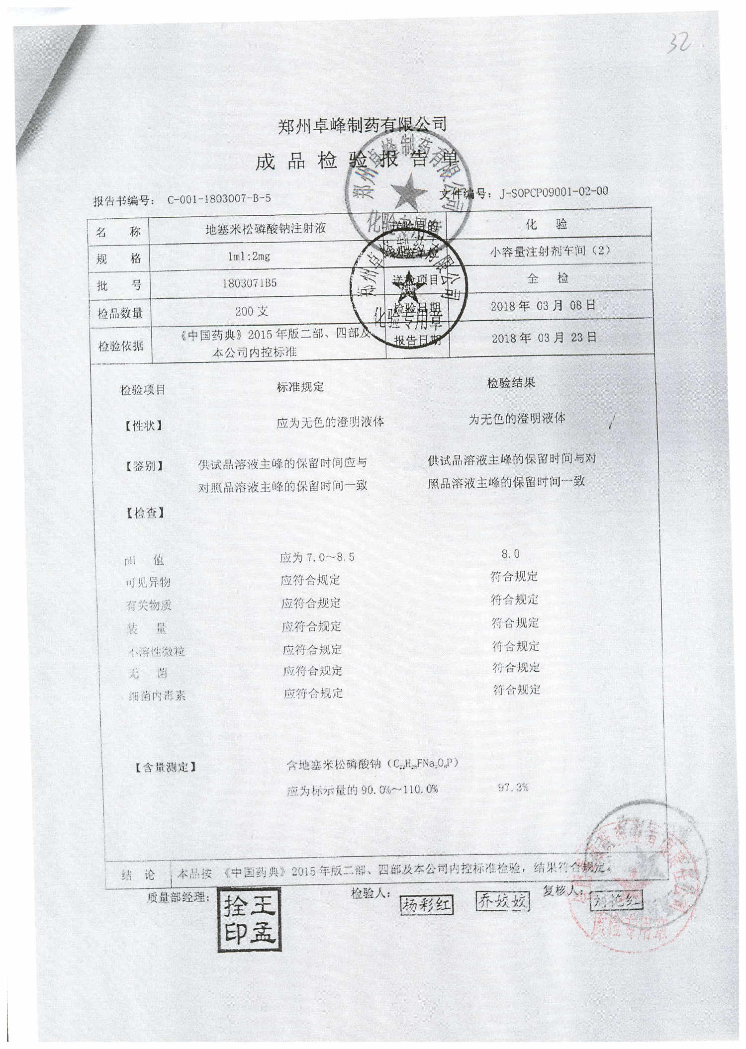 地塞米松磷酸钠注射液 | 1ml:2mg | 1803071B5 | 查看详情 |