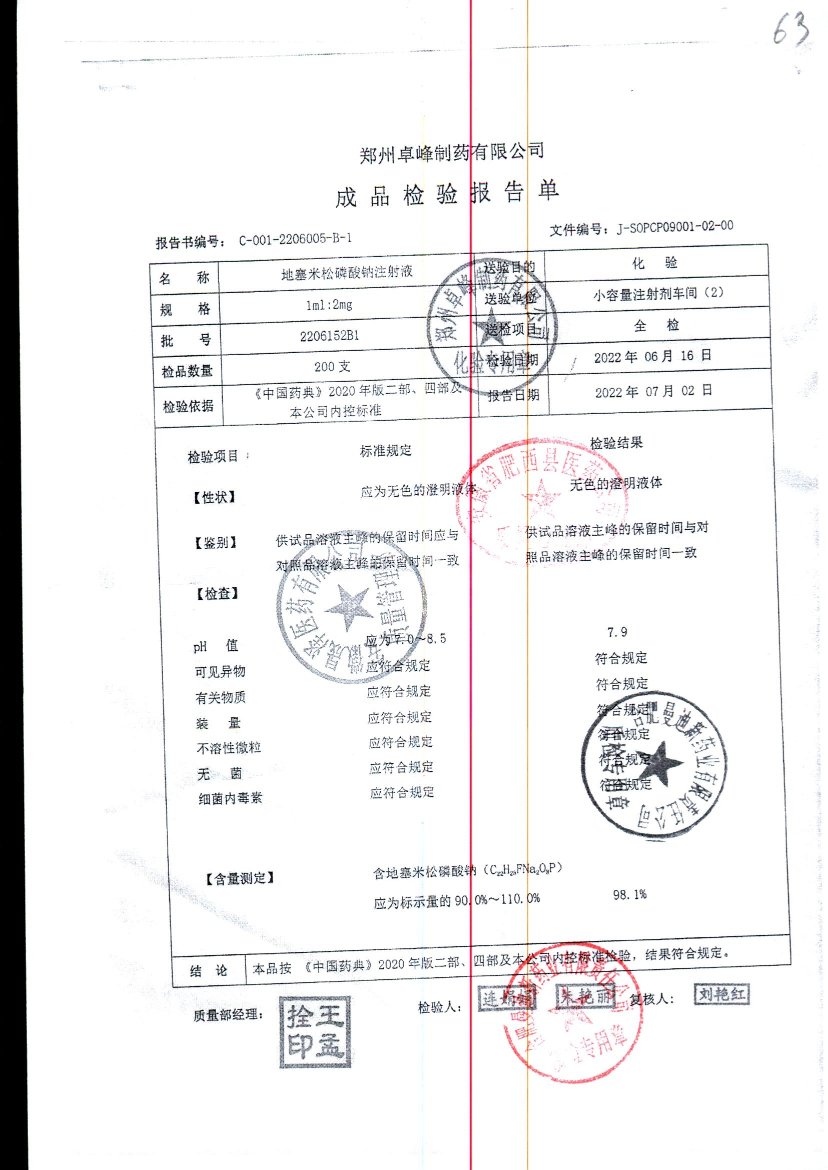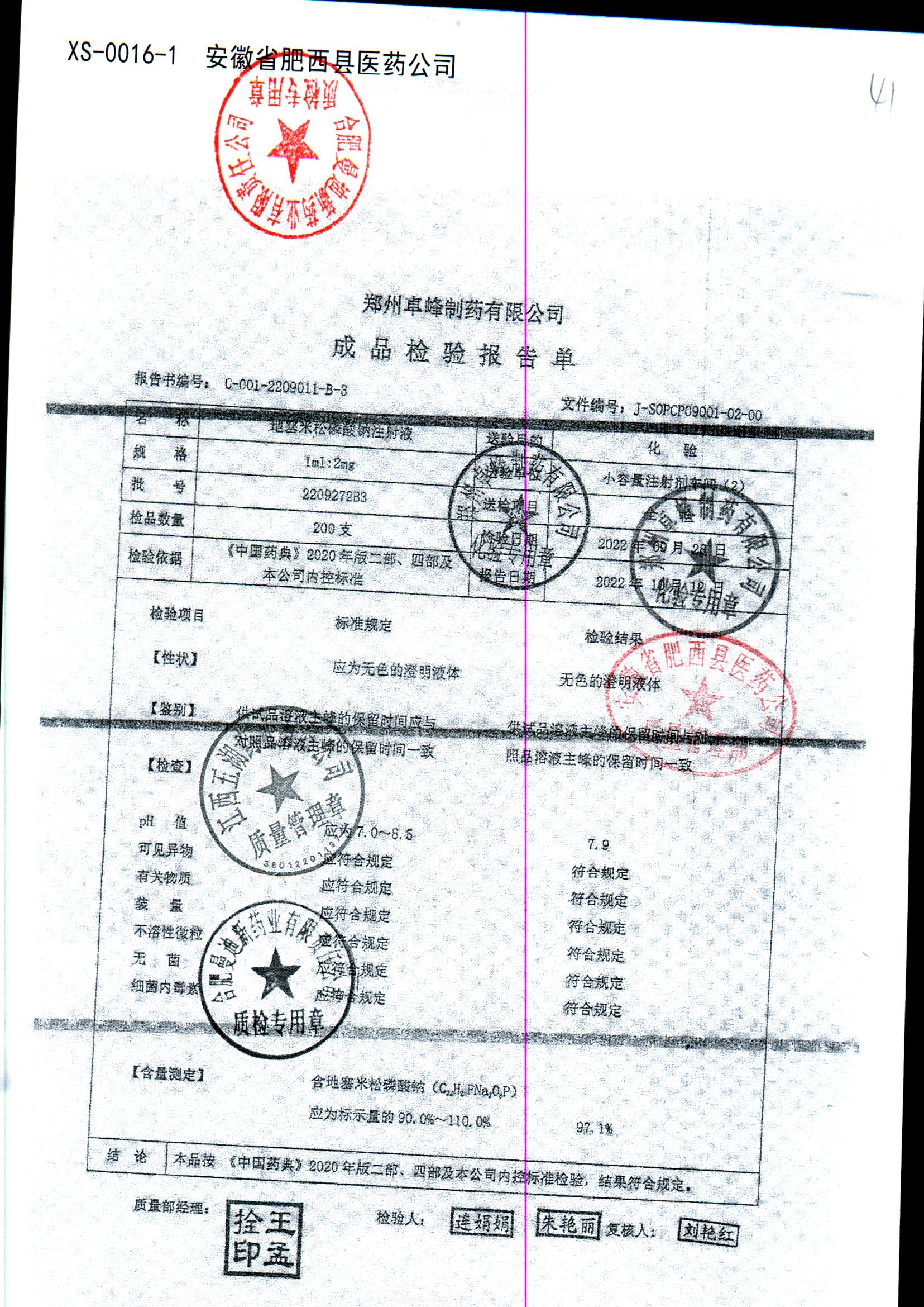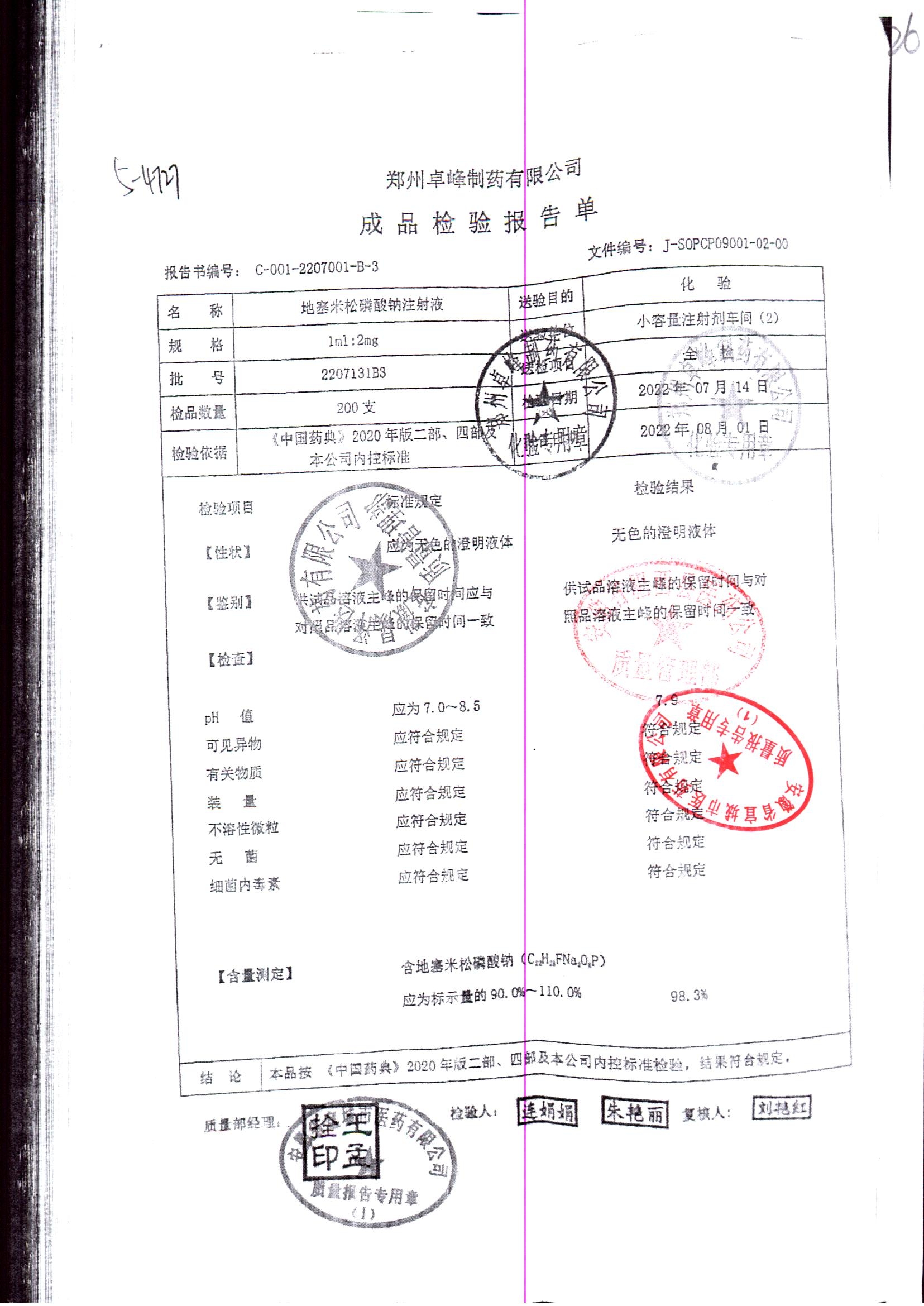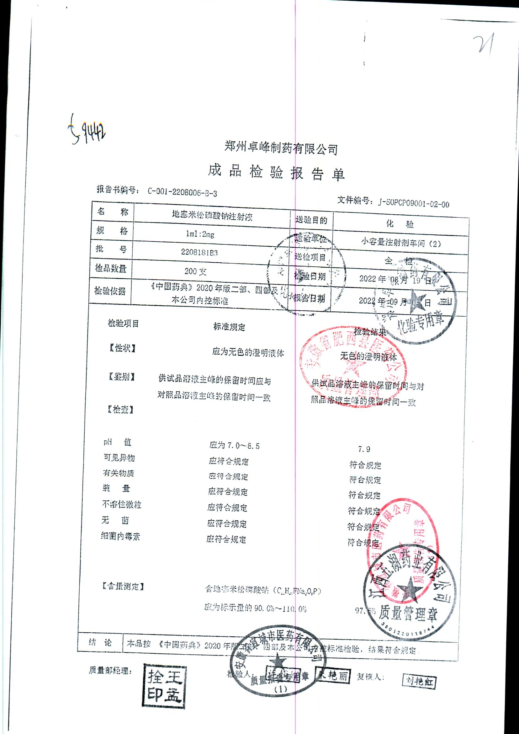地塞米松磷酸钠注射液 | 1ml:2mg | 2310081B1 | 查看详情 |