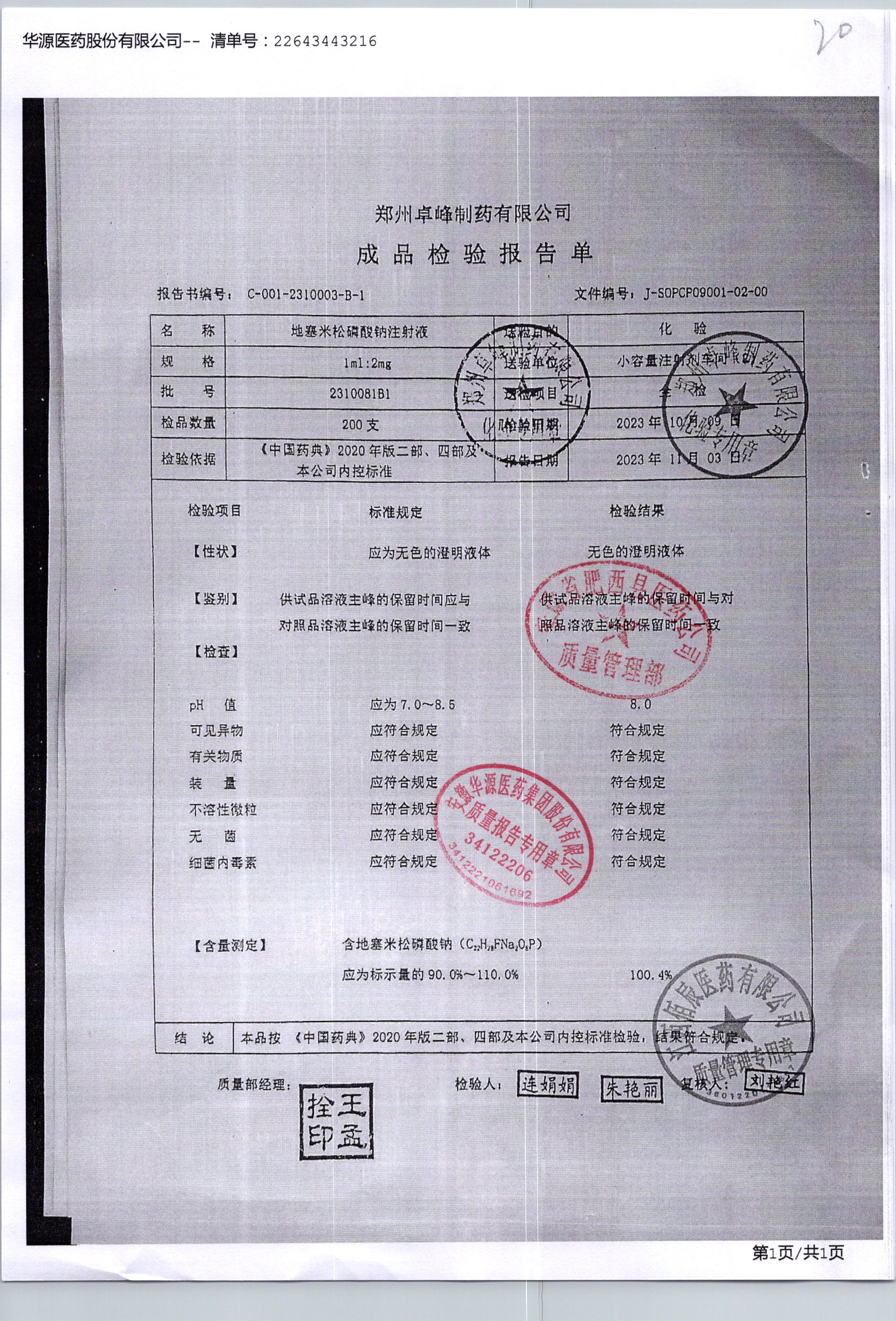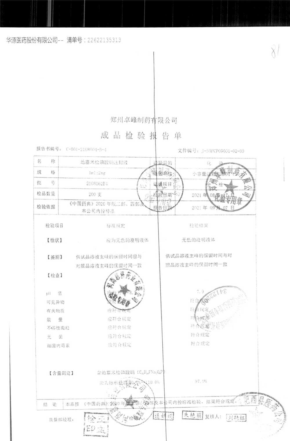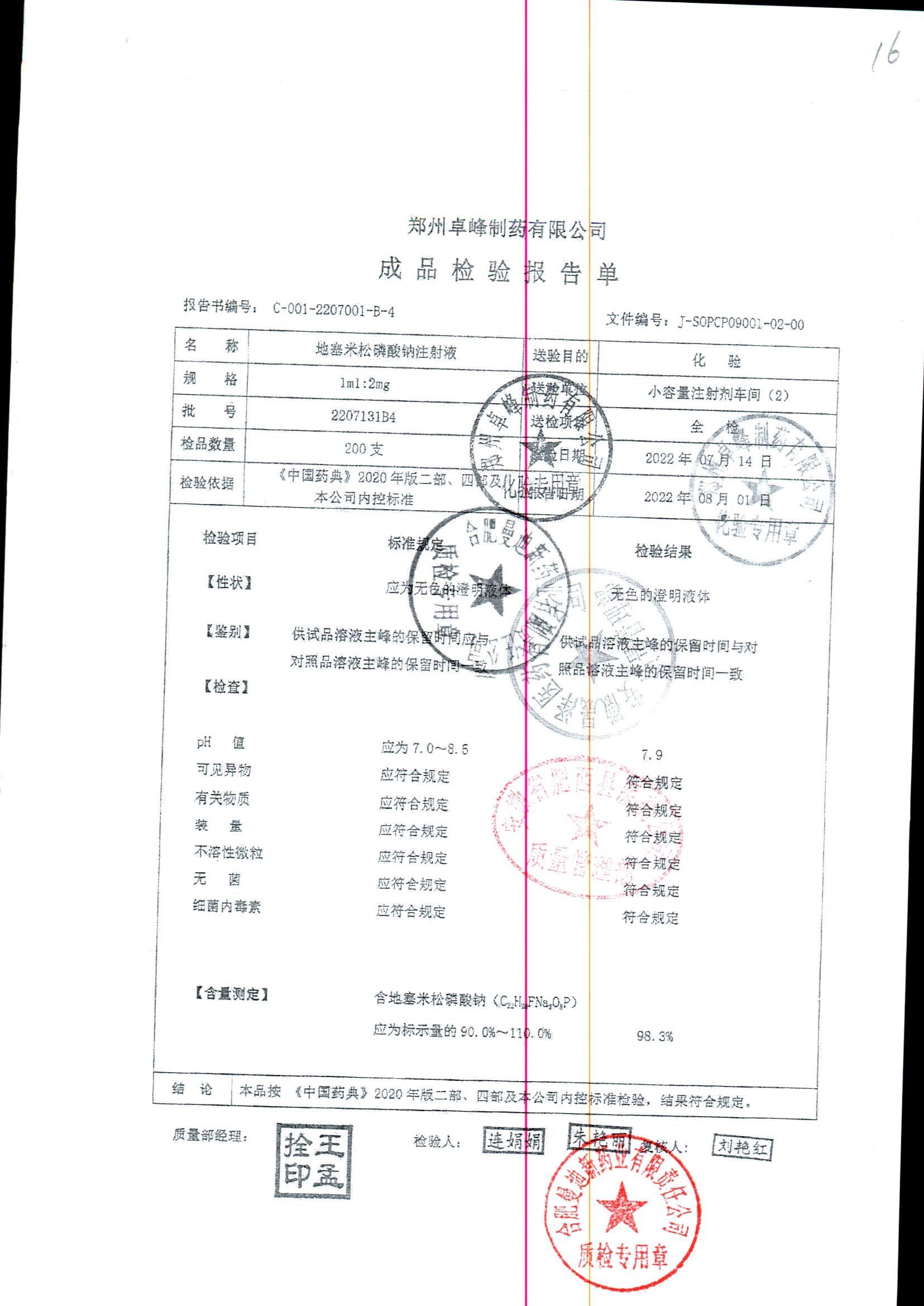 地塞米松磷酸钠注射液 | 1ml:2mg | 2310081B1 | 查看详情 |