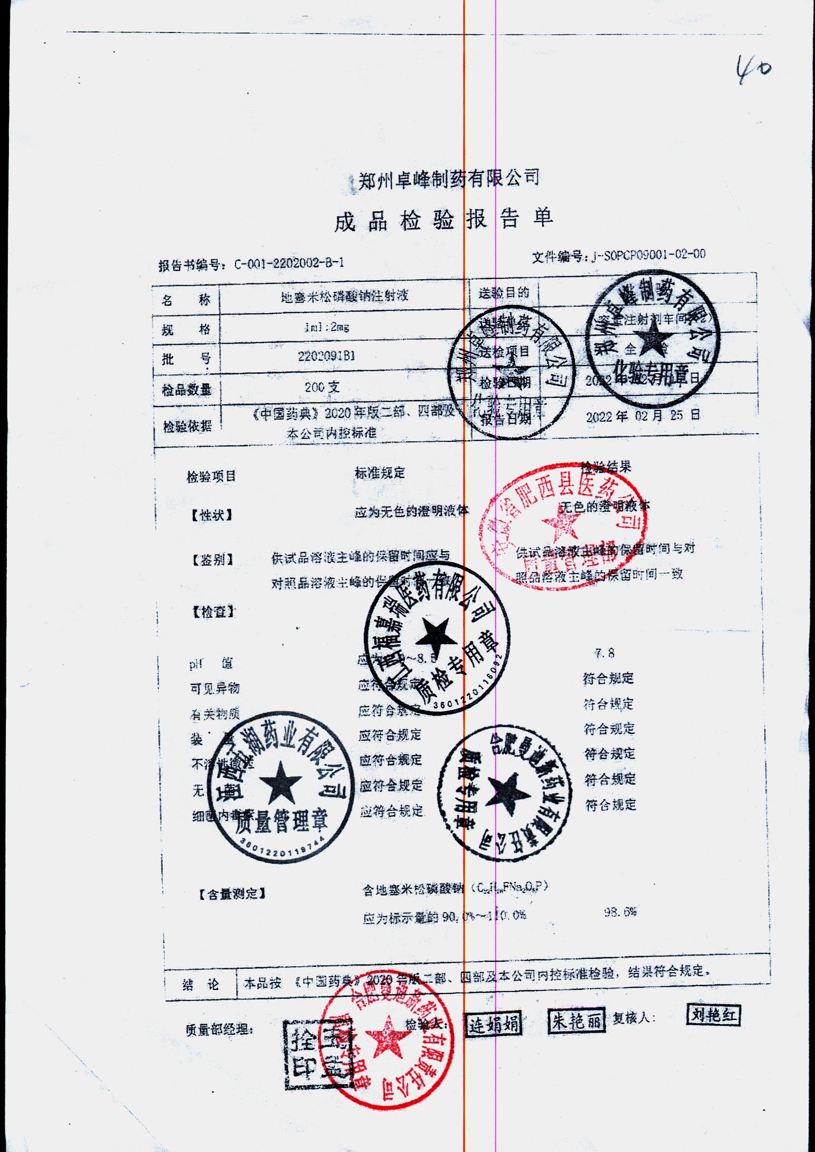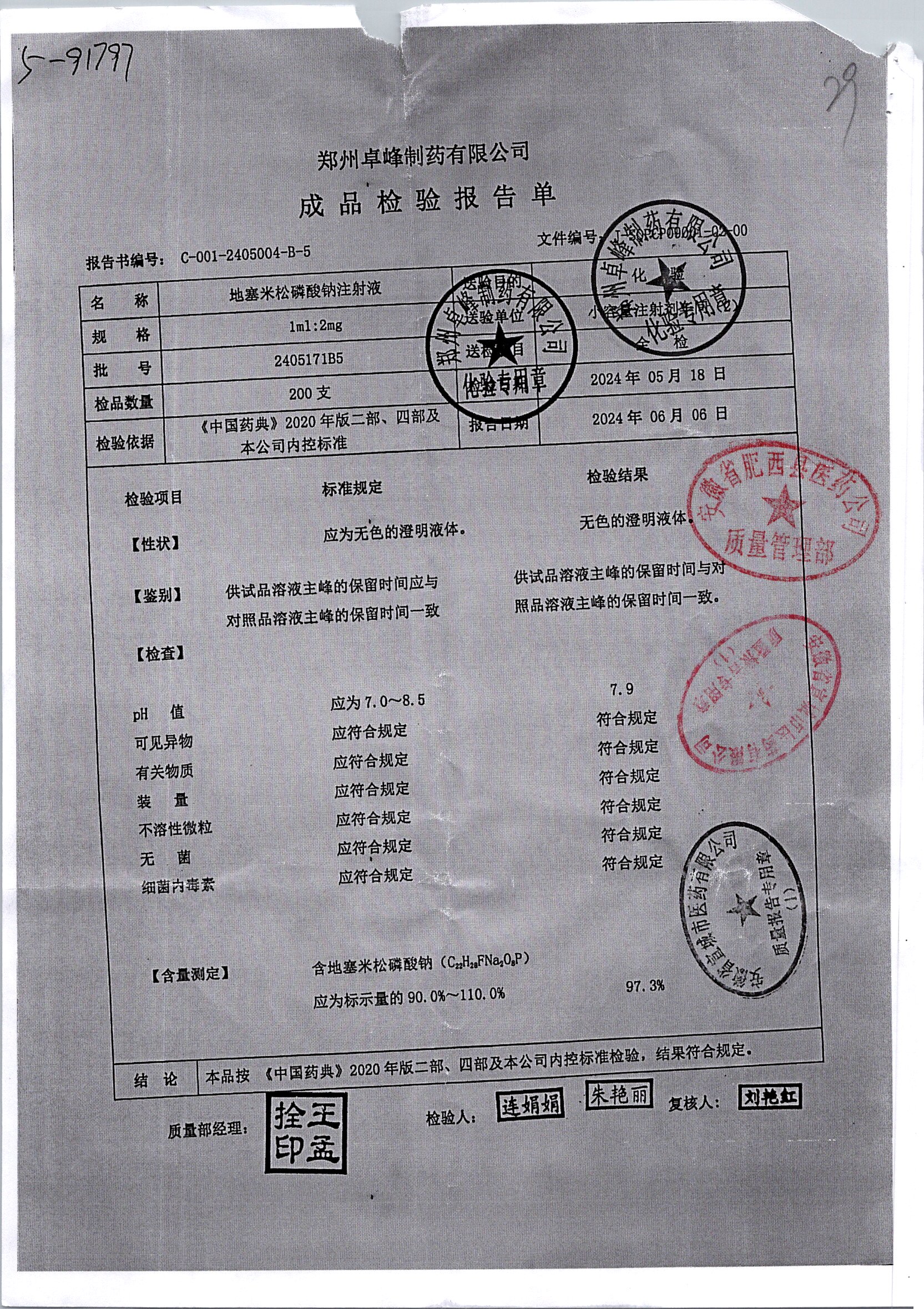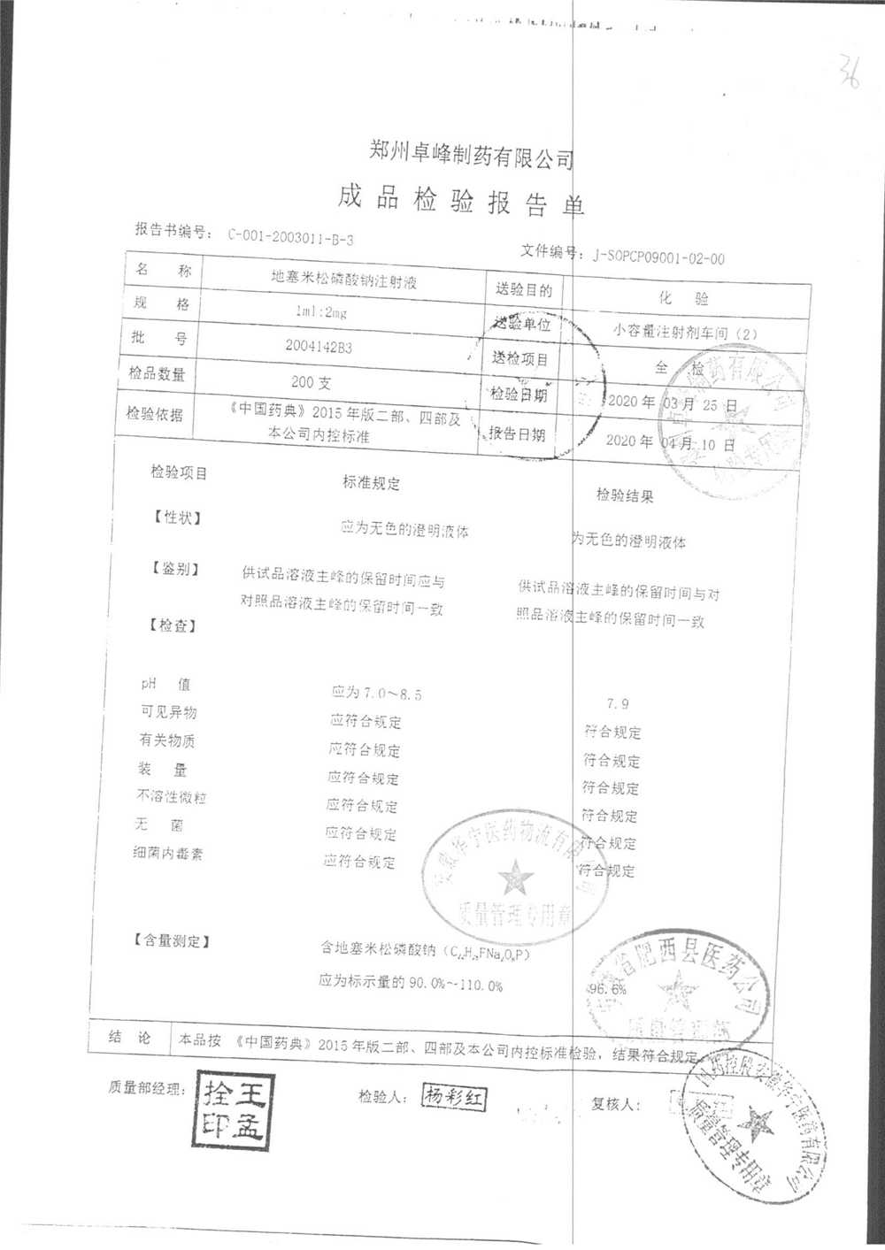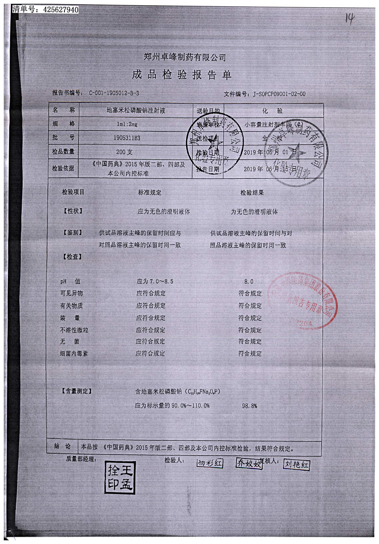 地塞米松磷酸钠注射液 | 1ml:2mg | 2310081B1 | 查看详情 |