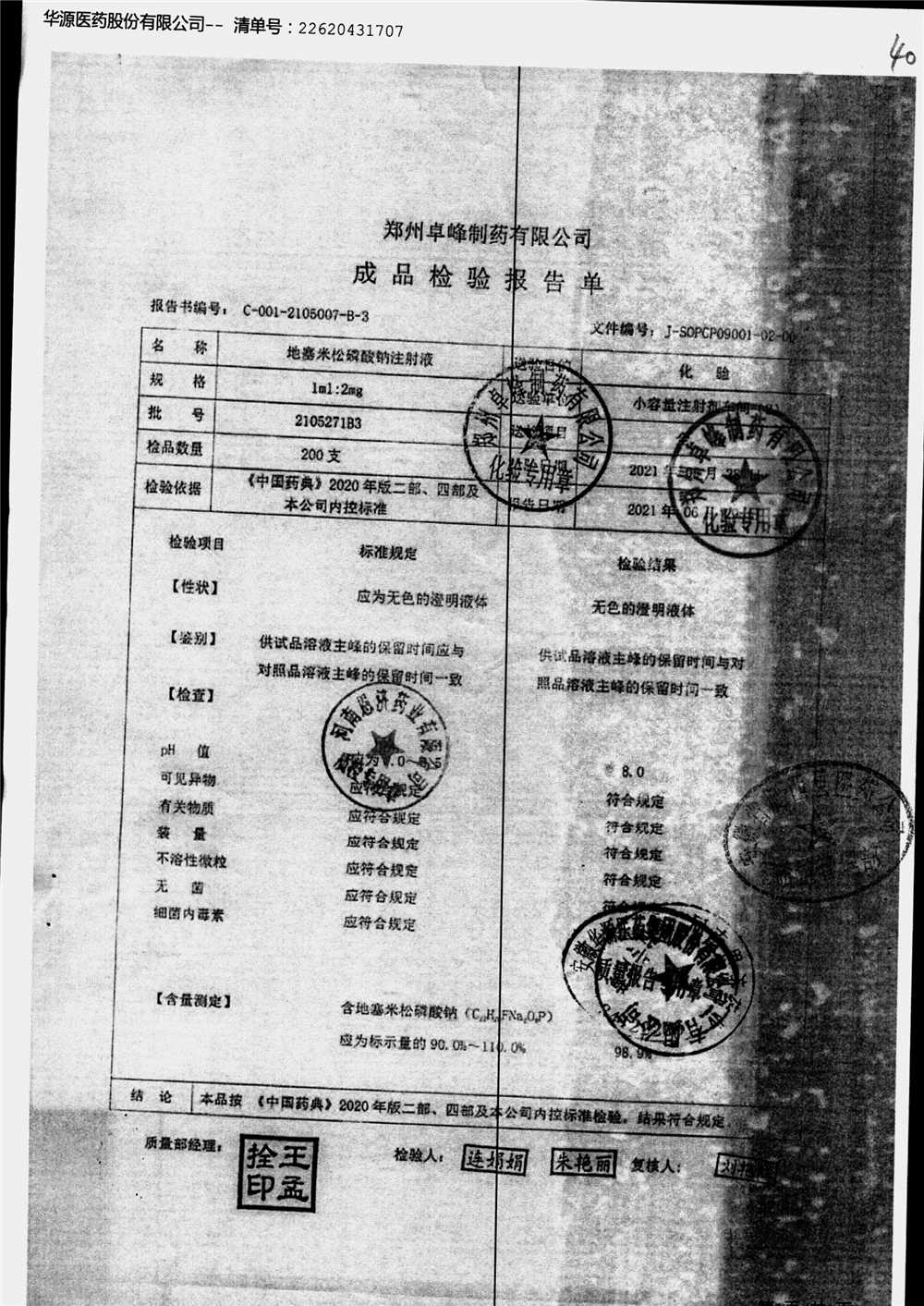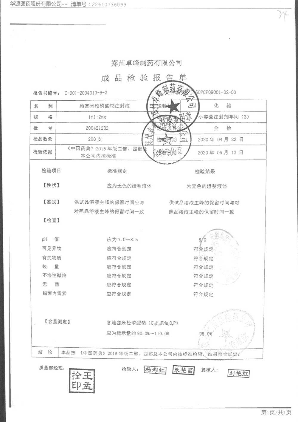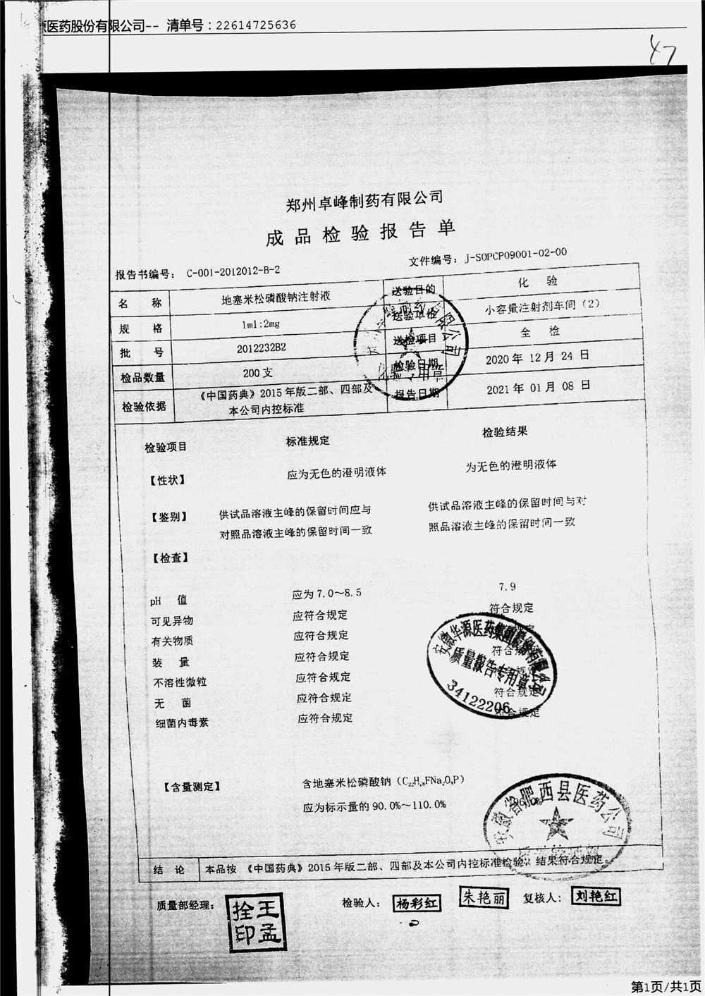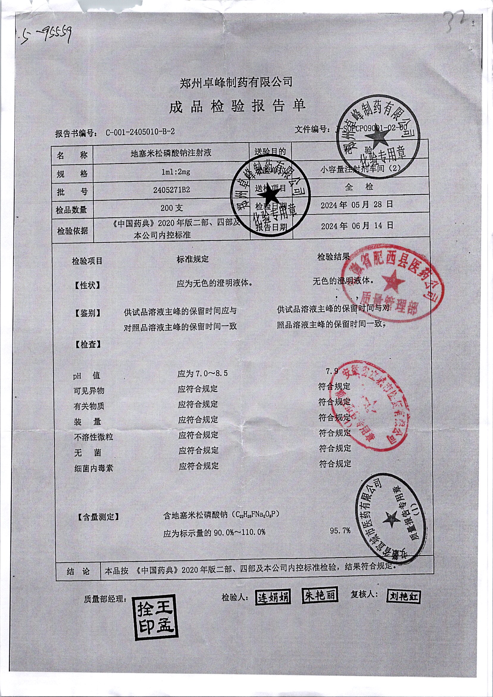地塞米松磷酸钠注射液 | 1ml:2mg | 2405171B5 | 查看详情 |
