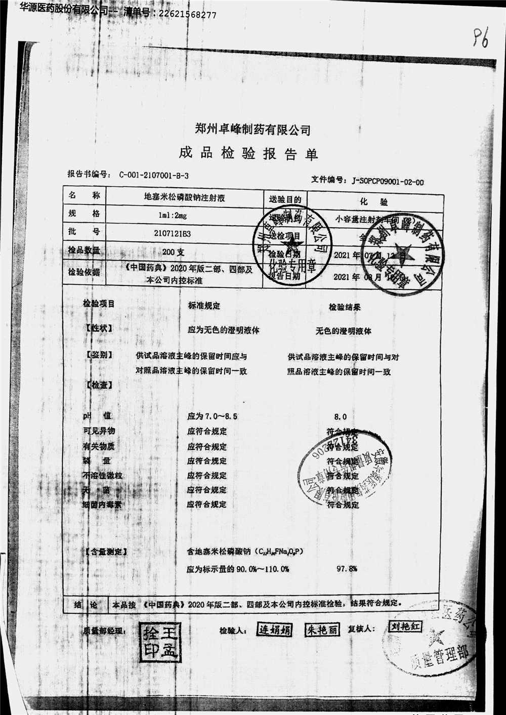 地塞米松磷酸钠注射液 | 1ml:2mg | 2101221B2 | 查看详情 |
