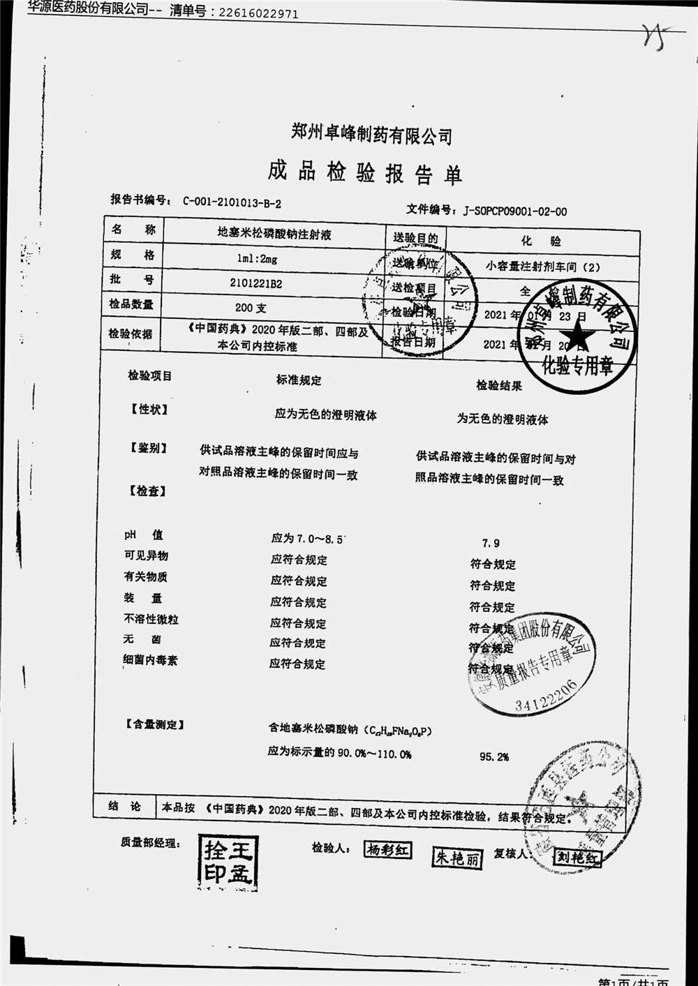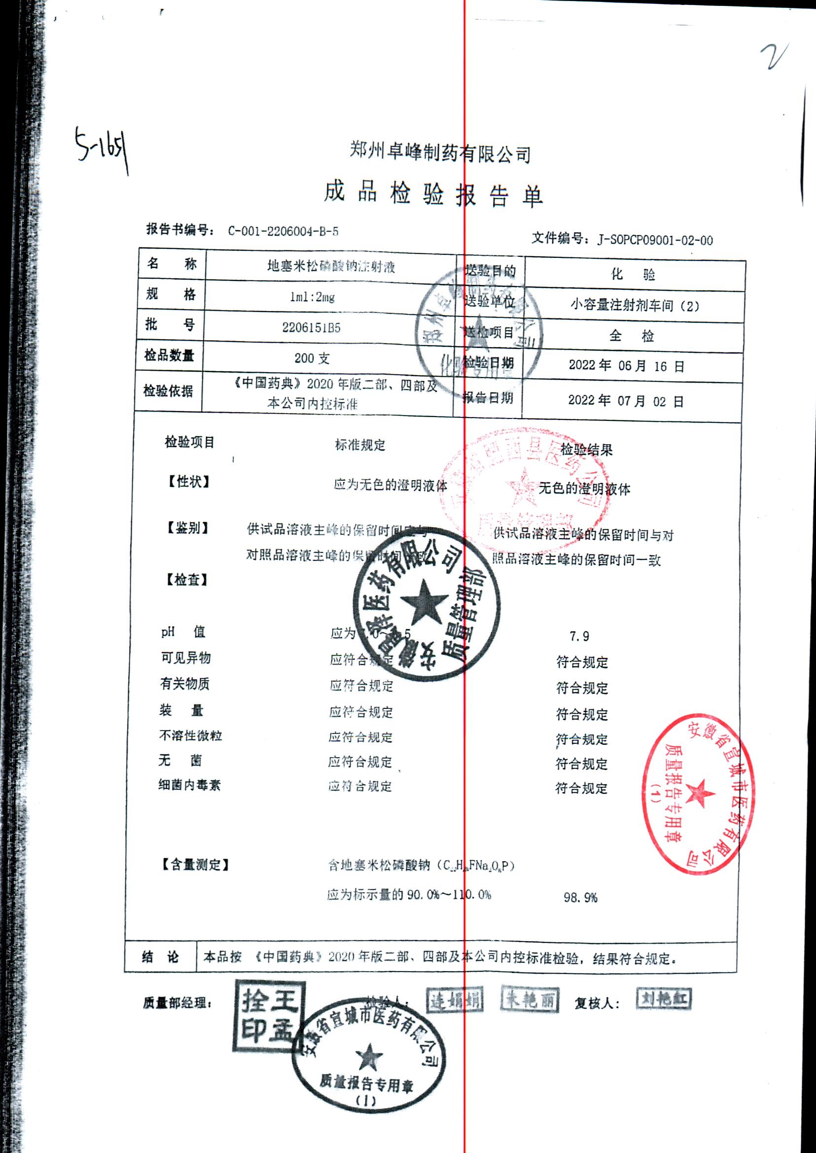 地塞米松磷酸钠注射液 | 1ml:2mg | 2206151B5 | 查看详情 |
