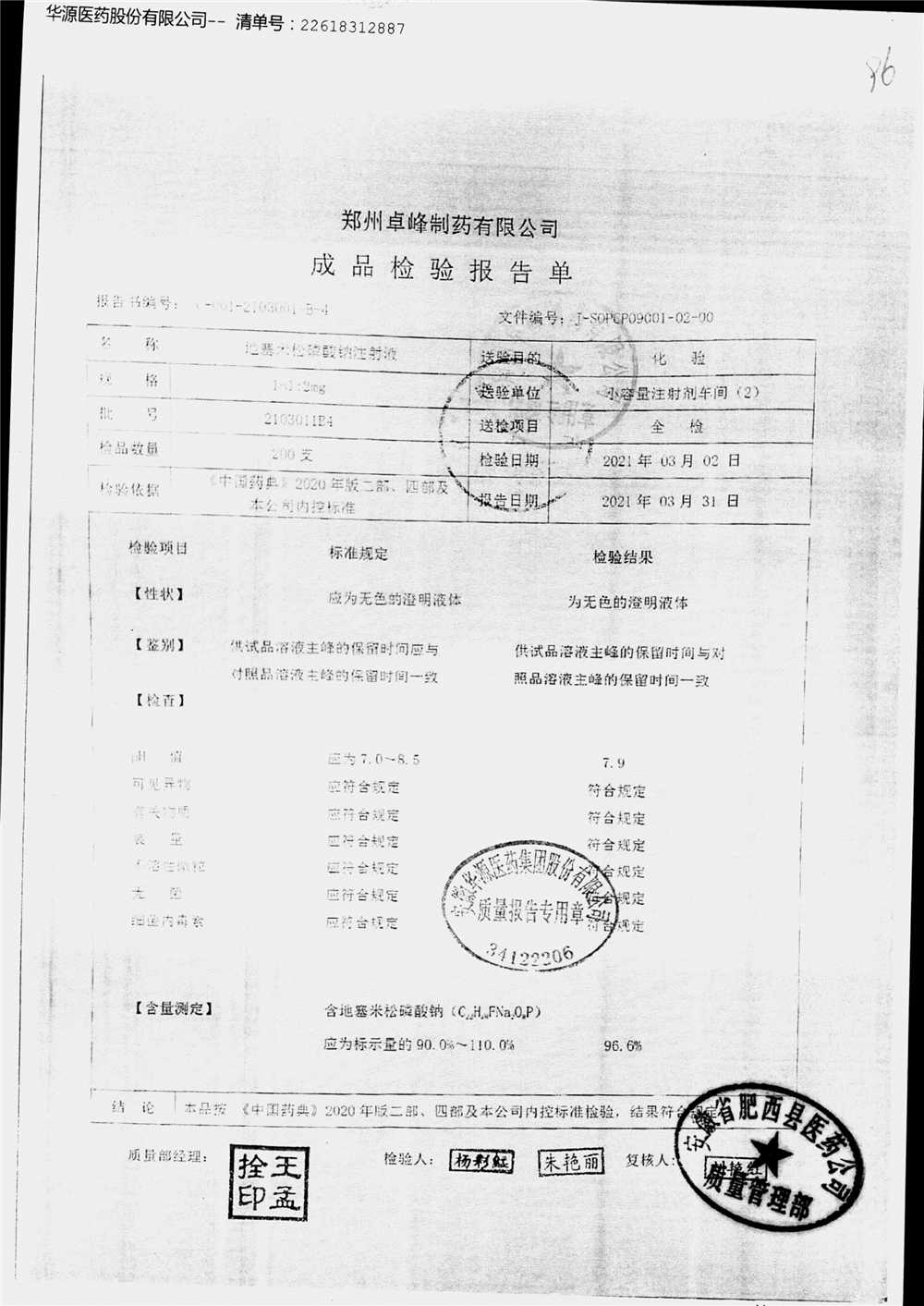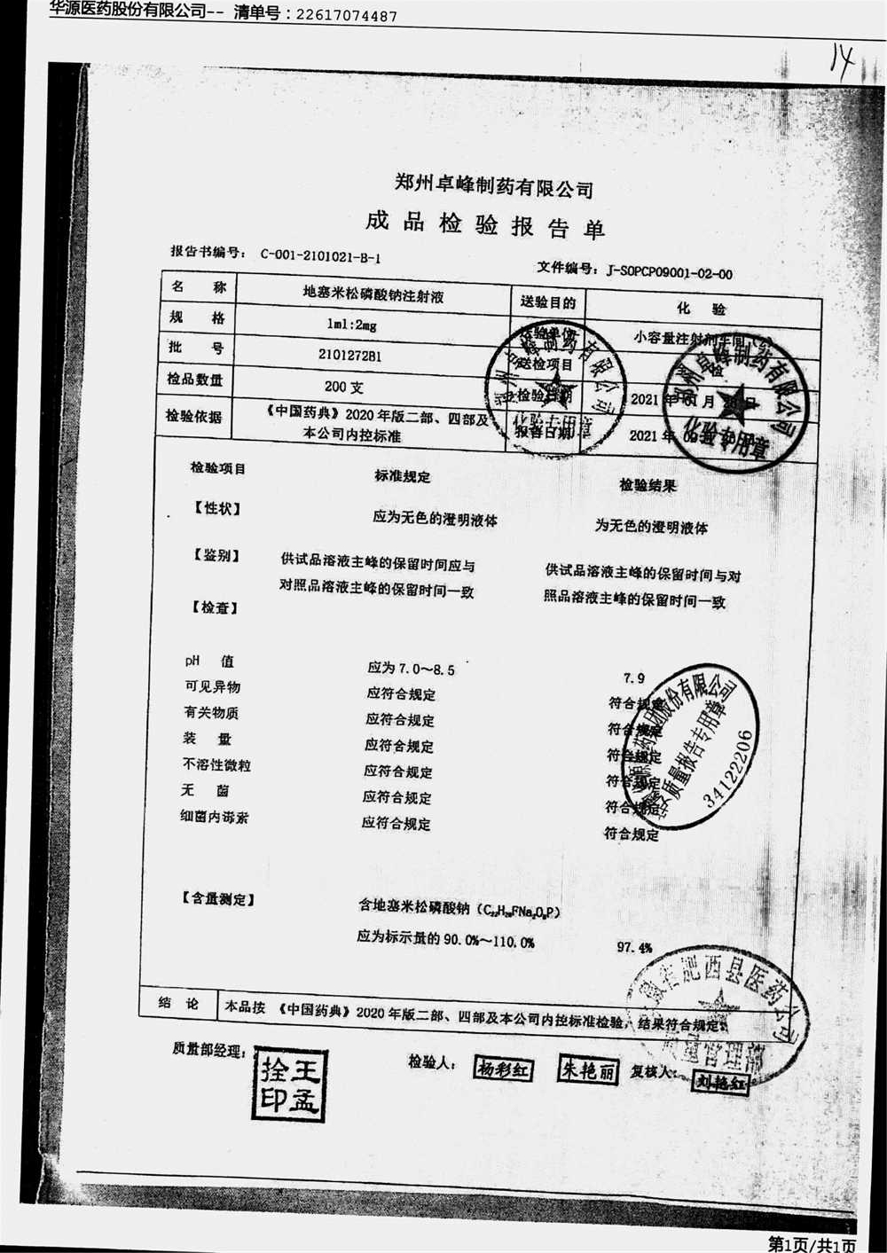地塞米松磷酸钠注射液 | 1ml:2mg | 2101272B1 | 查看详情 |