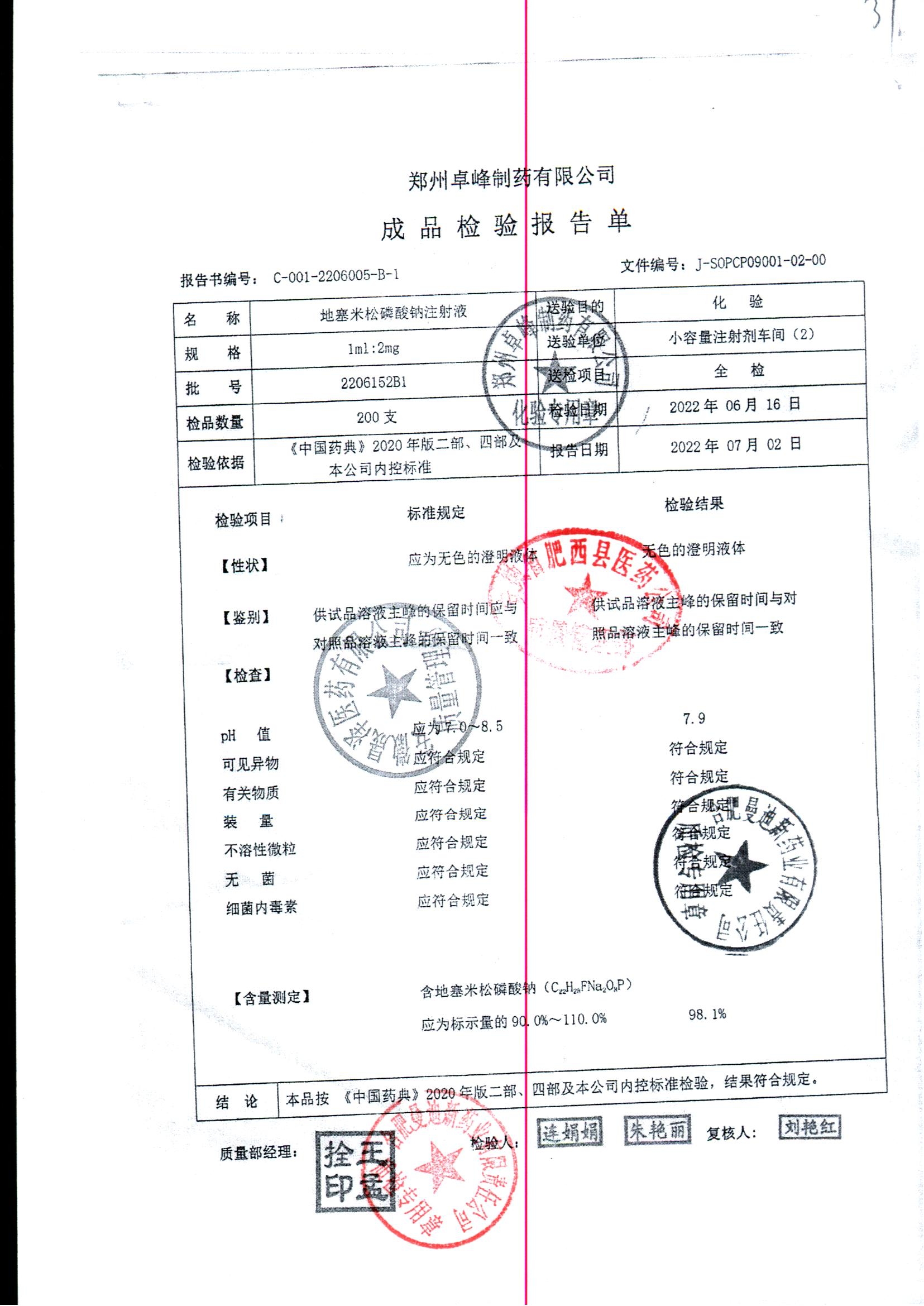 地塞米松磷酸钠注射液 | 1ml:2mg | 2206152B1 | 查看详情 |