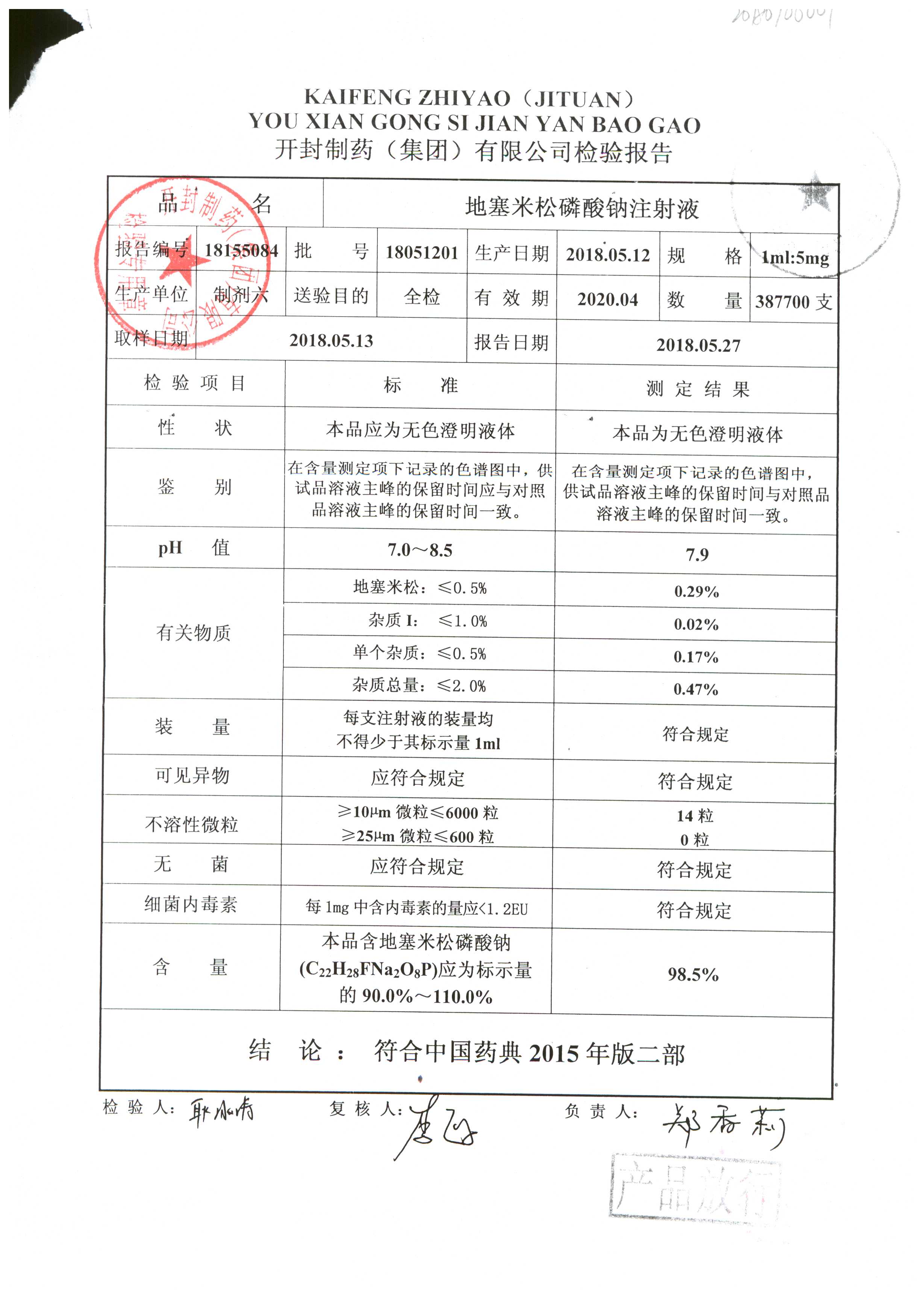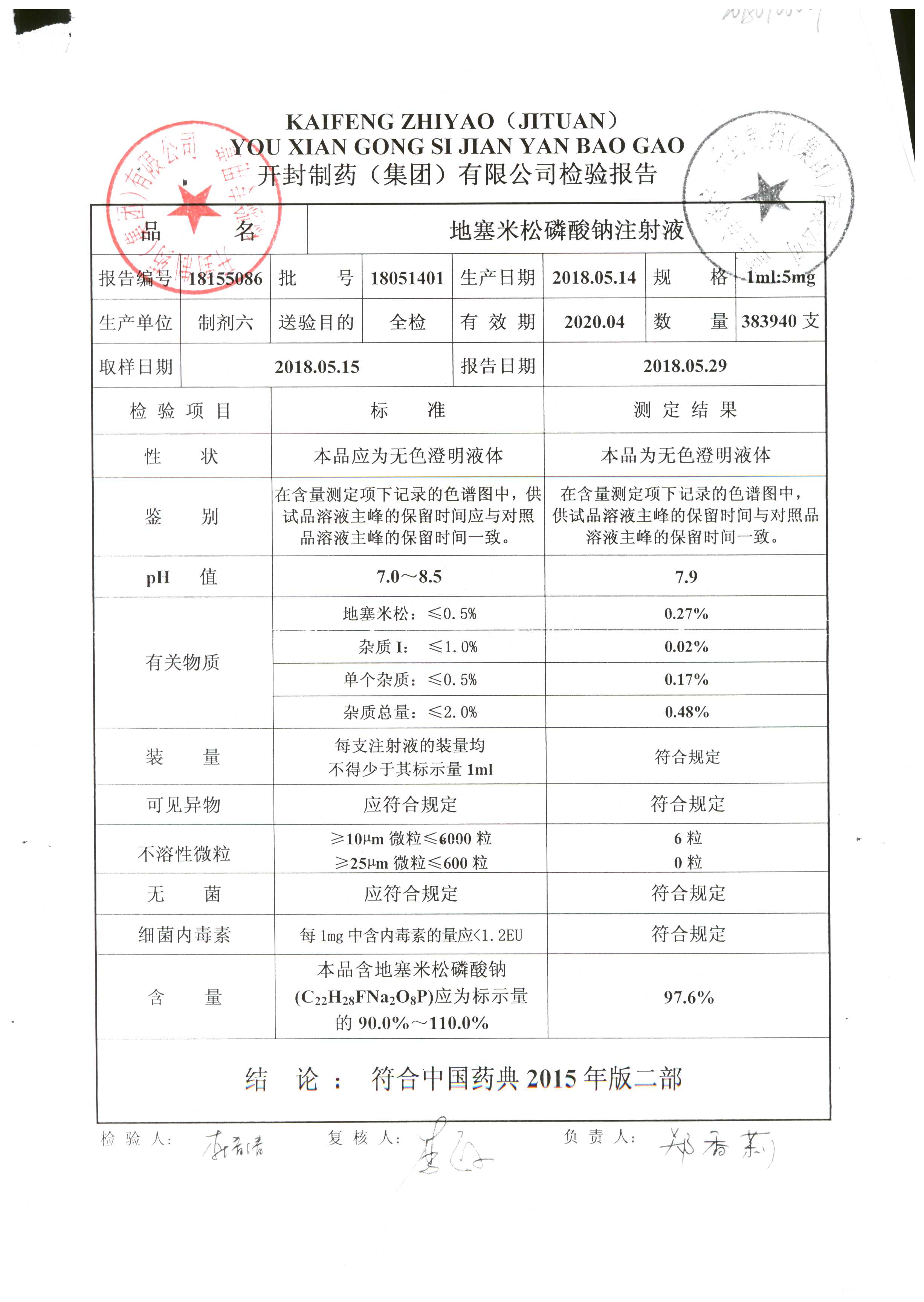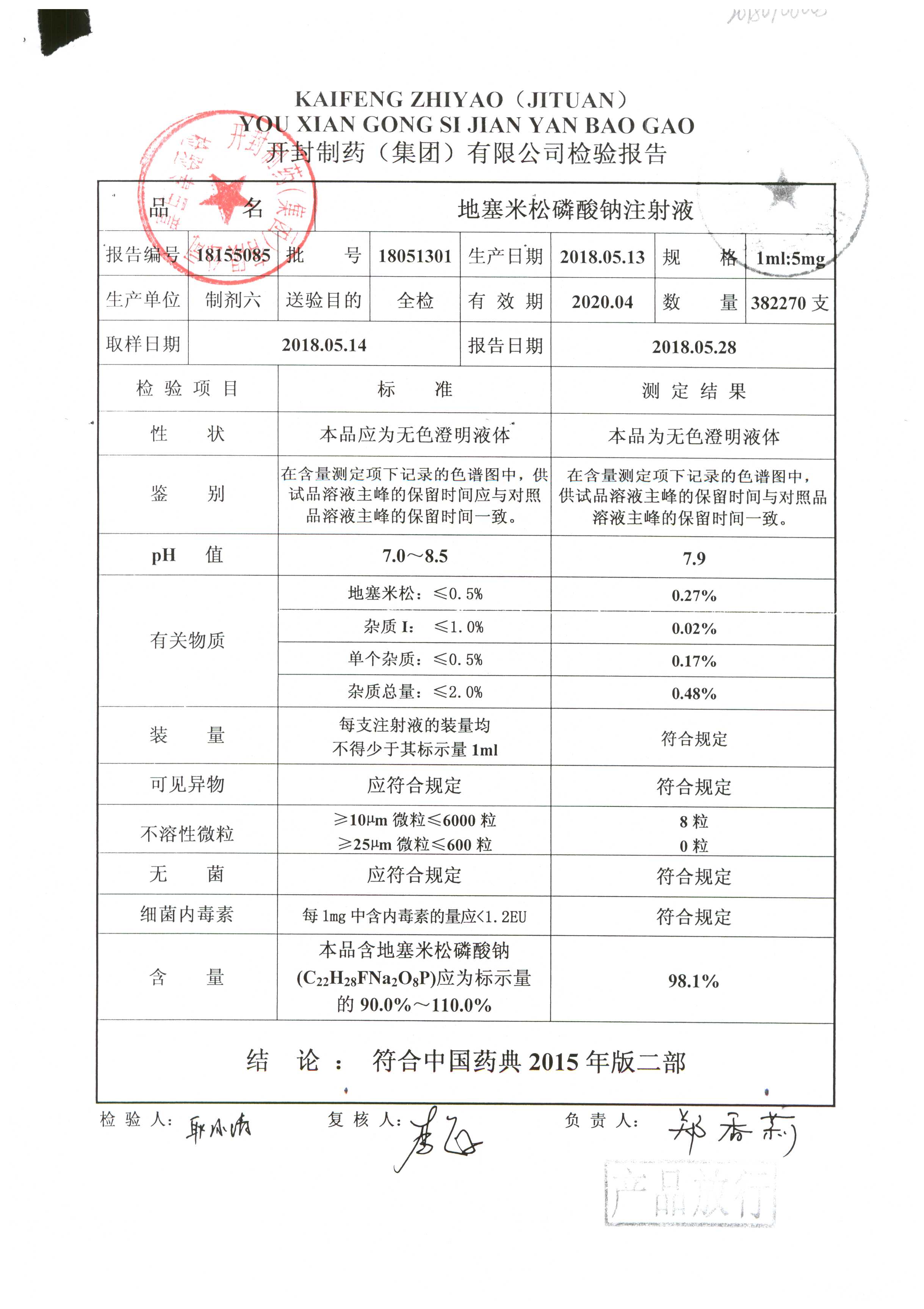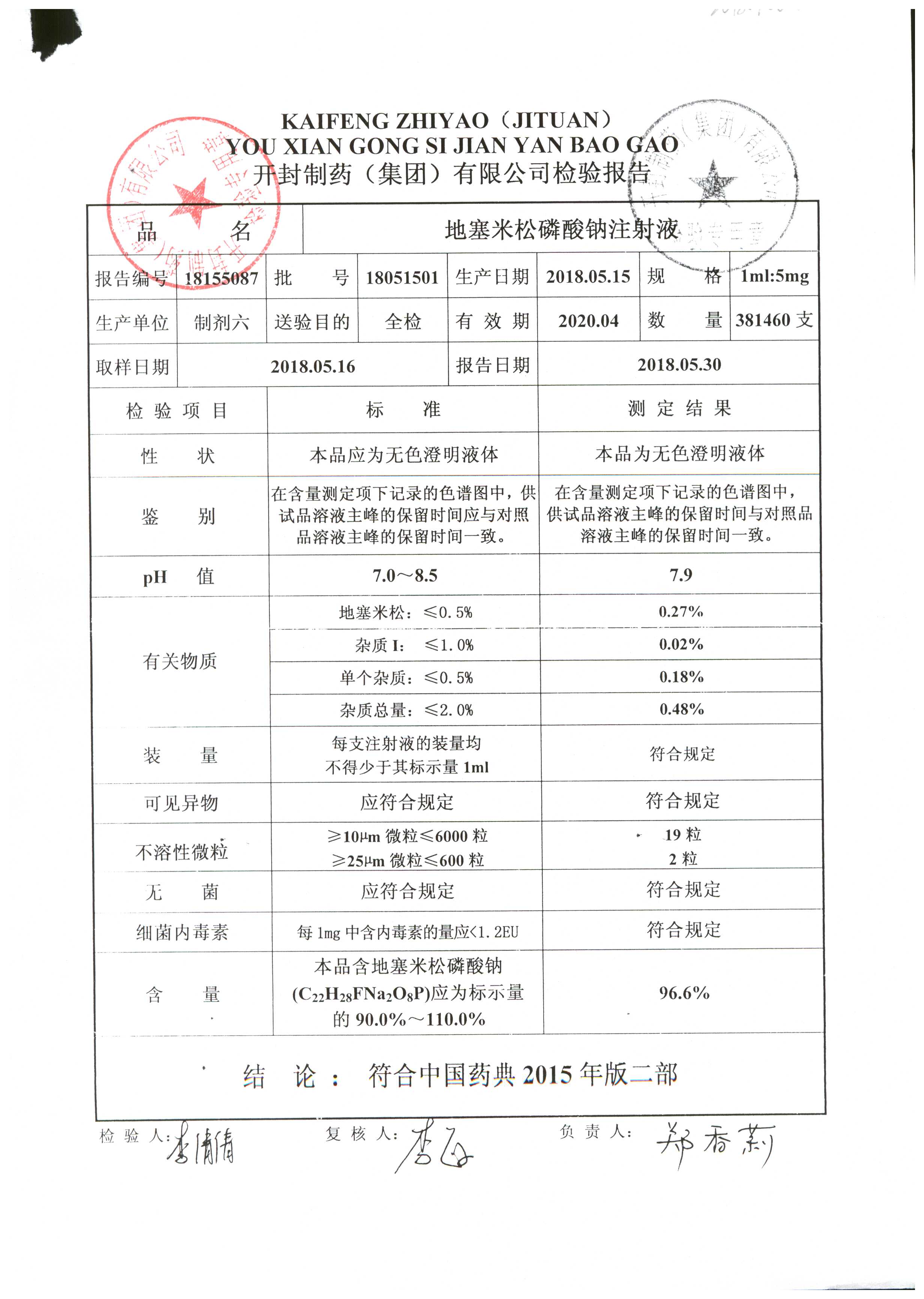 地塞米松磷酸钠注射液 | 1ml:5mg | 18051301 | 查看详情 |