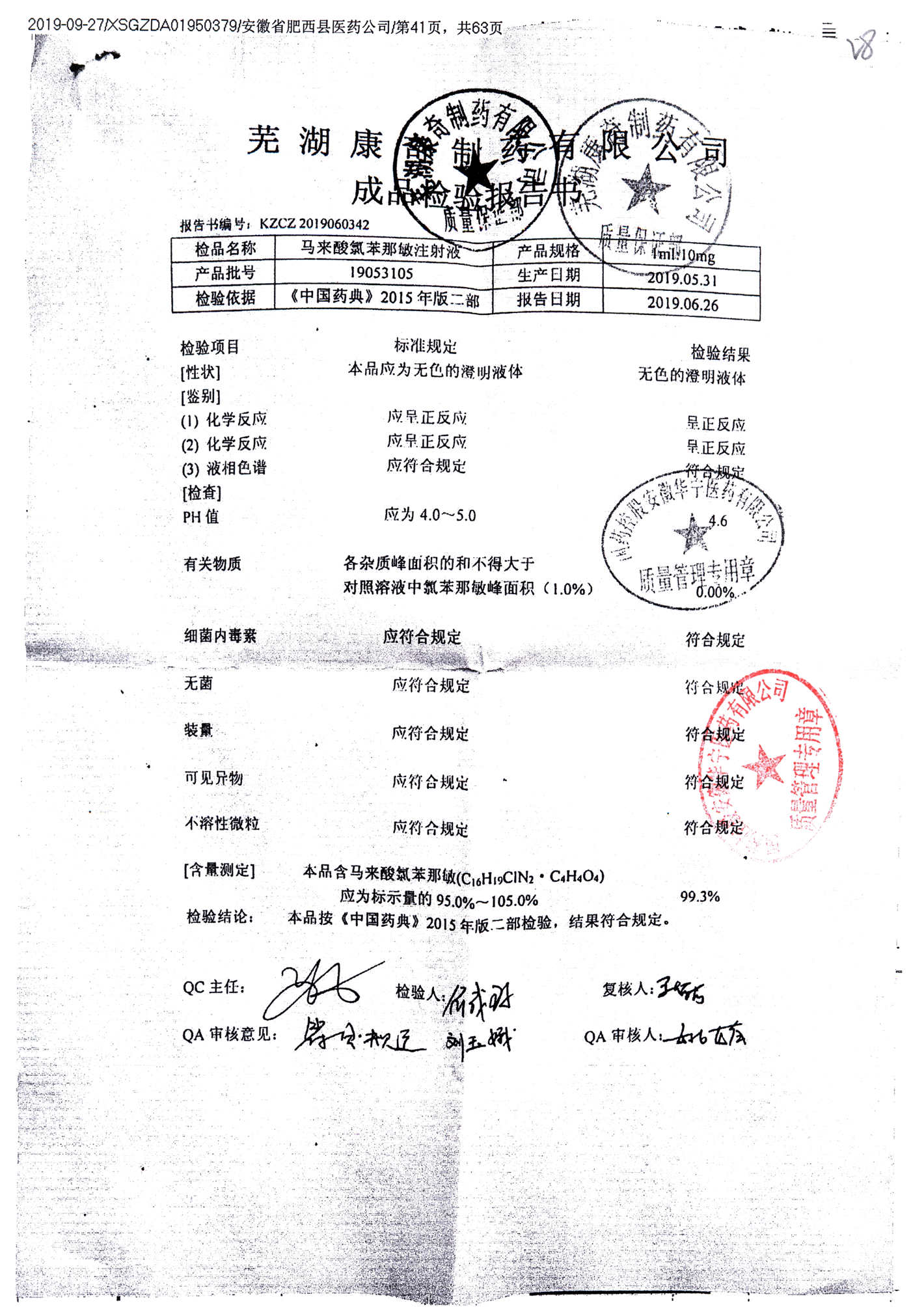 马来酸氯苯那敏注射液 | 1ml:10mg | 19041709 | 查看详情 |