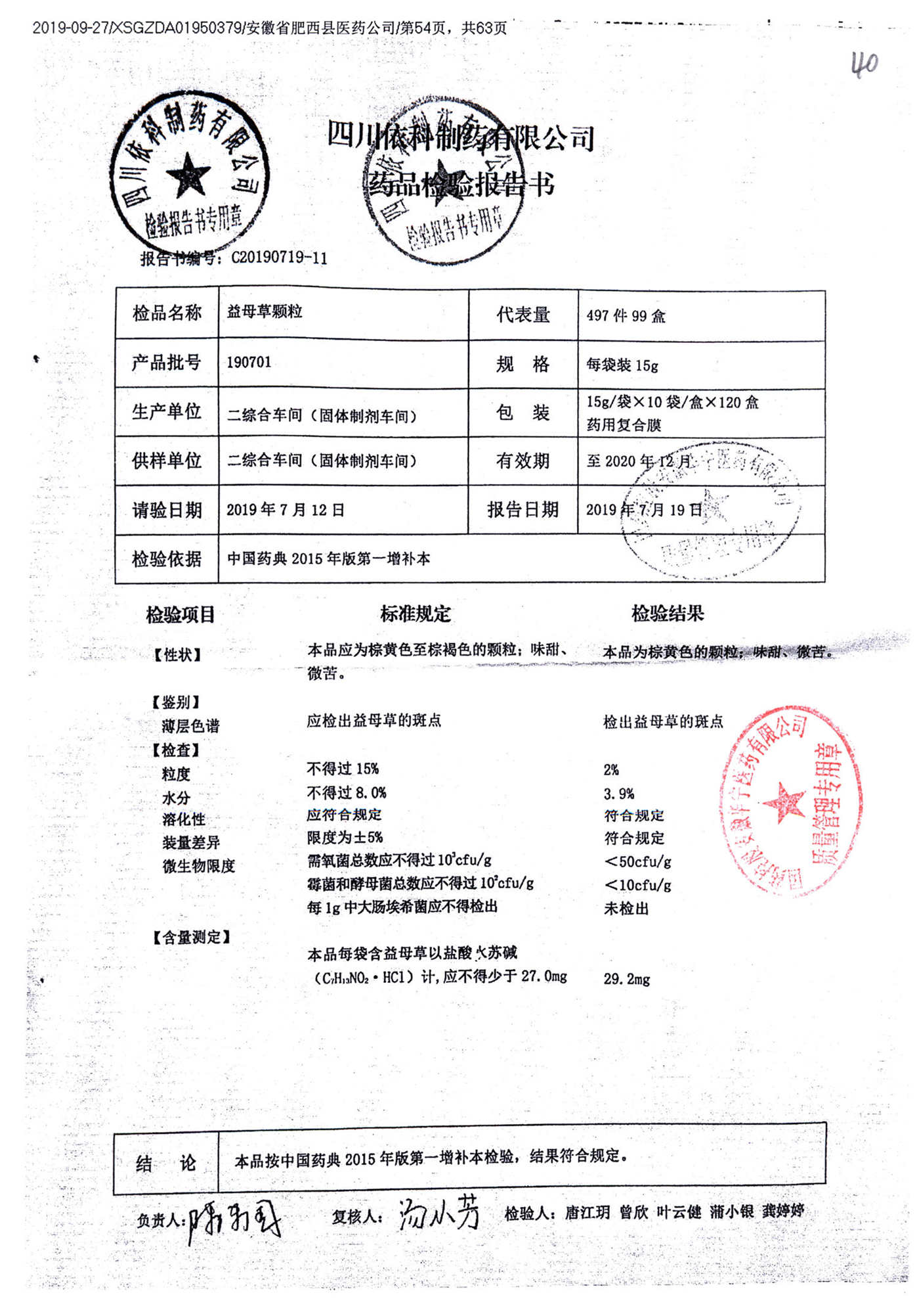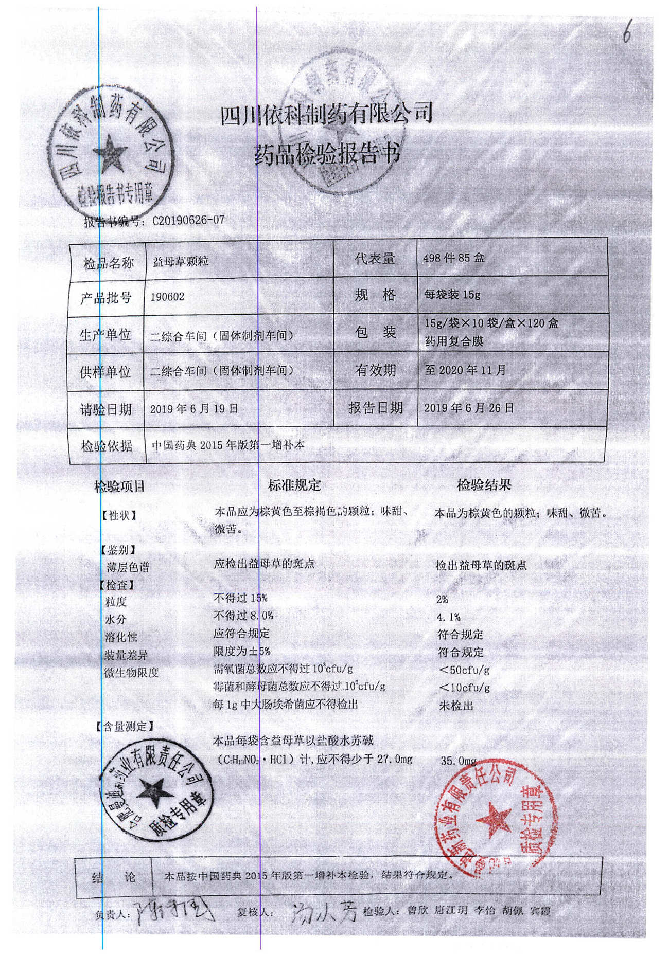 益母草颗粒 | 15g*10袋 | 190602 | 查看详情 |