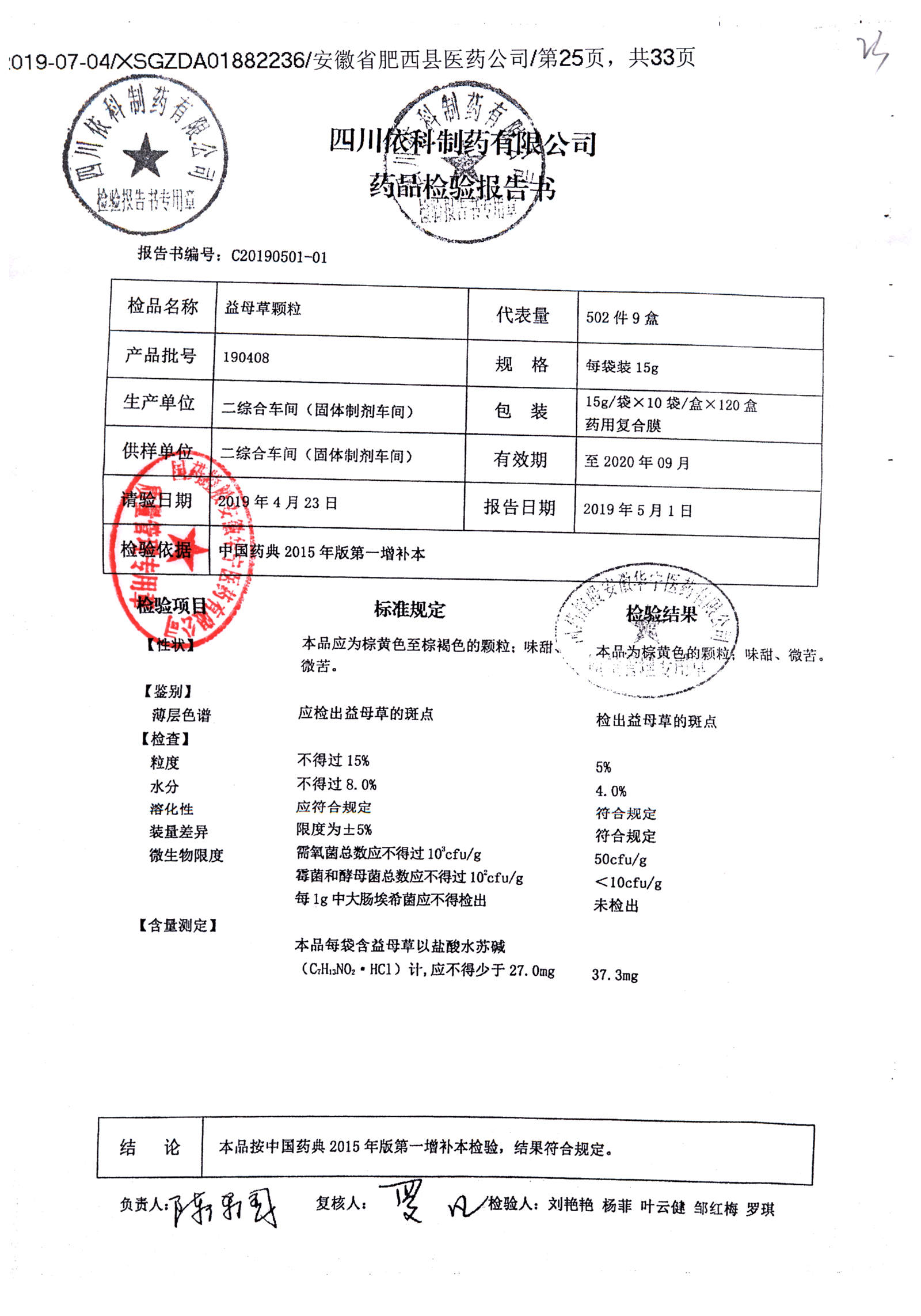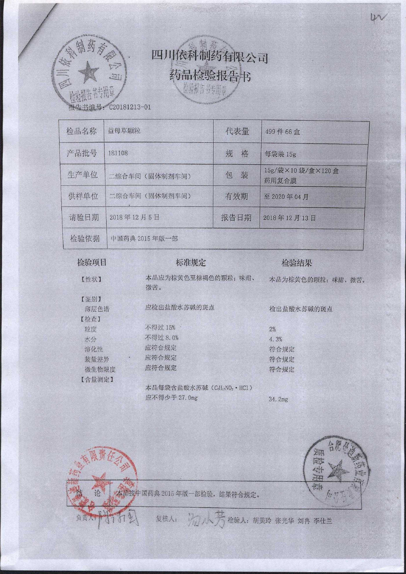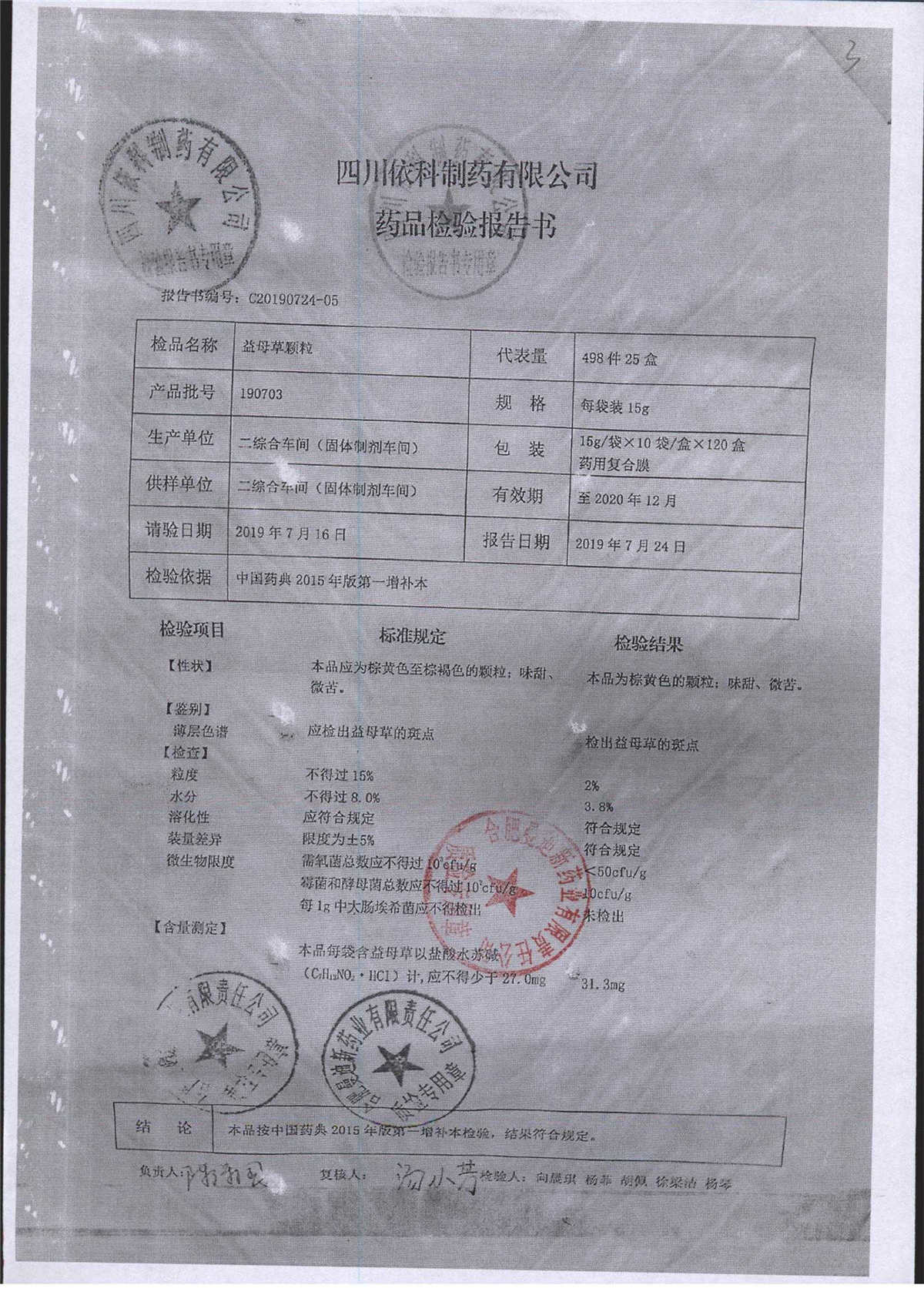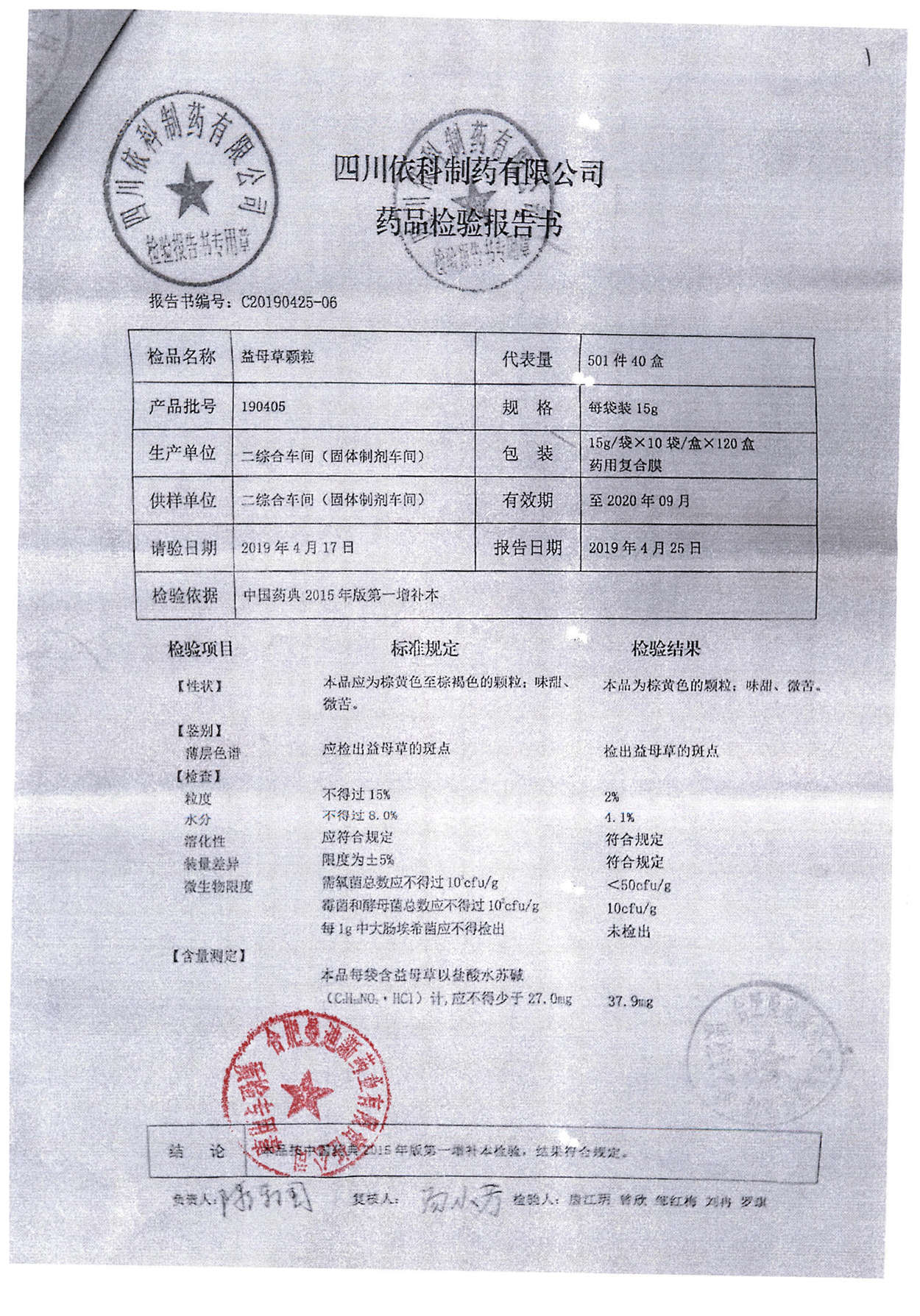 益母草颗粒 | 15g*10袋 | 190408 | 查看详情 |