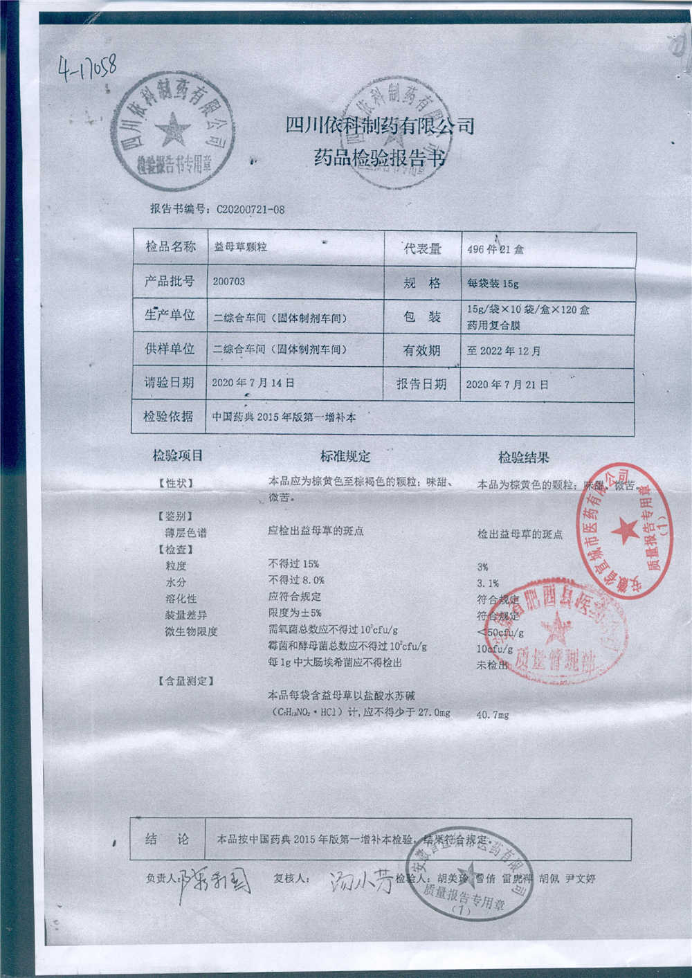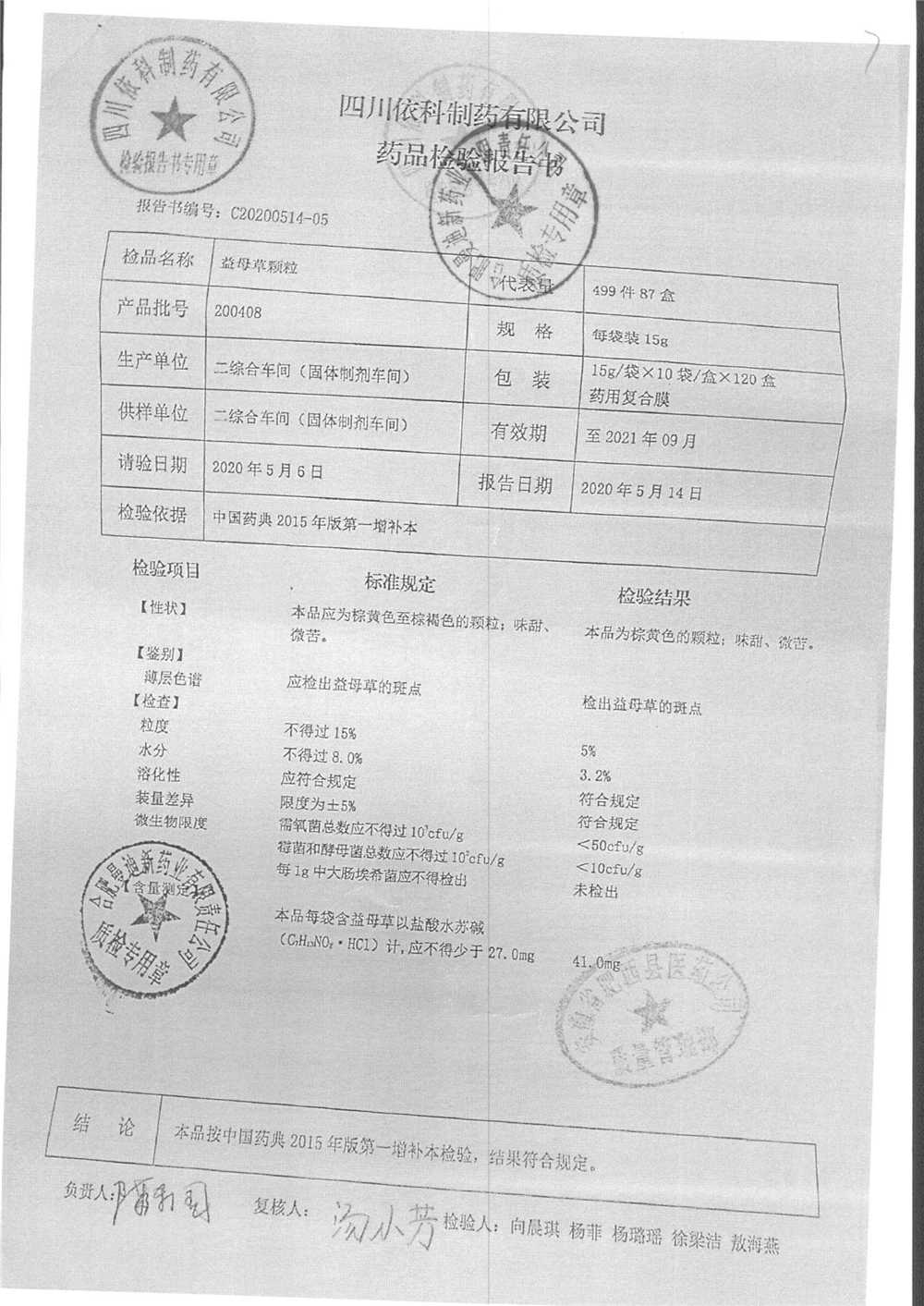 益母草颗粒 | 15g*10袋 | 200805 | 查看详情 |
