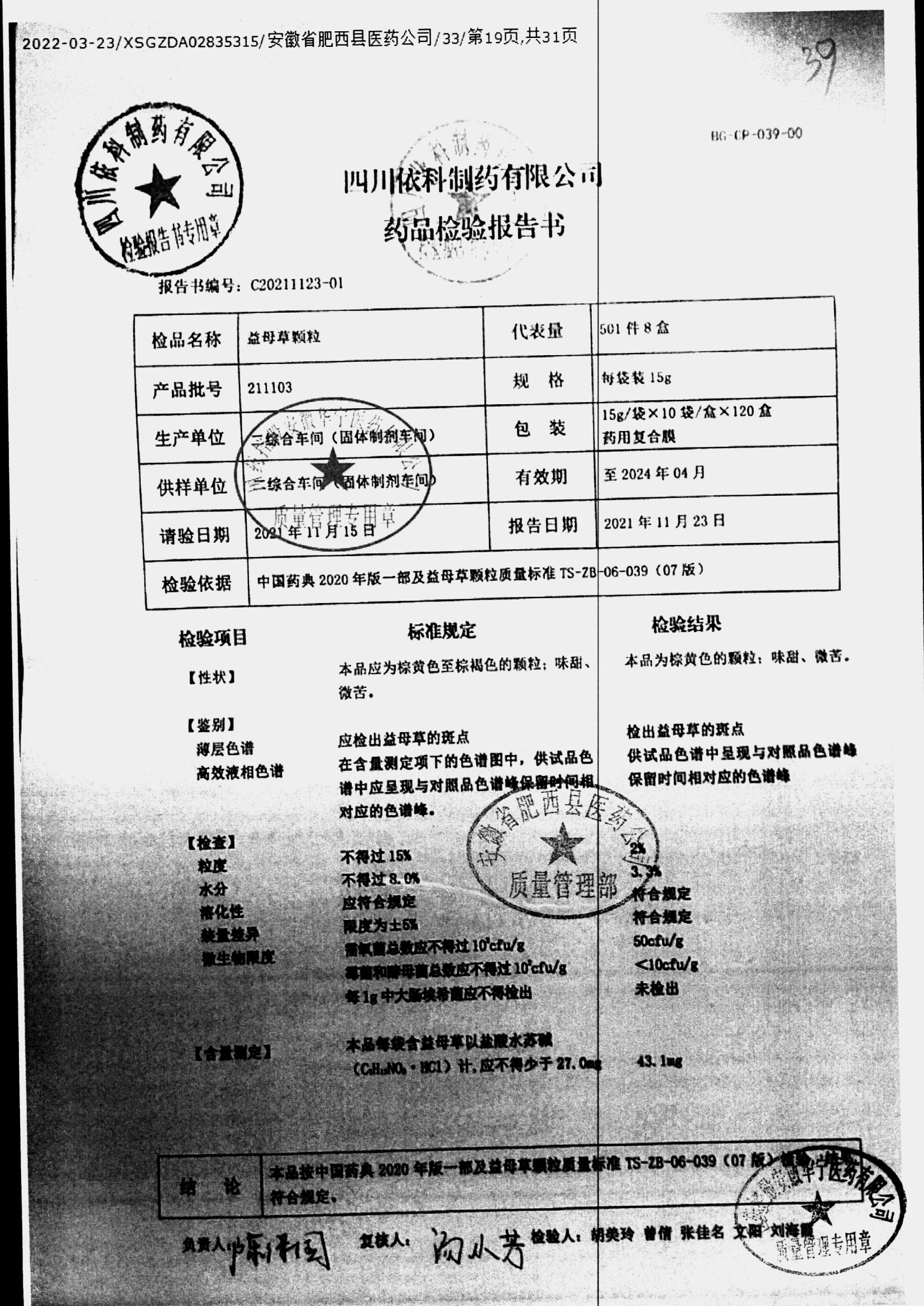 益母草颗粒 | 15g*10袋 | 220503 | 查看详情 |
