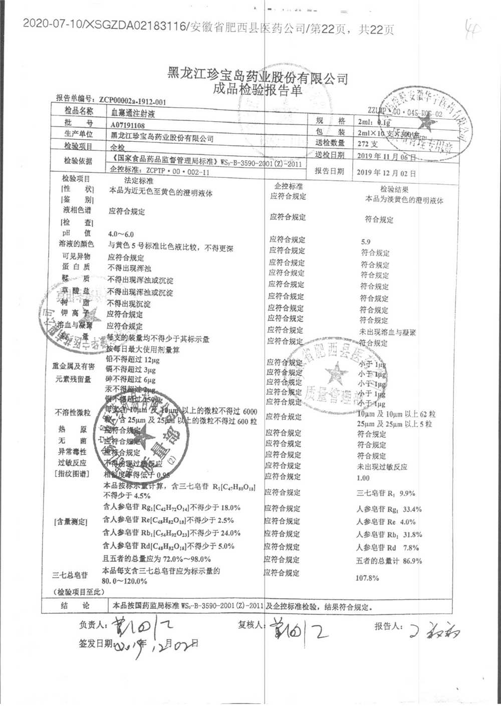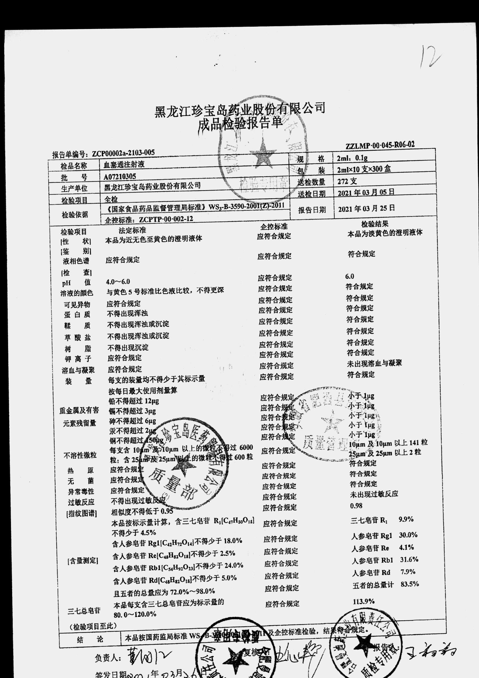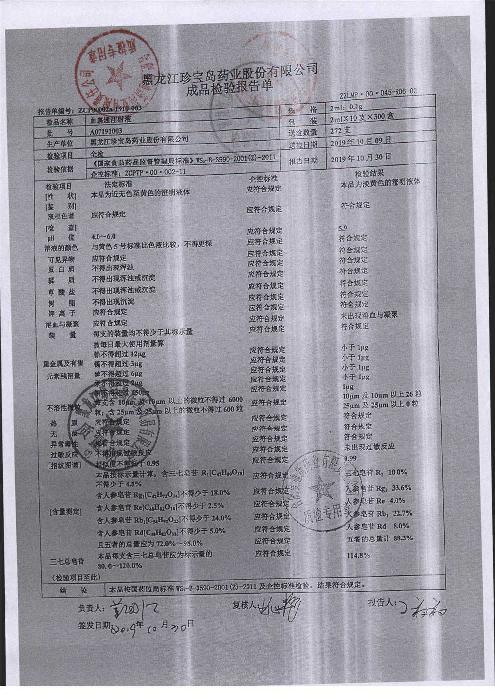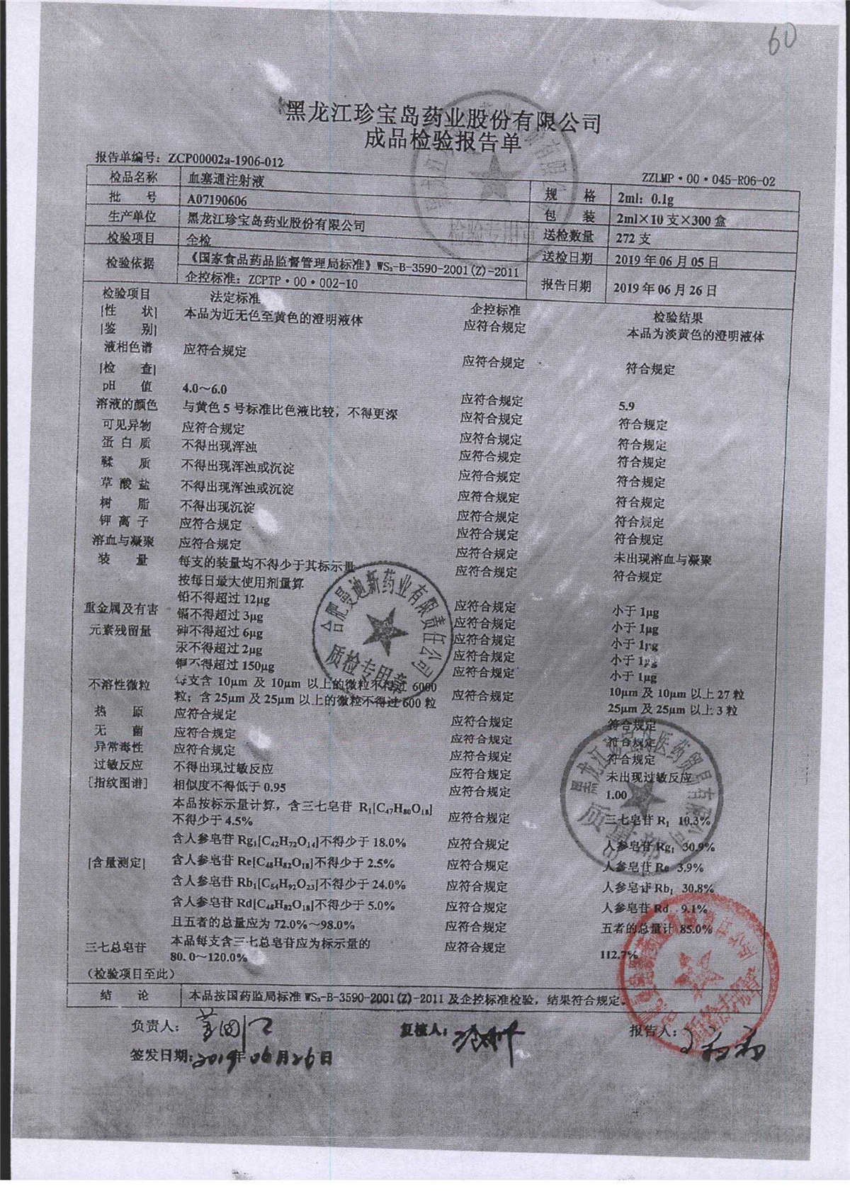 血塞通注射液 | 2ml:0.1g | A07190406 | 查看详情 |