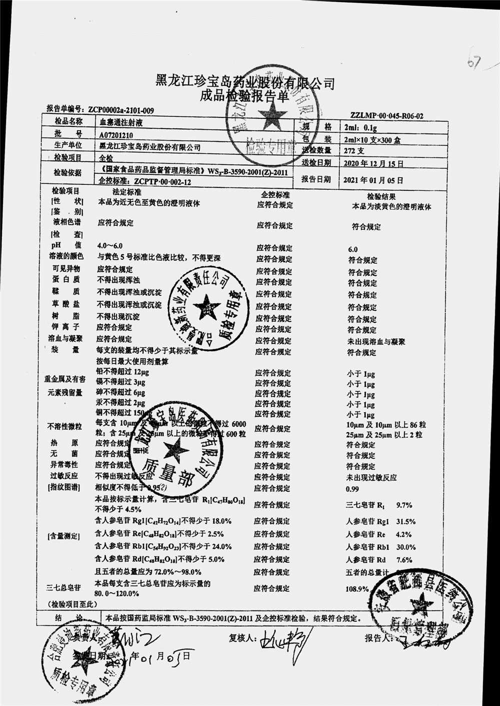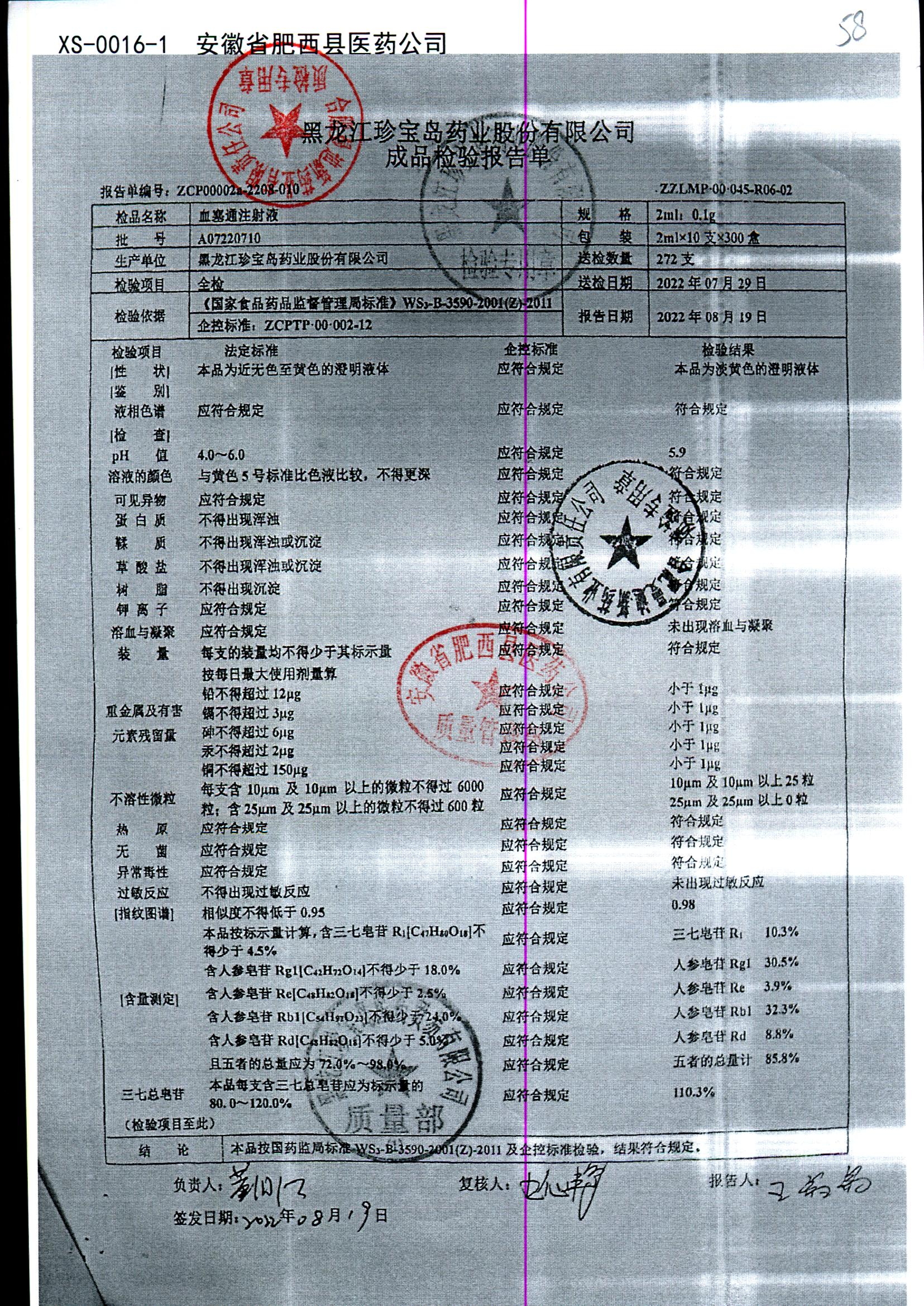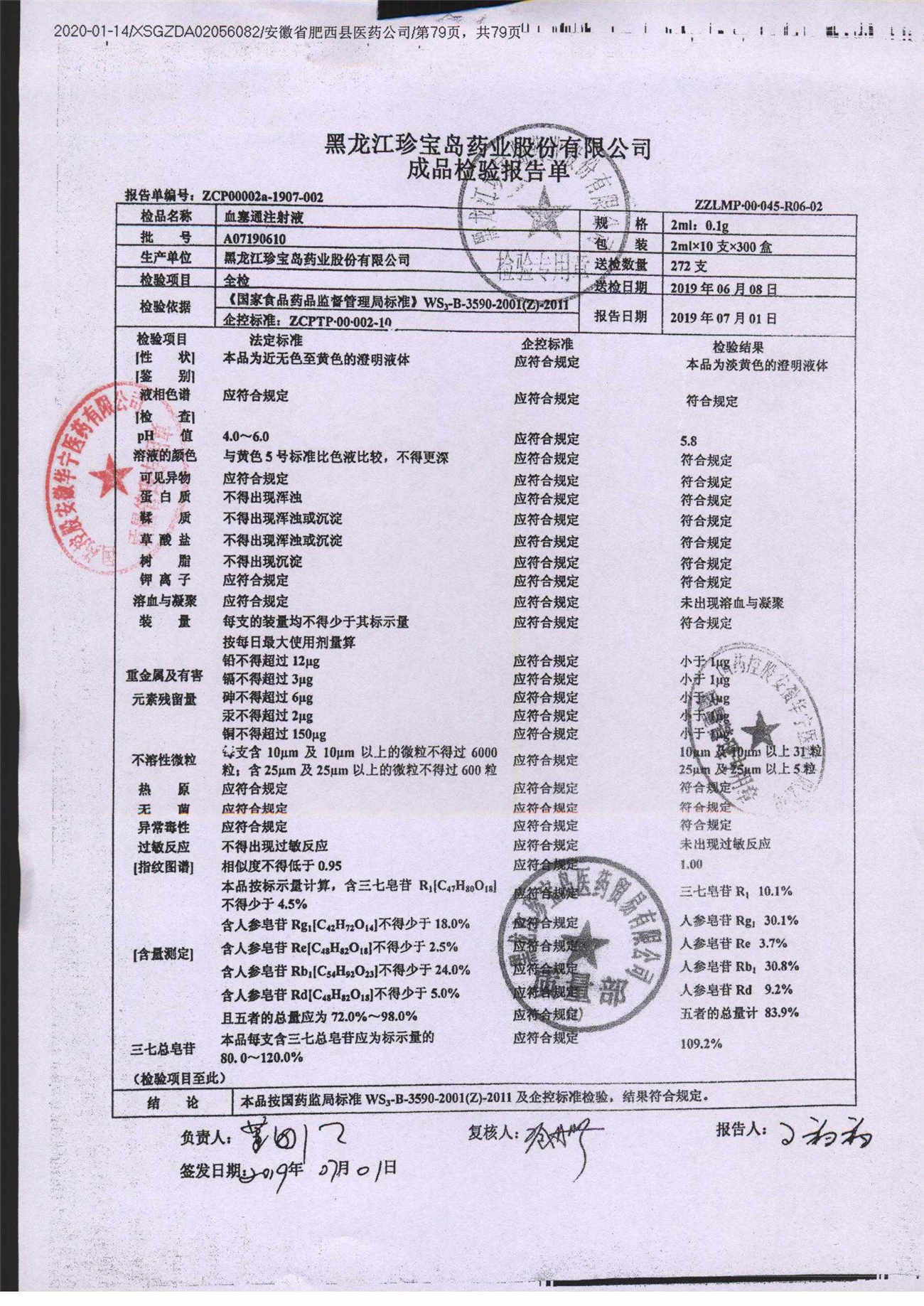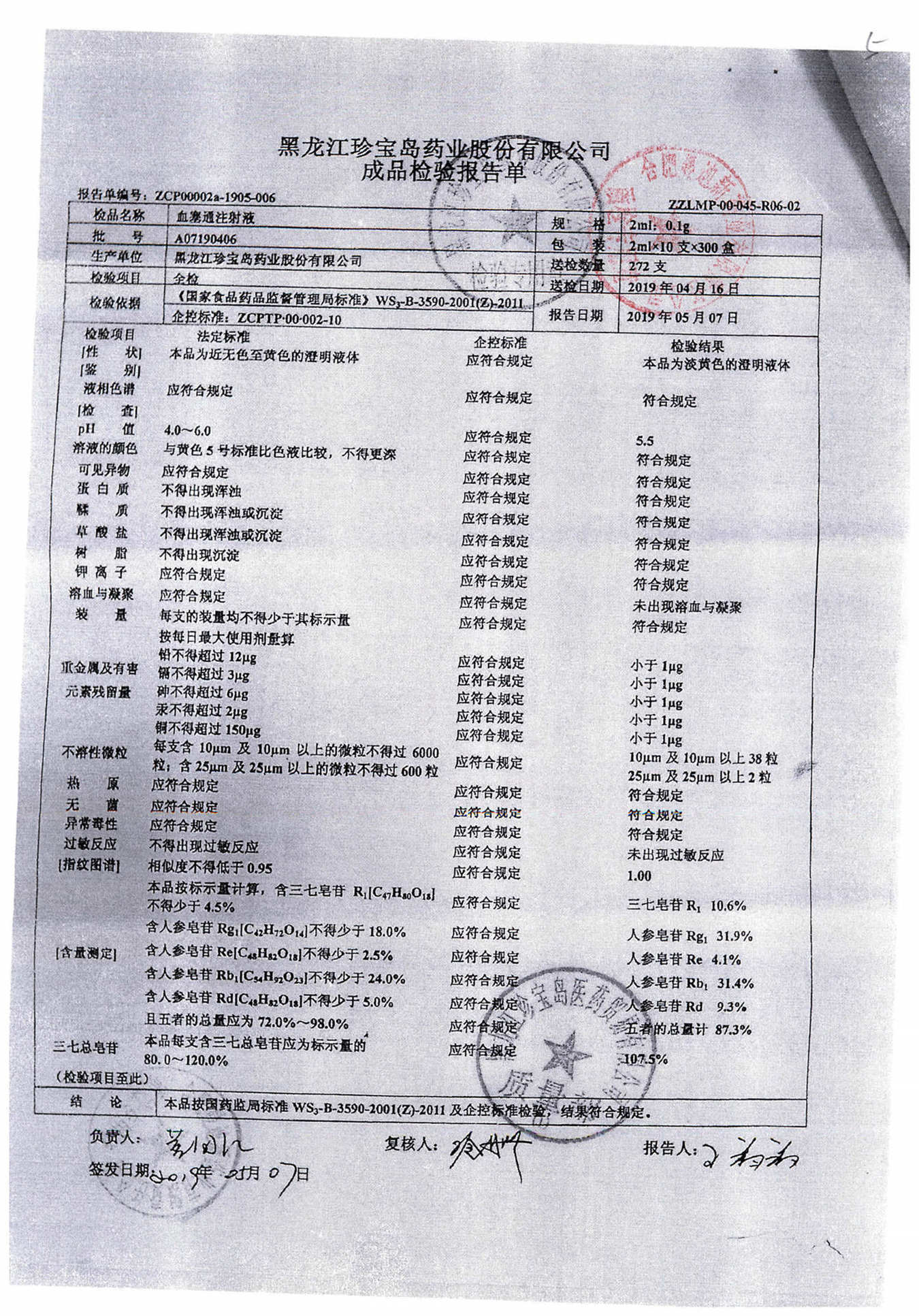 血塞通注射液 | 2ml:0.1g | A07190503 | 查看详情 |
