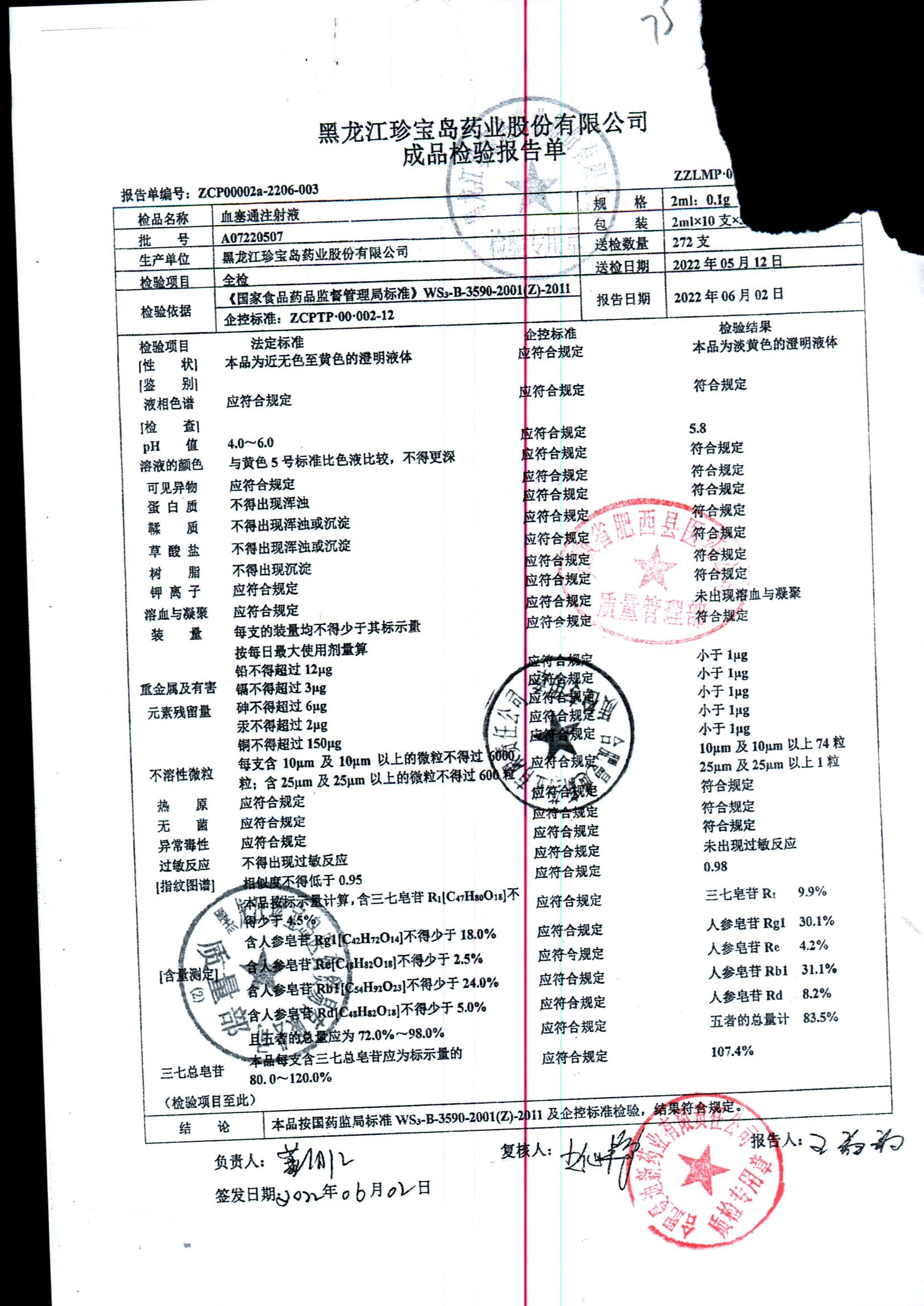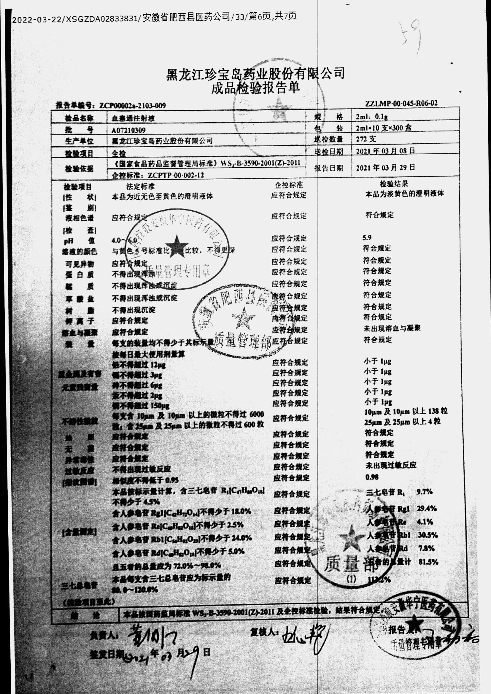 血塞通注射液 | 2ml:0.1g | A07220512 | 查看详情 |
