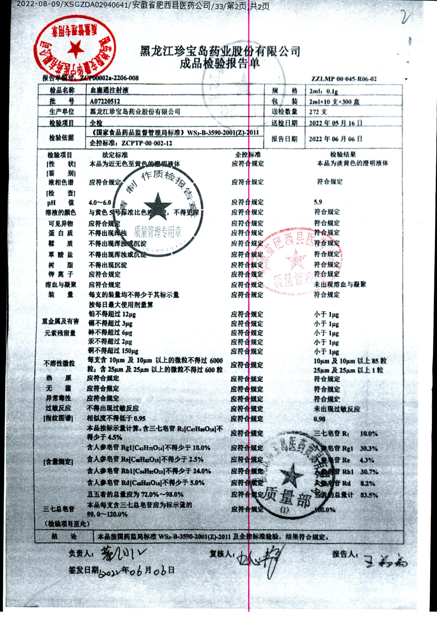 血塞通注射液 | 2ml:0.1g | A07220707 | 查看详情 |