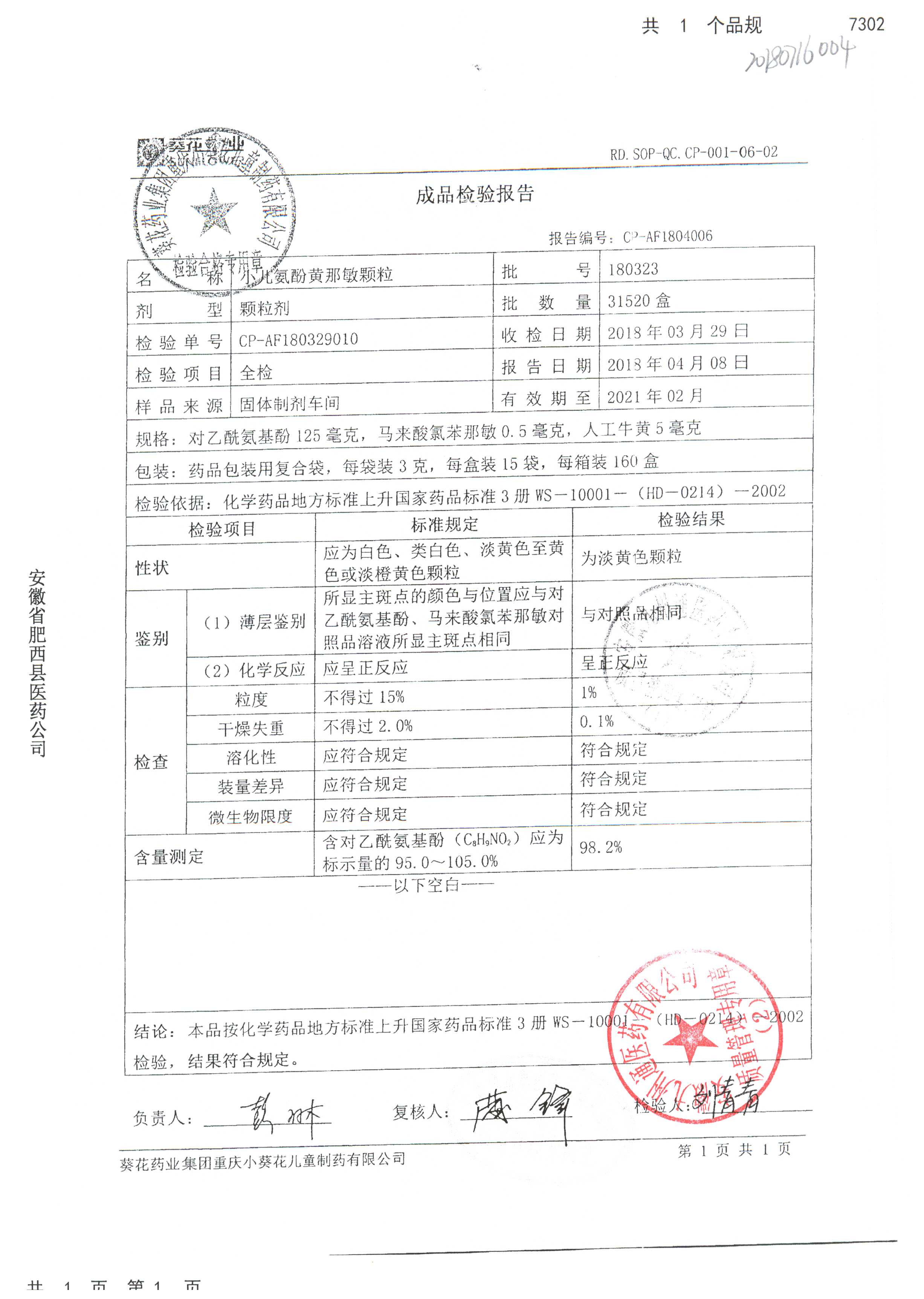 小儿氨酚黄那敏颗粒 | 3g*15袋 | 190208 | 查看详情 |