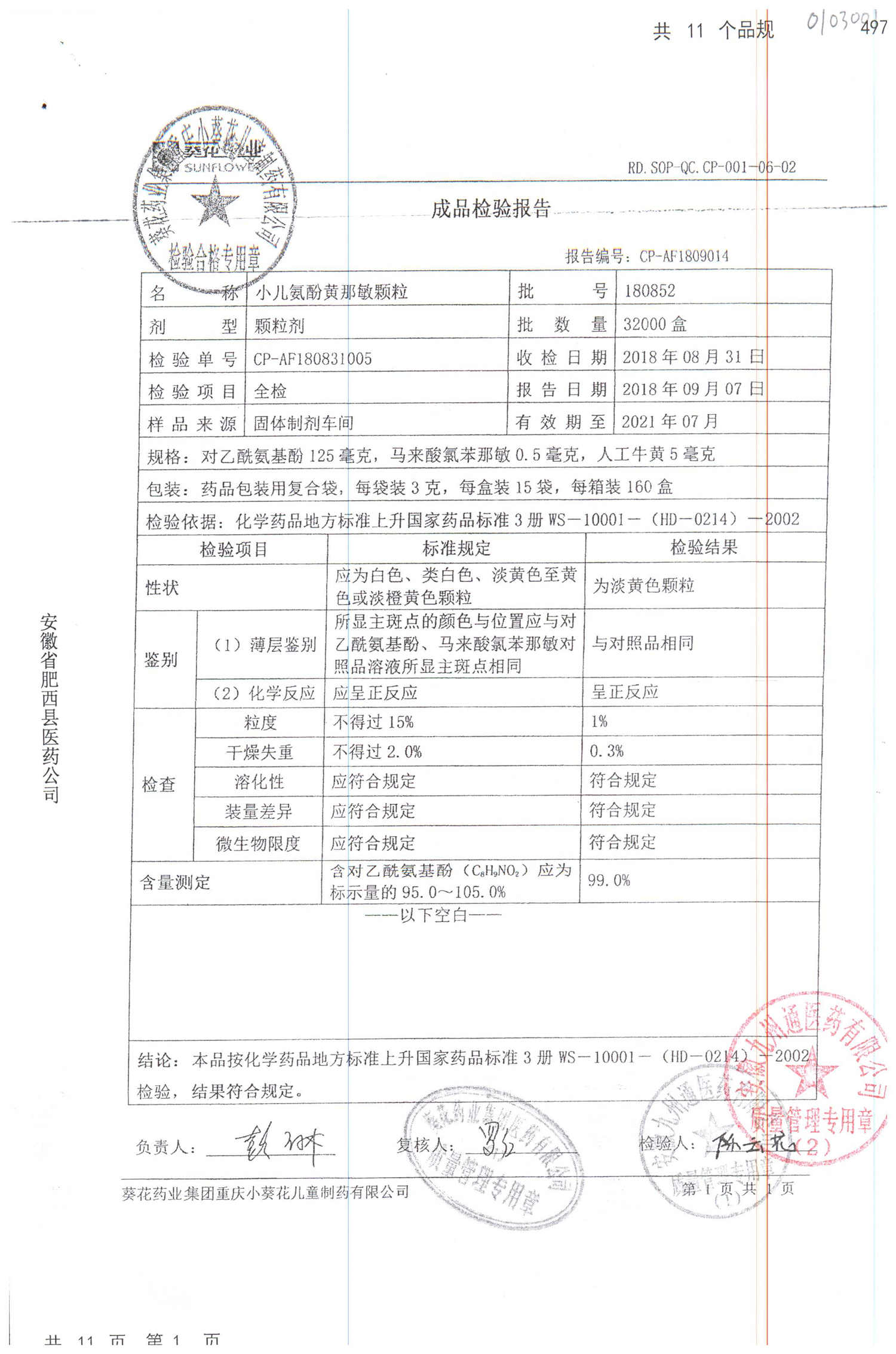 小儿氨酚黄那敏颗粒 | 3g*15袋 | 180407 | 查看详情 |
