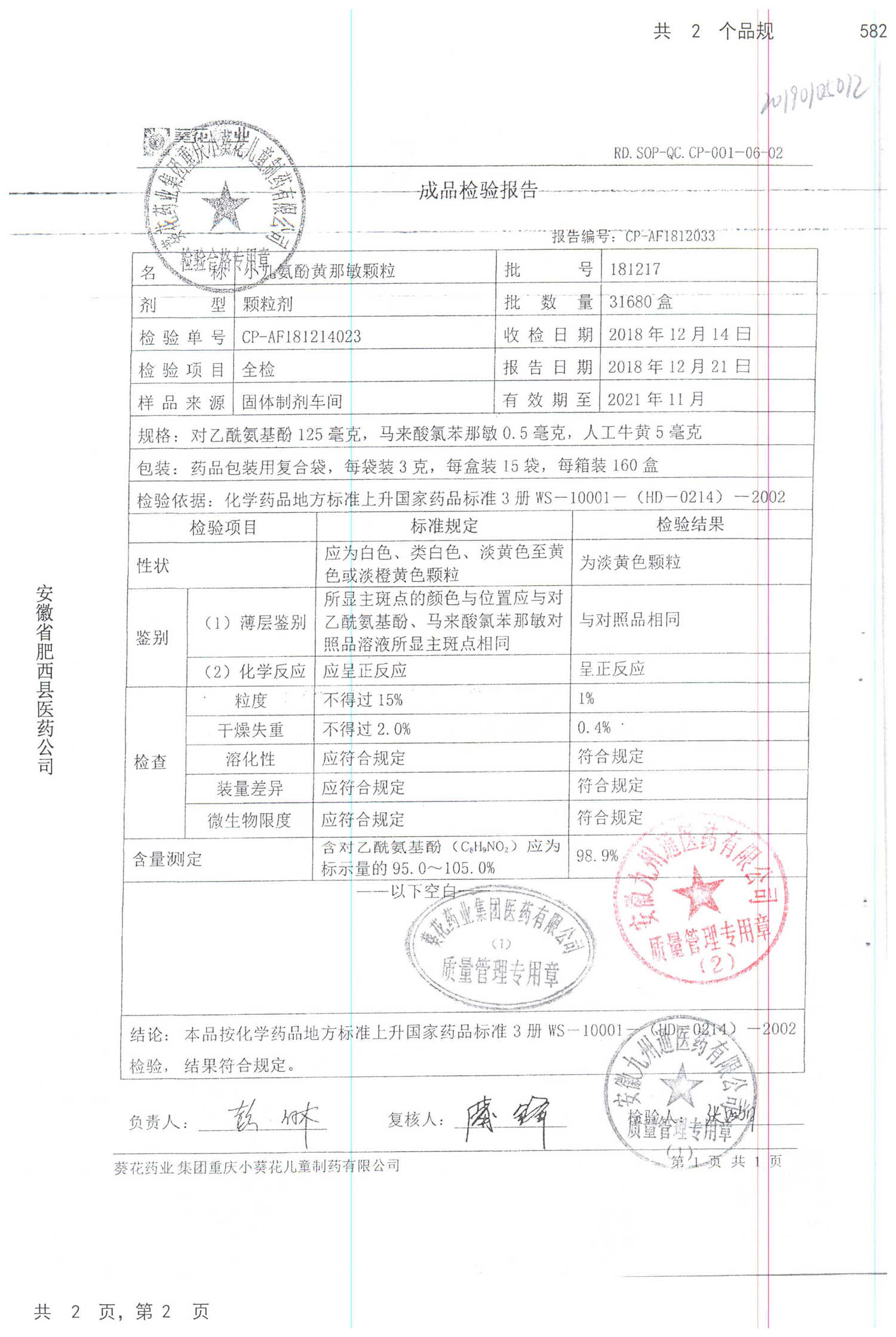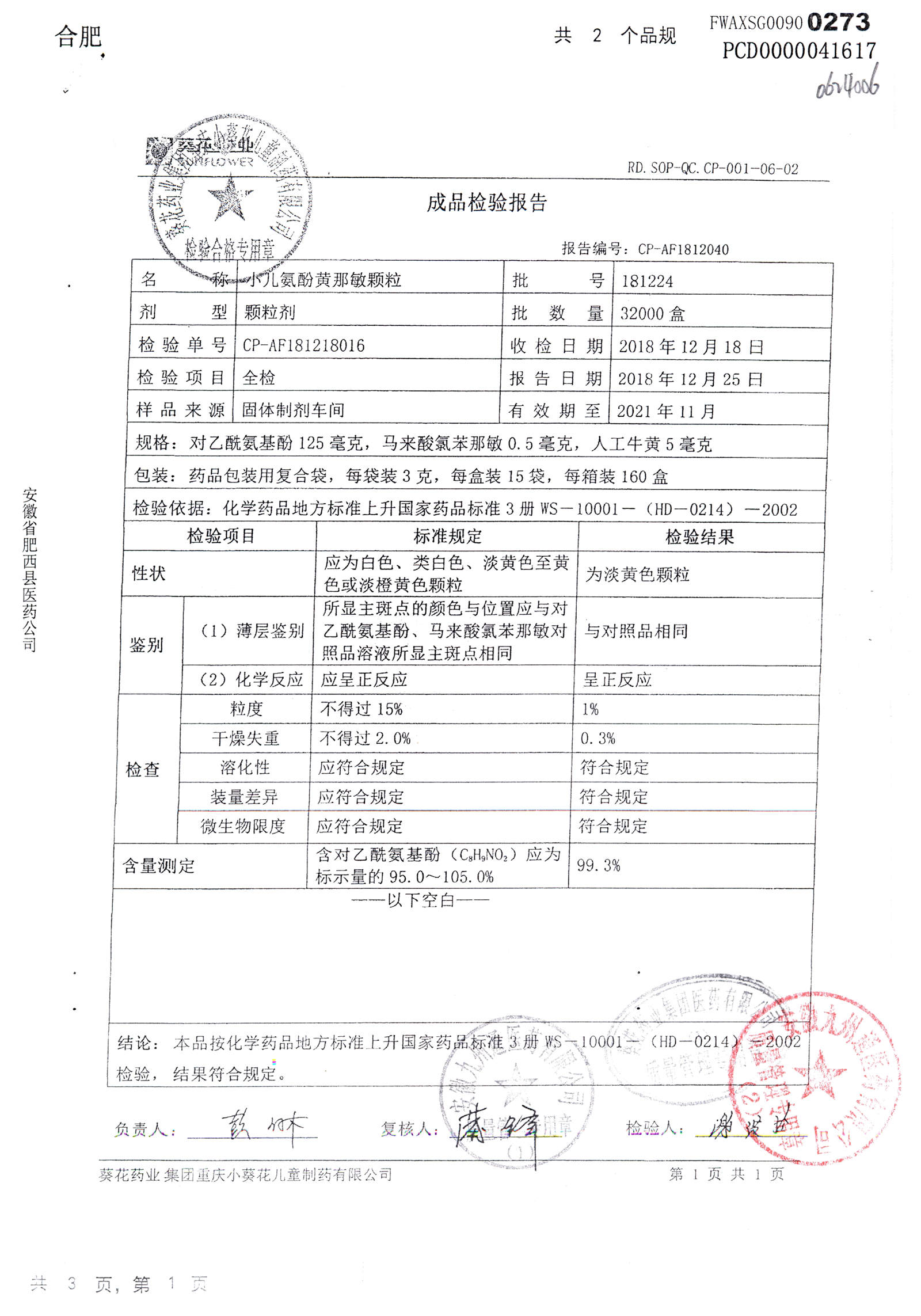 小儿氨酚黄那敏颗粒 | 3g*15袋 | 181217 | 查看详情 |