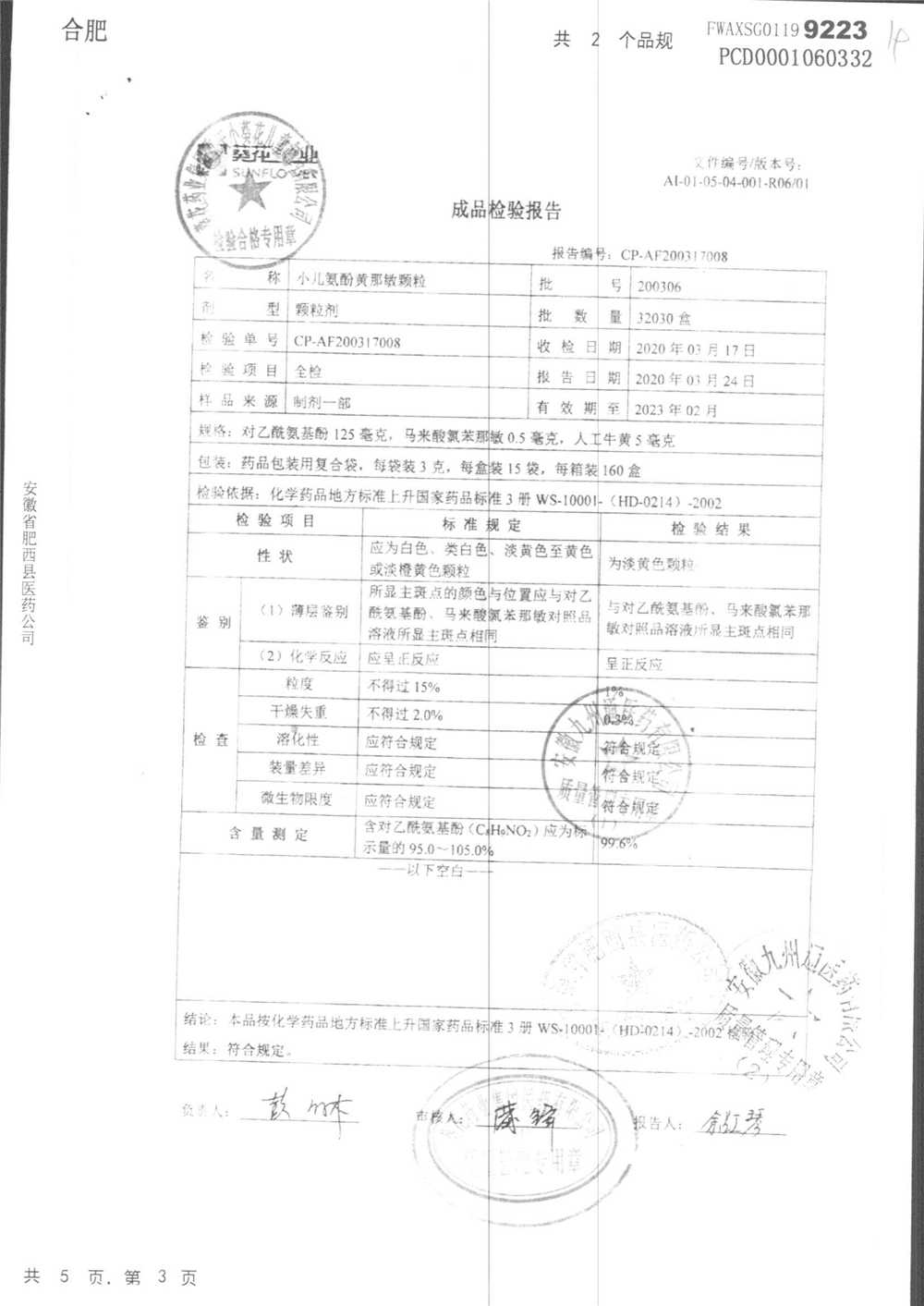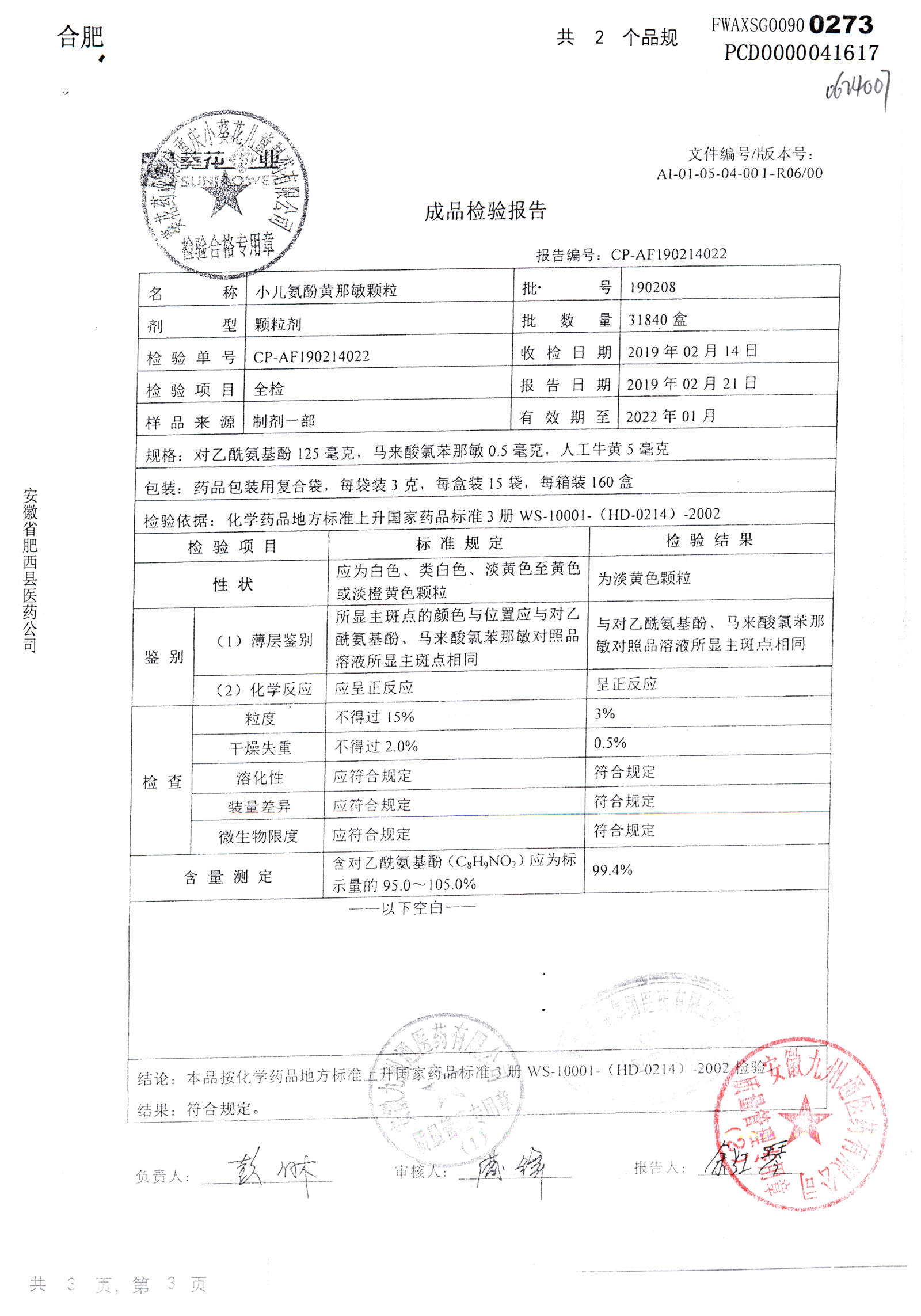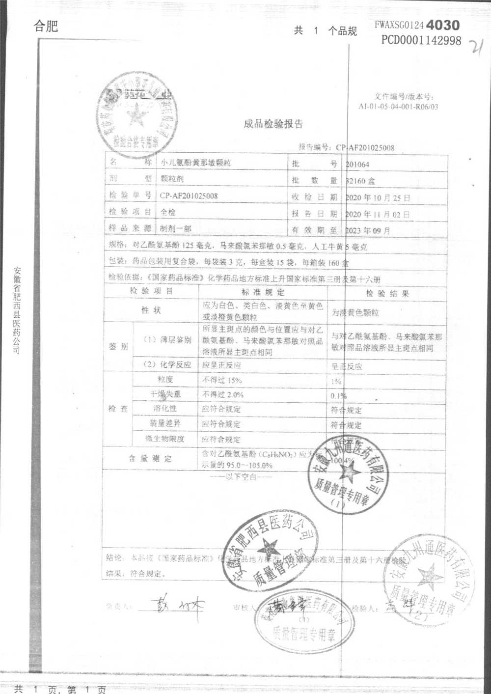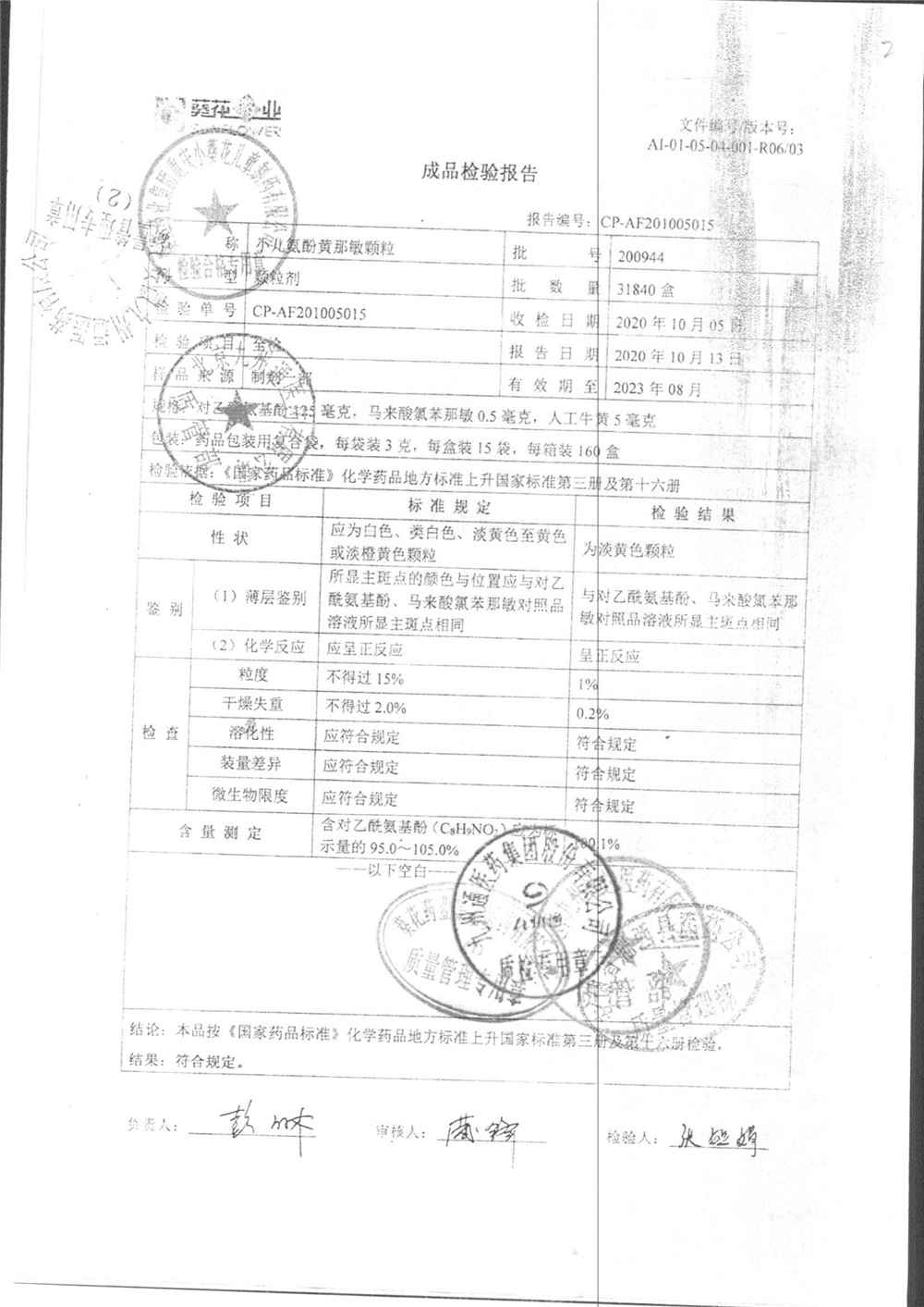 小儿氨酚黄那敏颗粒 | 3g*15袋 | 200306 | 查看详情 |