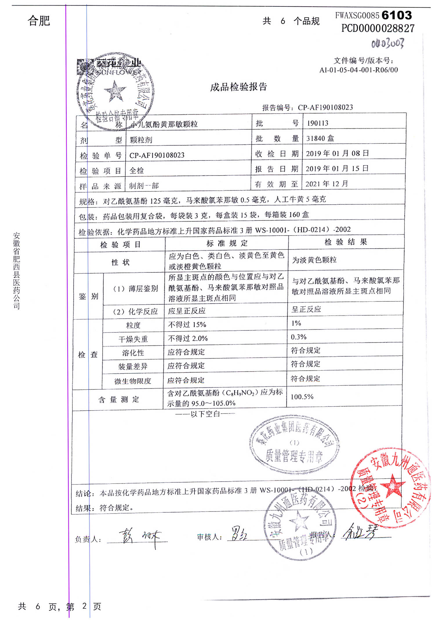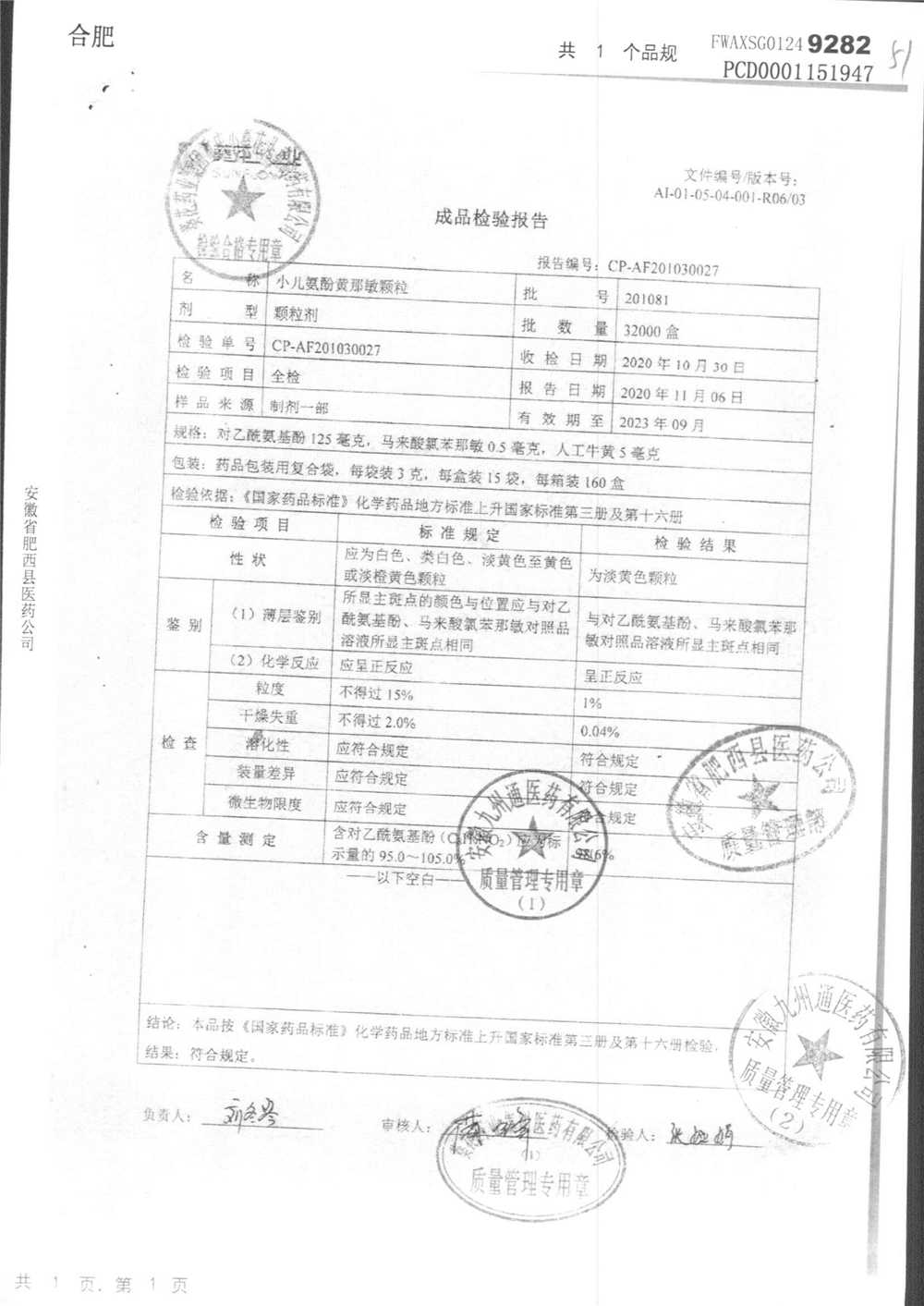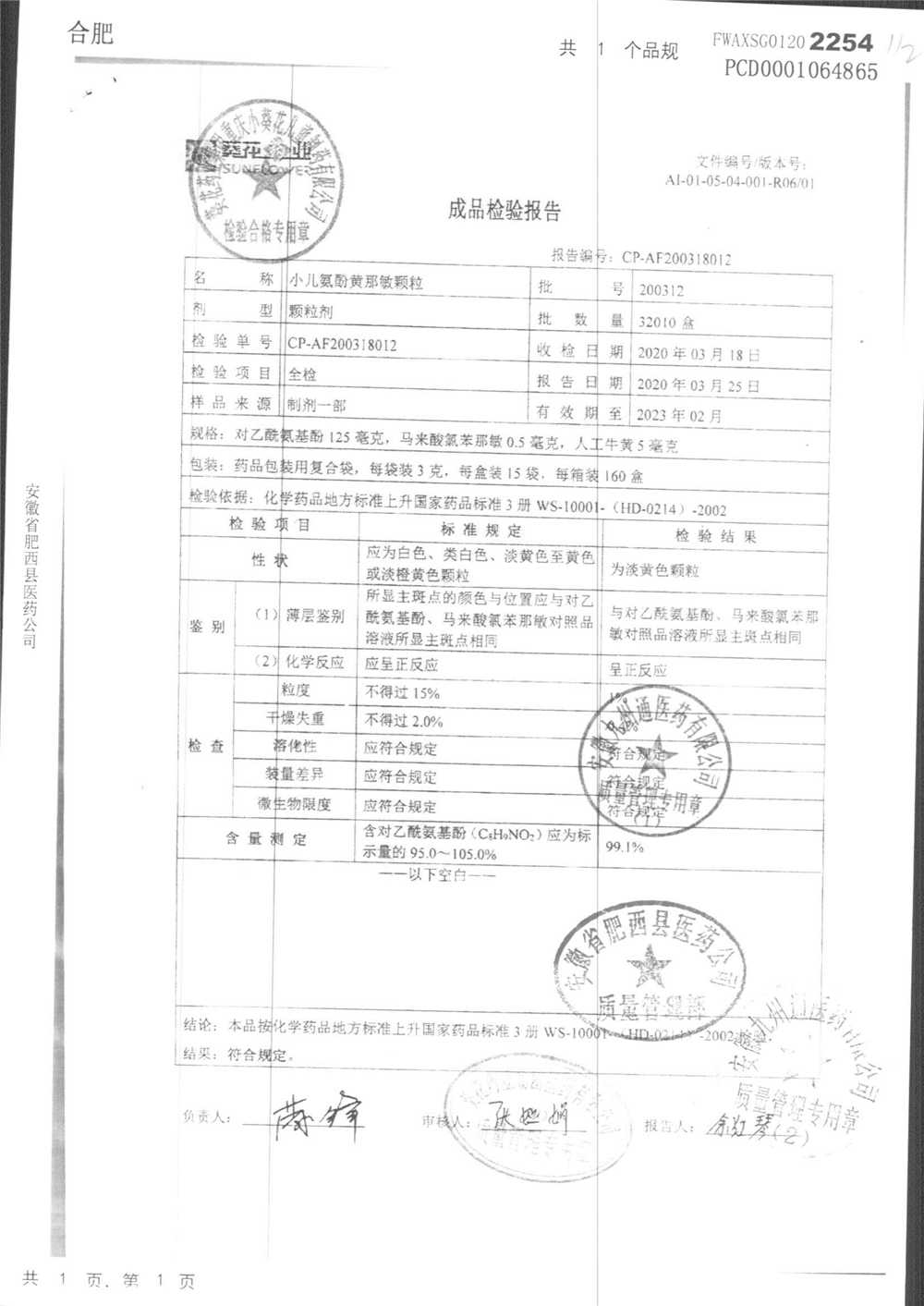 小儿氨酚黄那敏颗粒 | 3g*15袋 | 200306 | 查看详情 |