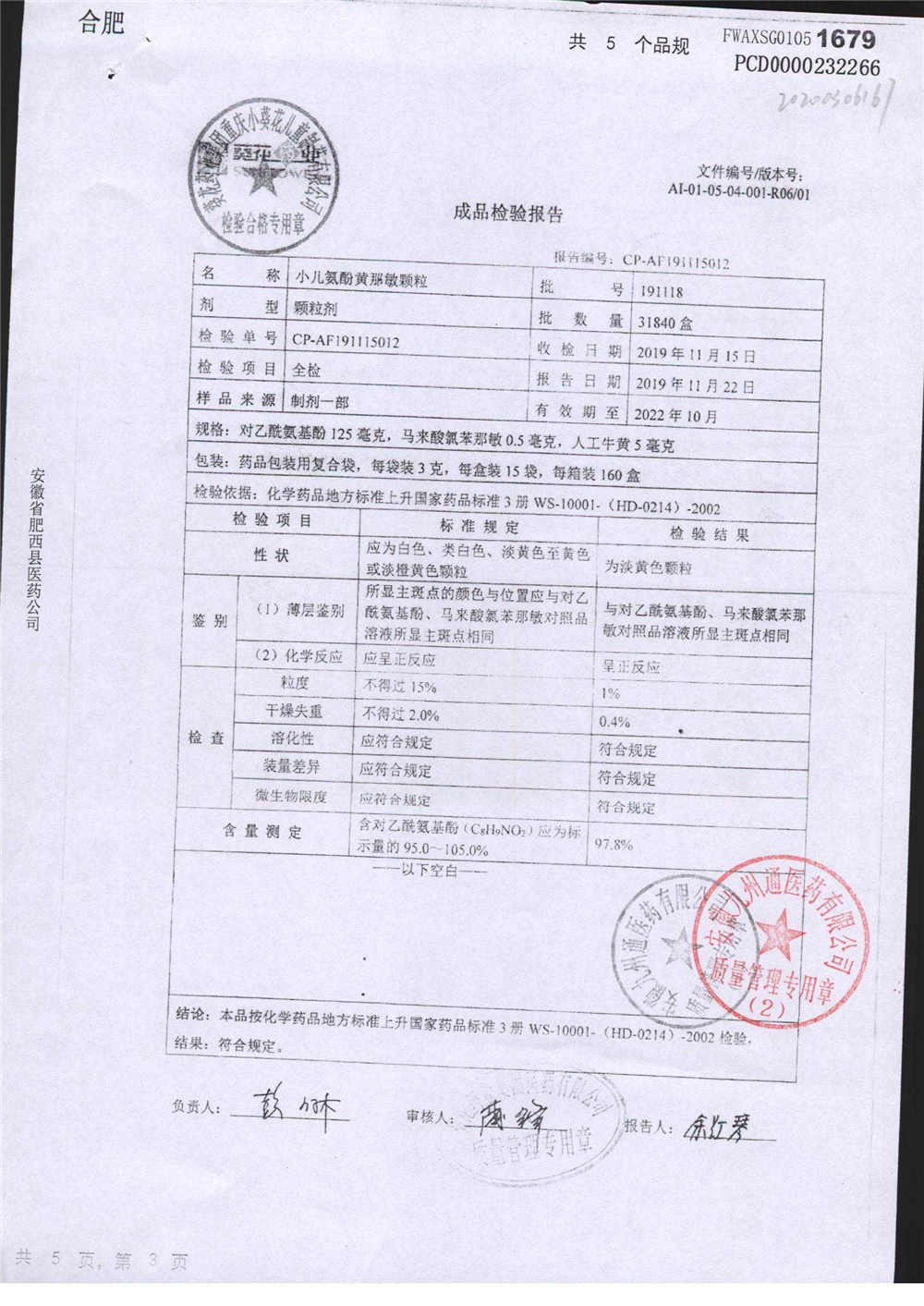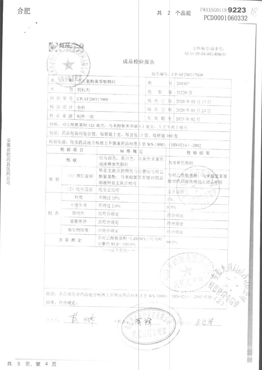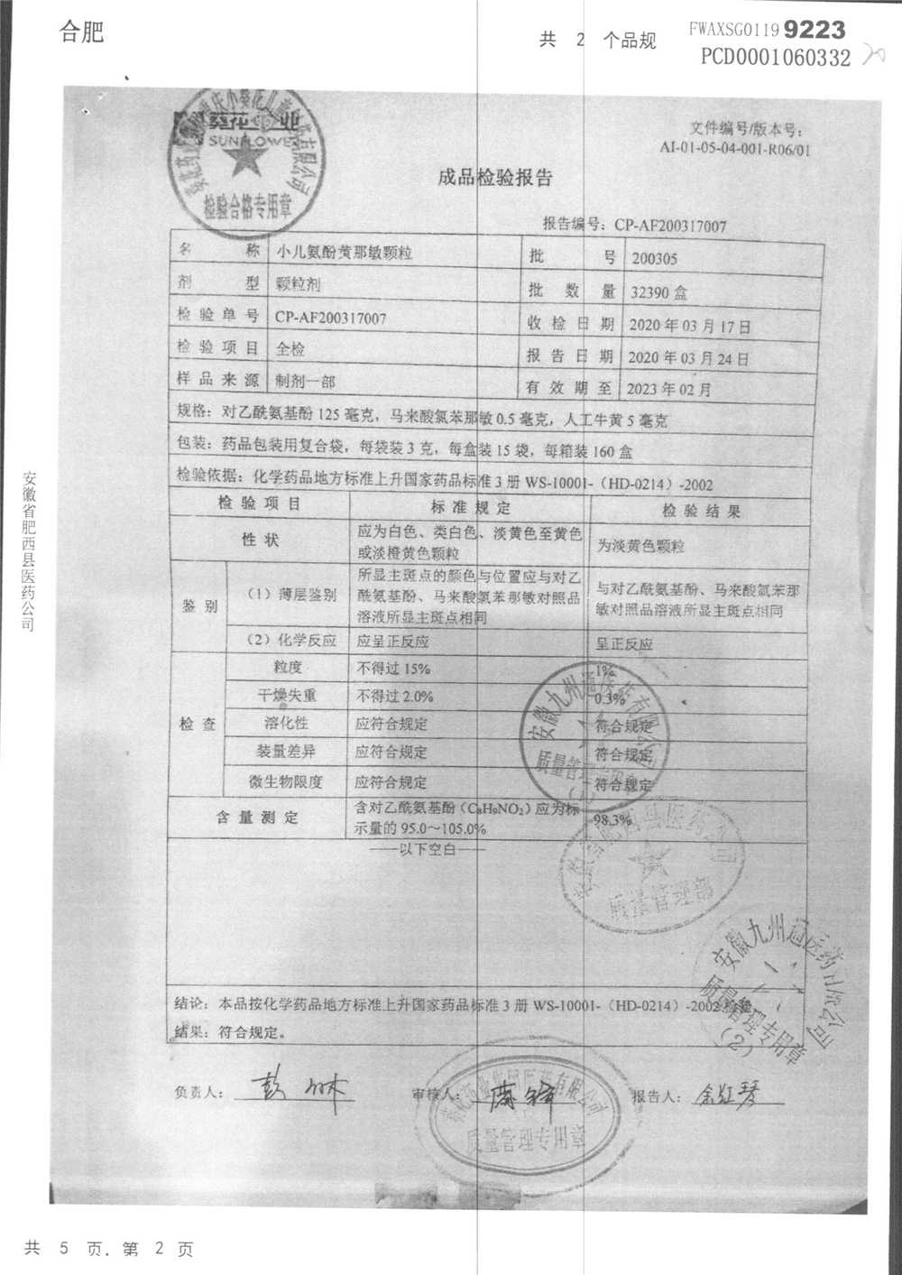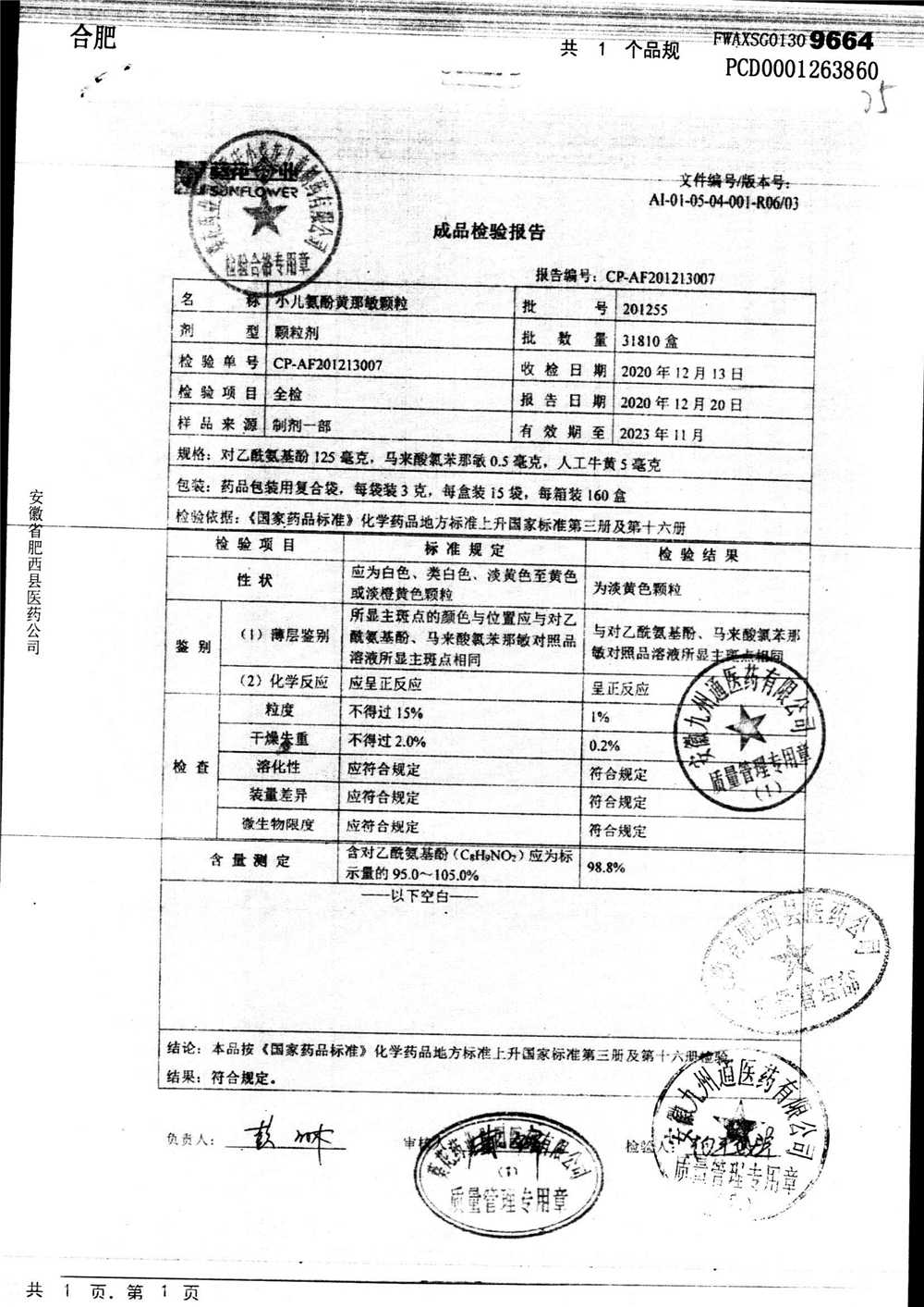 小儿氨酚黄那敏颗粒 | 3g*15袋 | 200306 | 查看详情 |