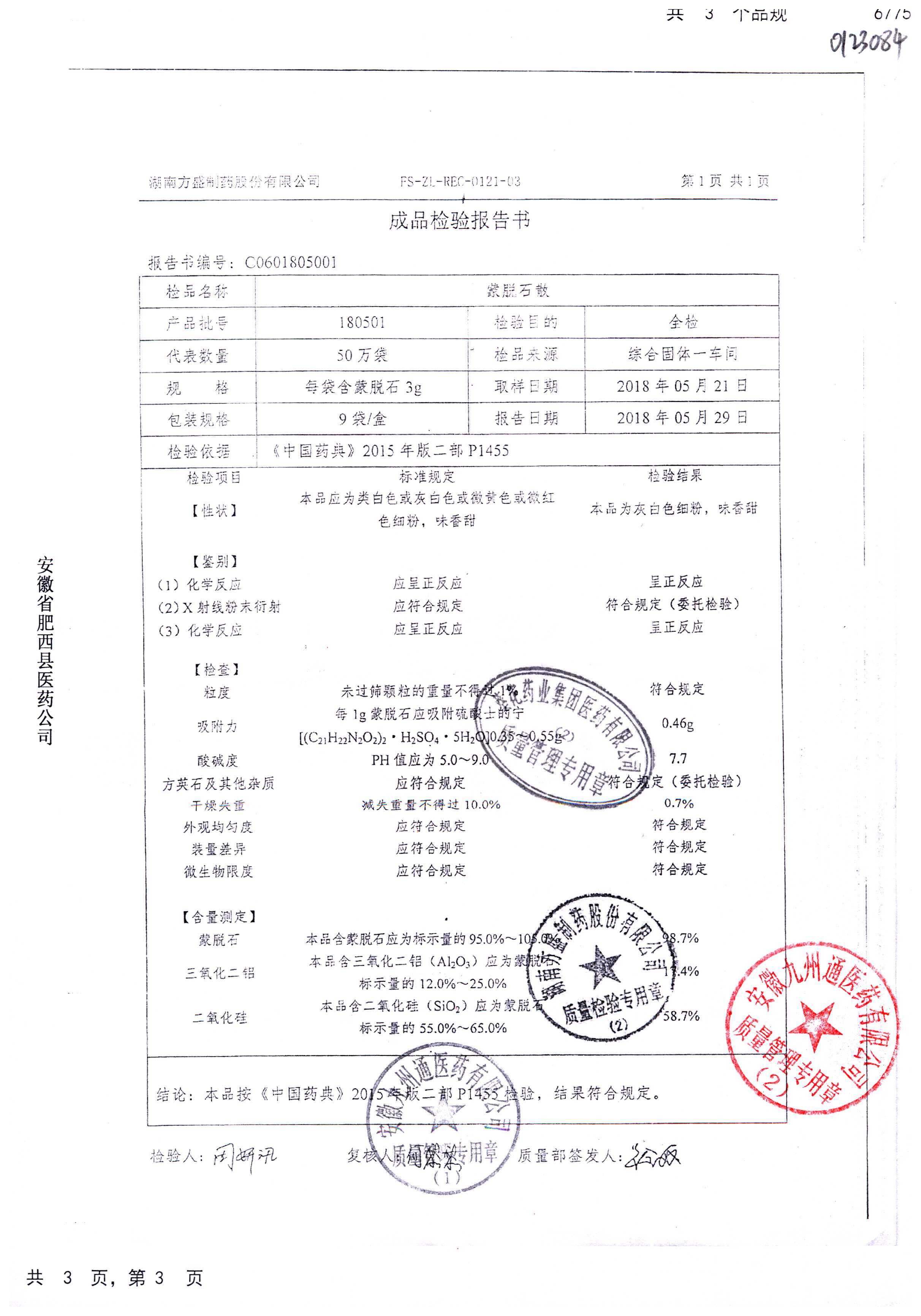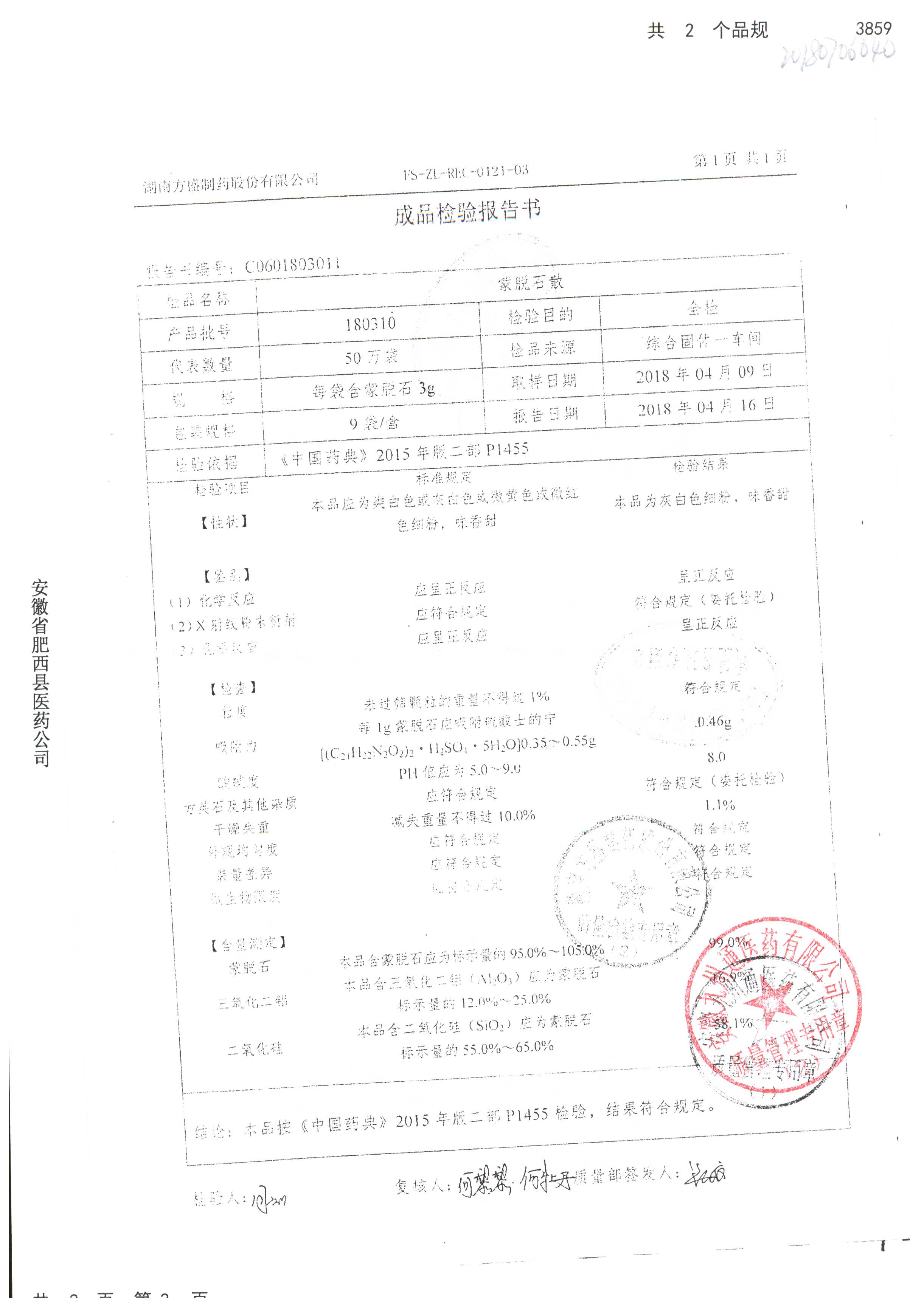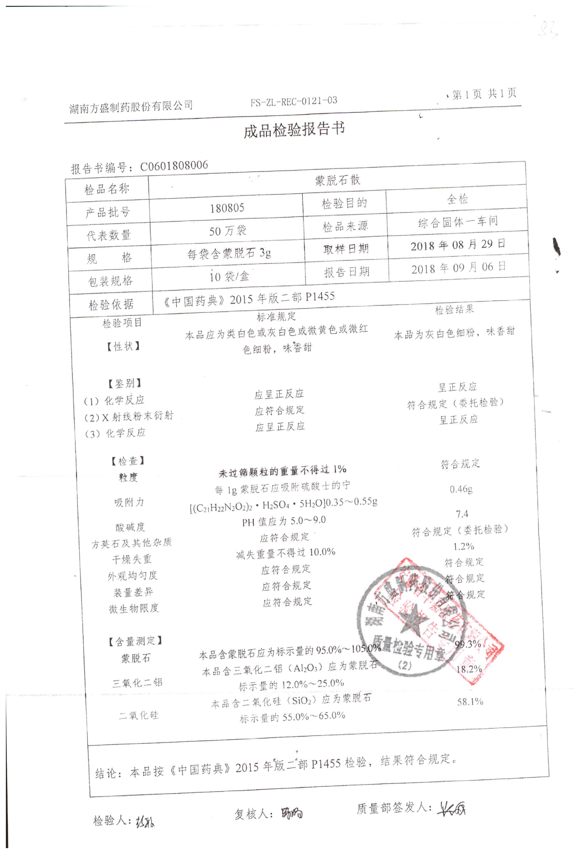 蒙脱石散 | 3g*9袋 | 180805 | 查看详情 |