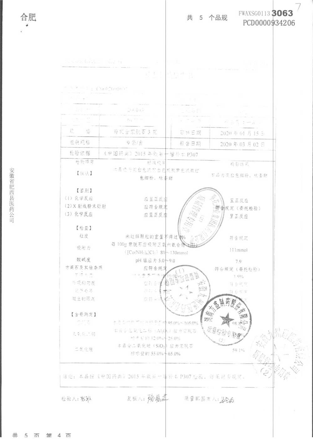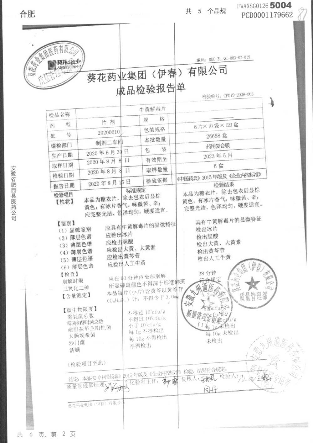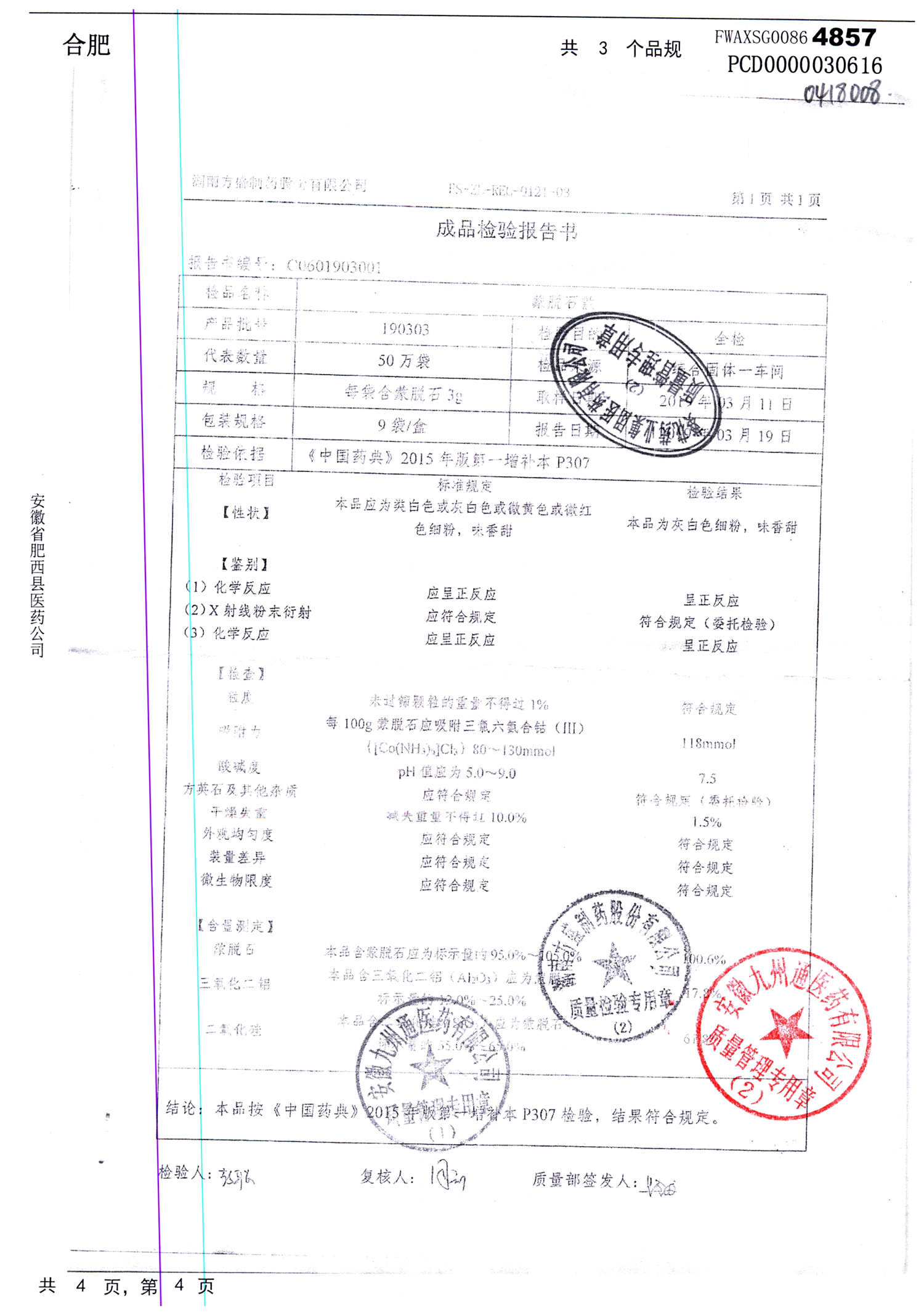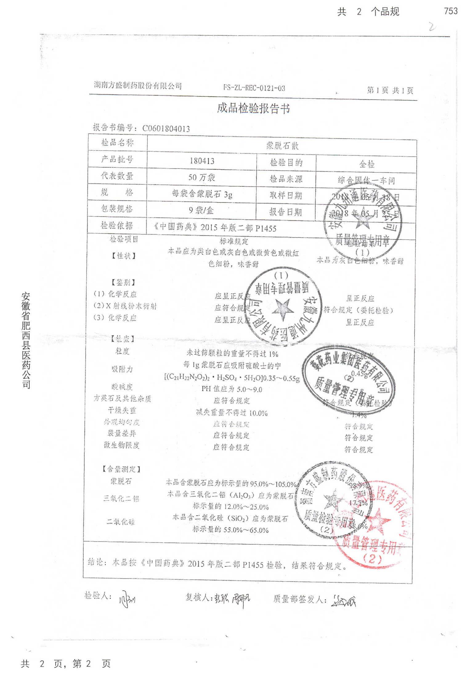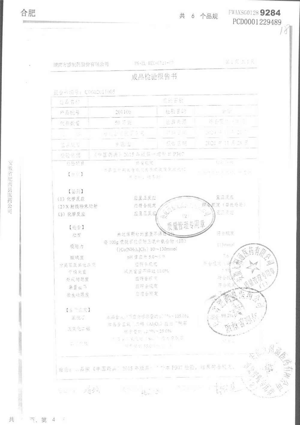 名称 | 规格 | 批号 | 药检报告 |