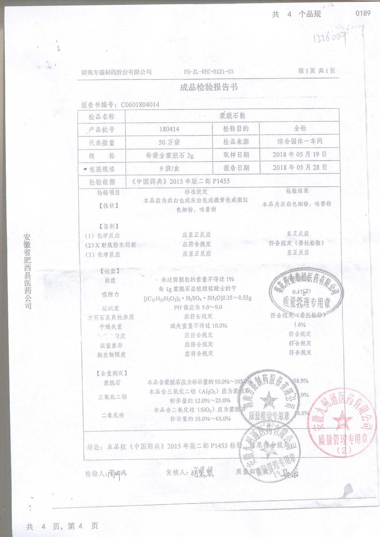 蒙脱石散 | 3g*9袋 | 180414 | 查看详情 |