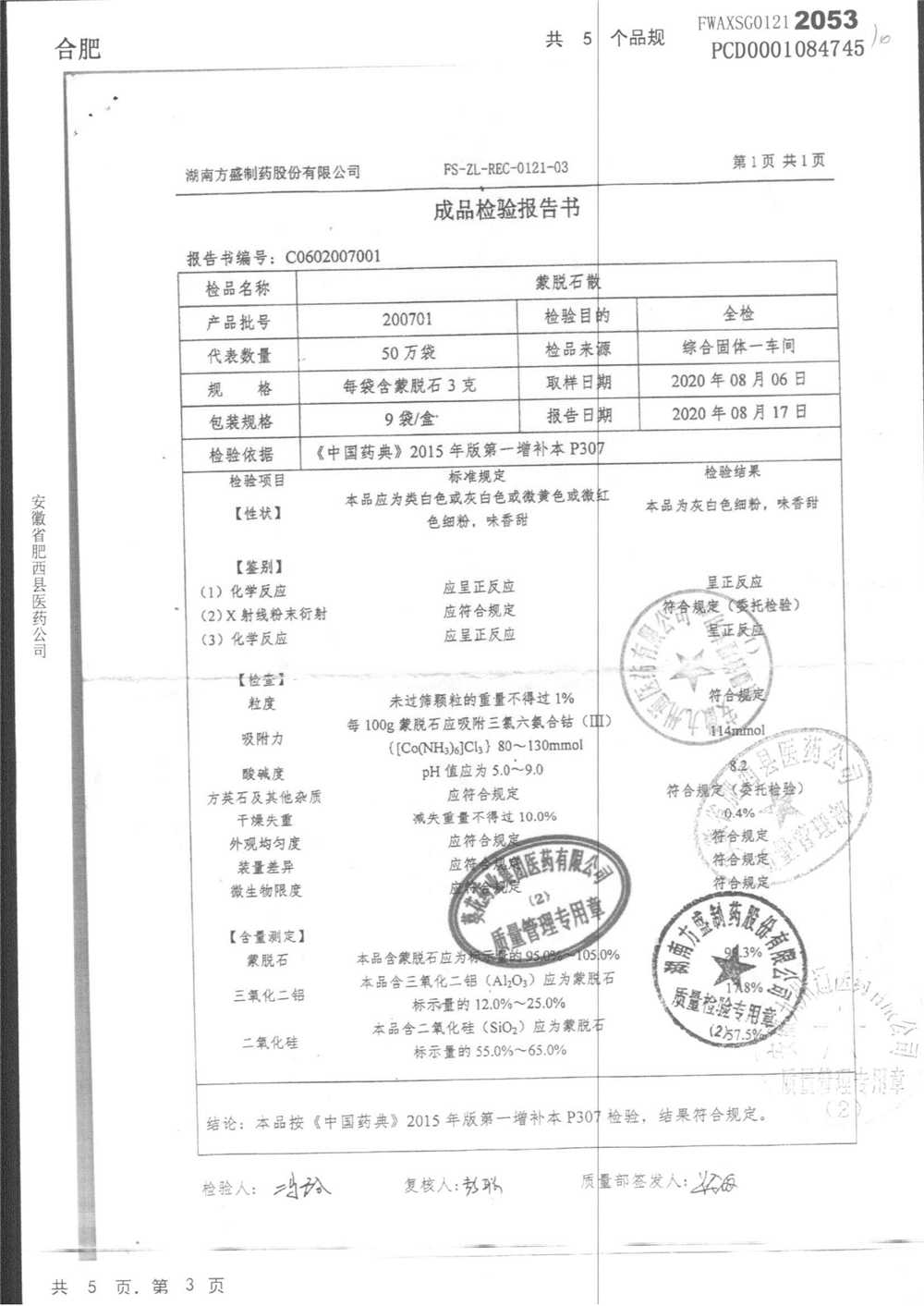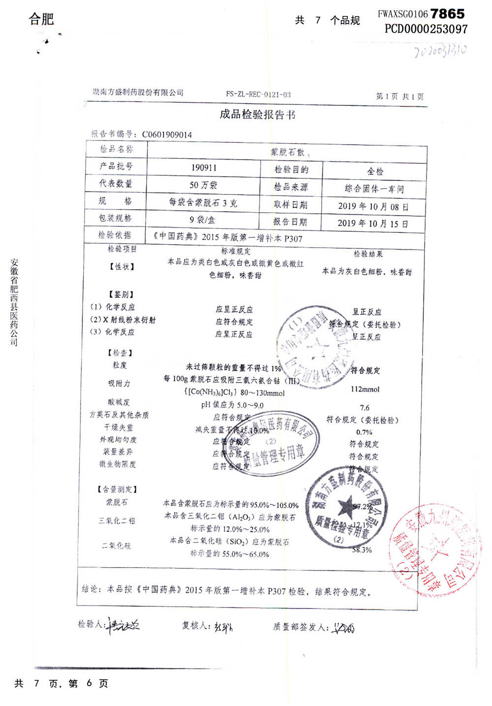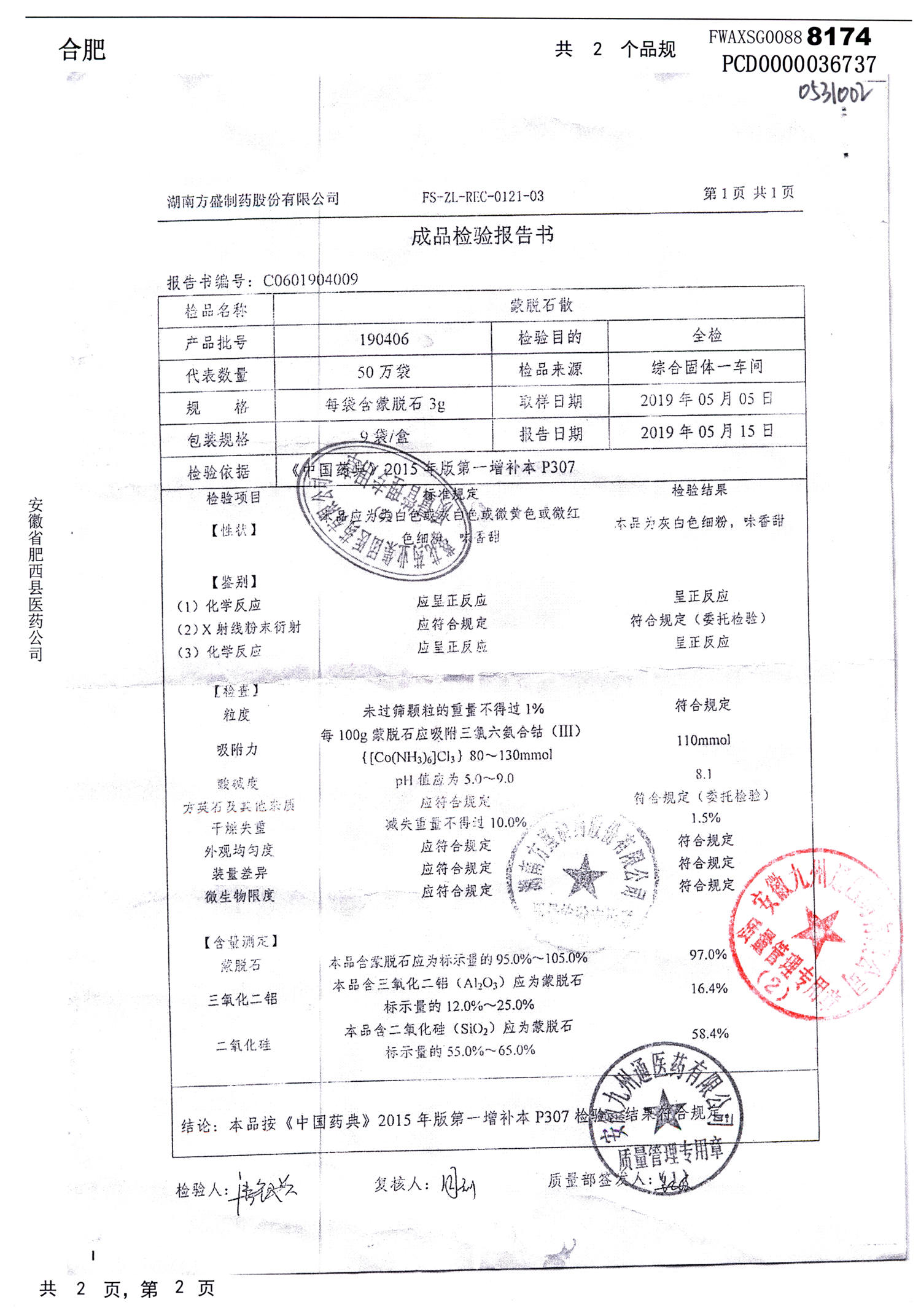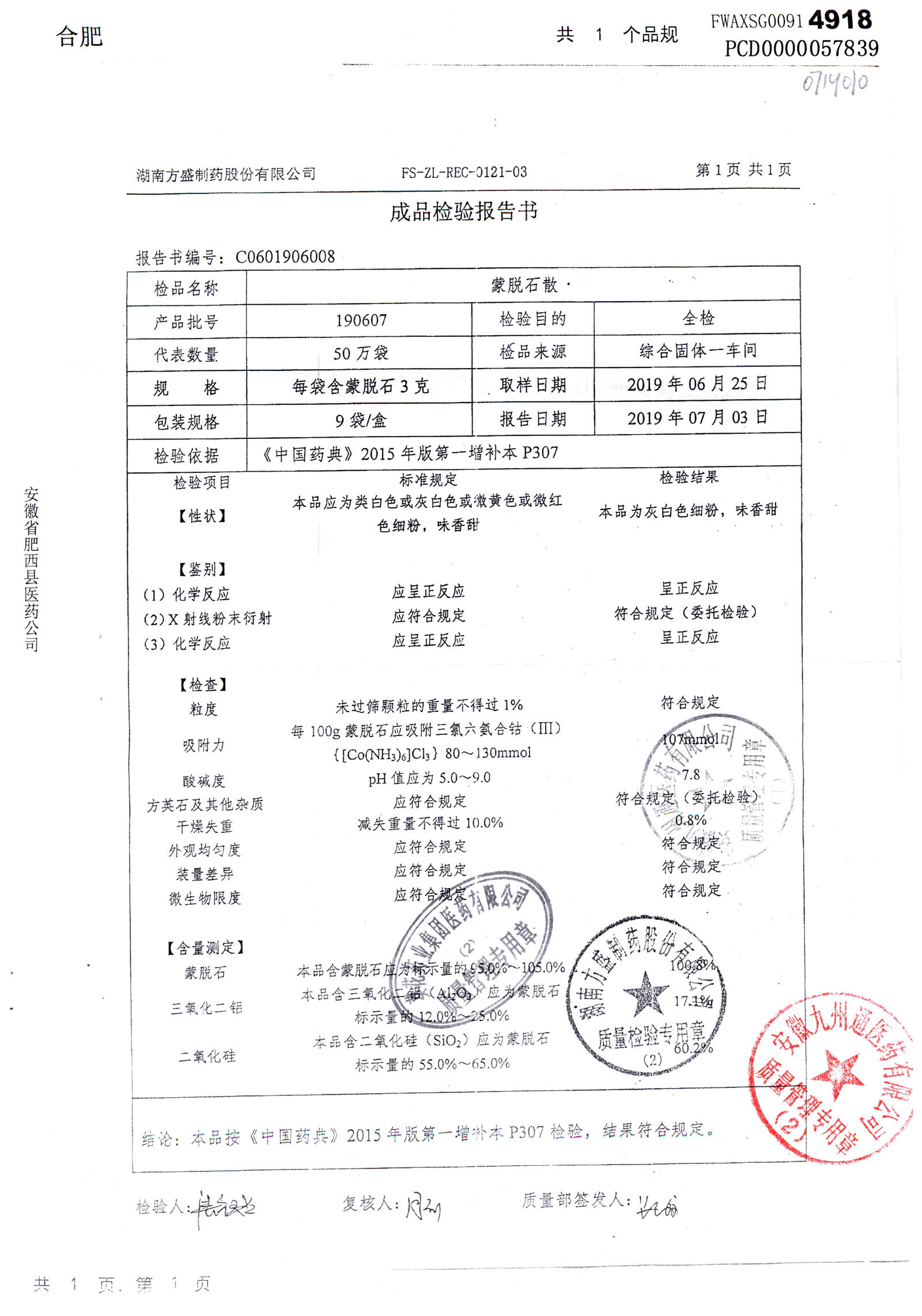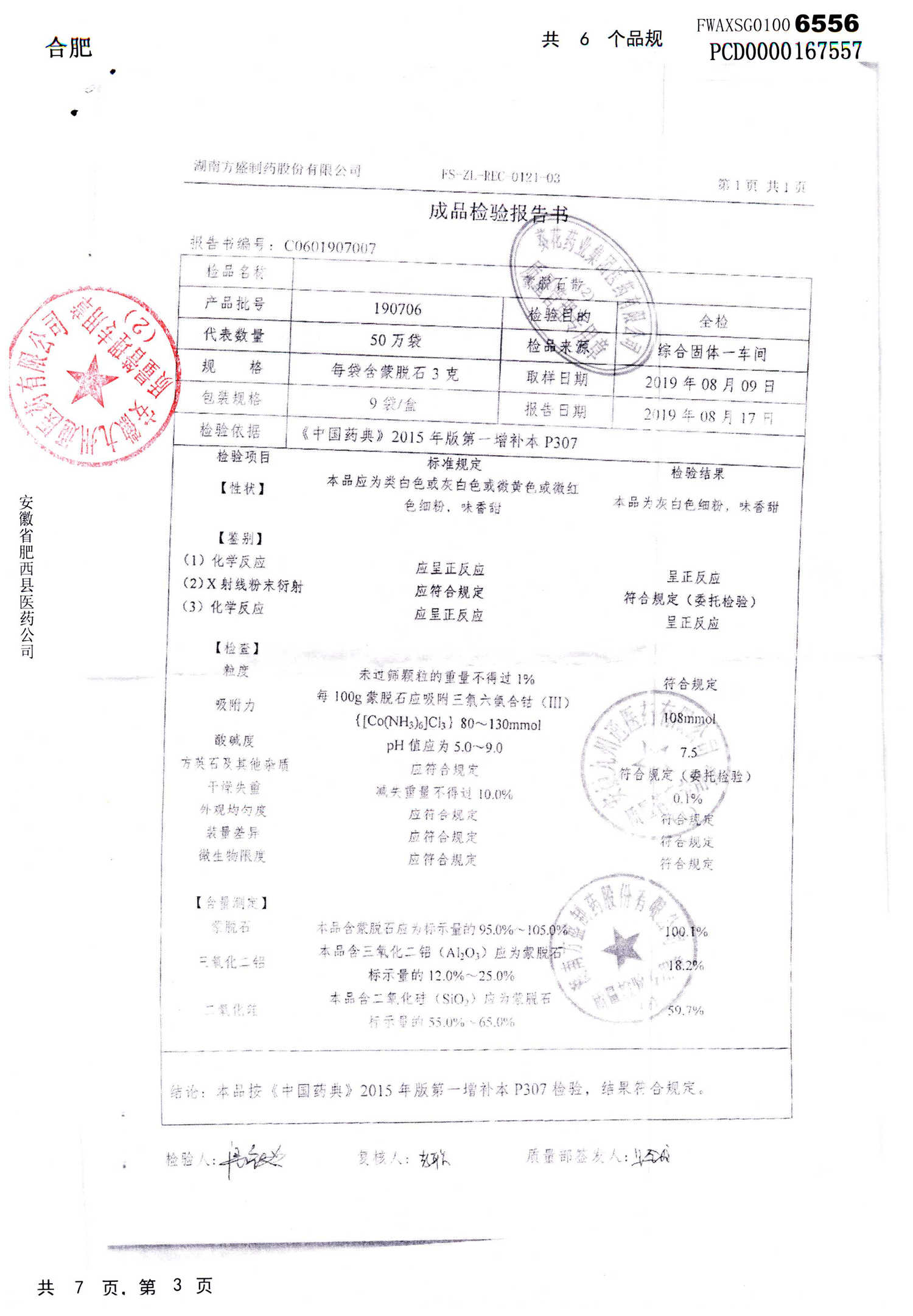 蒙脱石散 | 3g*9袋 | 190607 | 查看详情 |