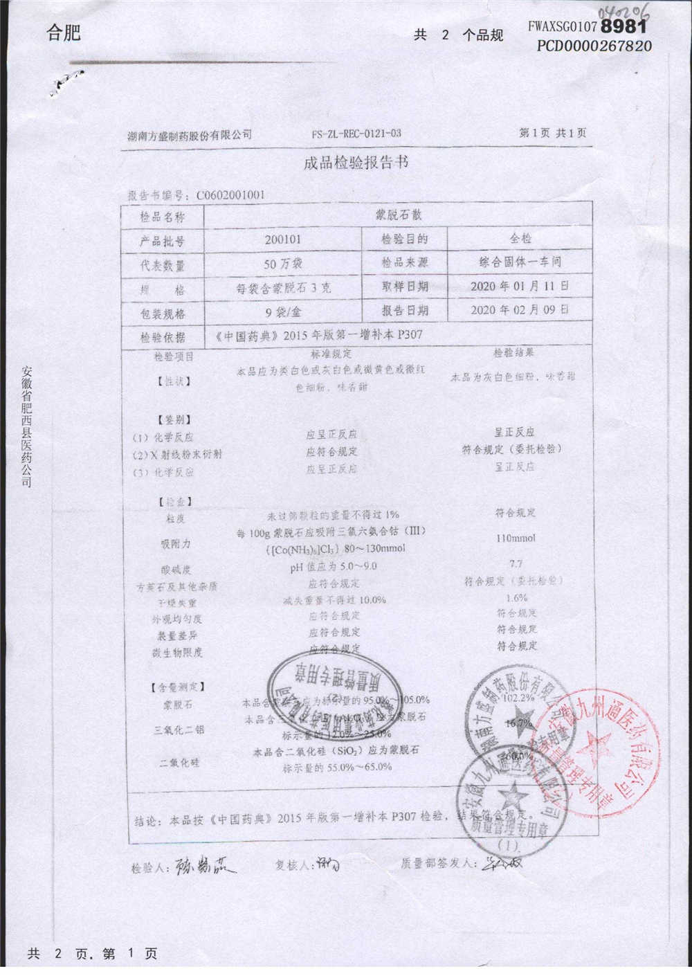 蒙脱石散 | 3g*9袋 | 201106 | 查看详情 |