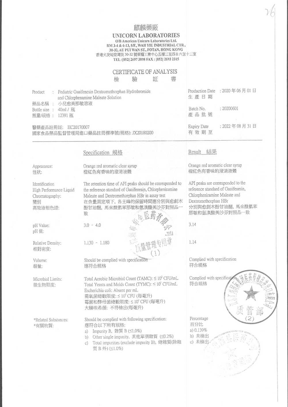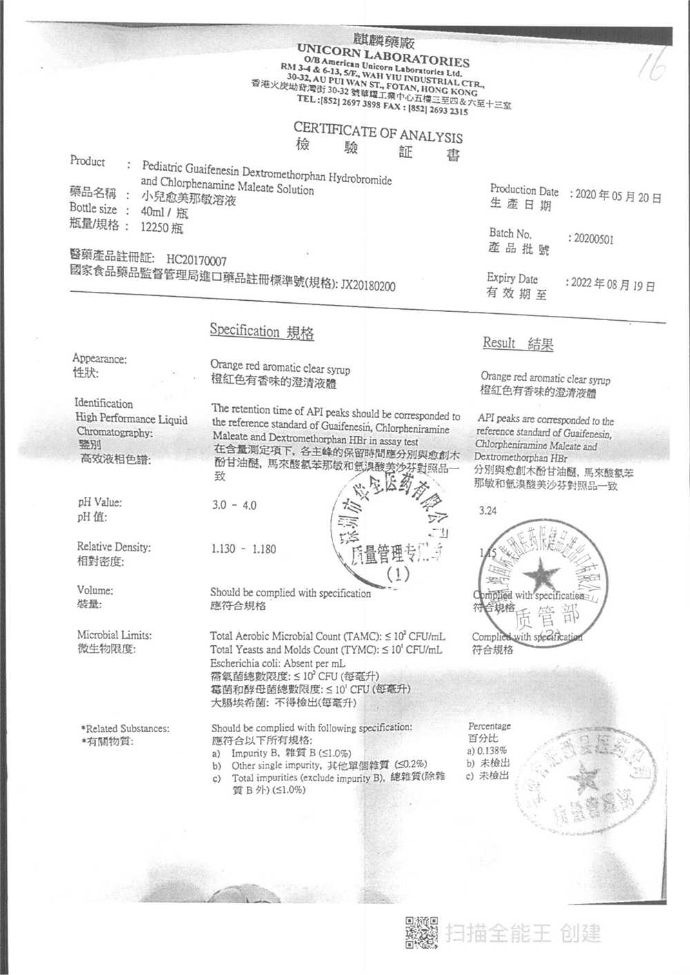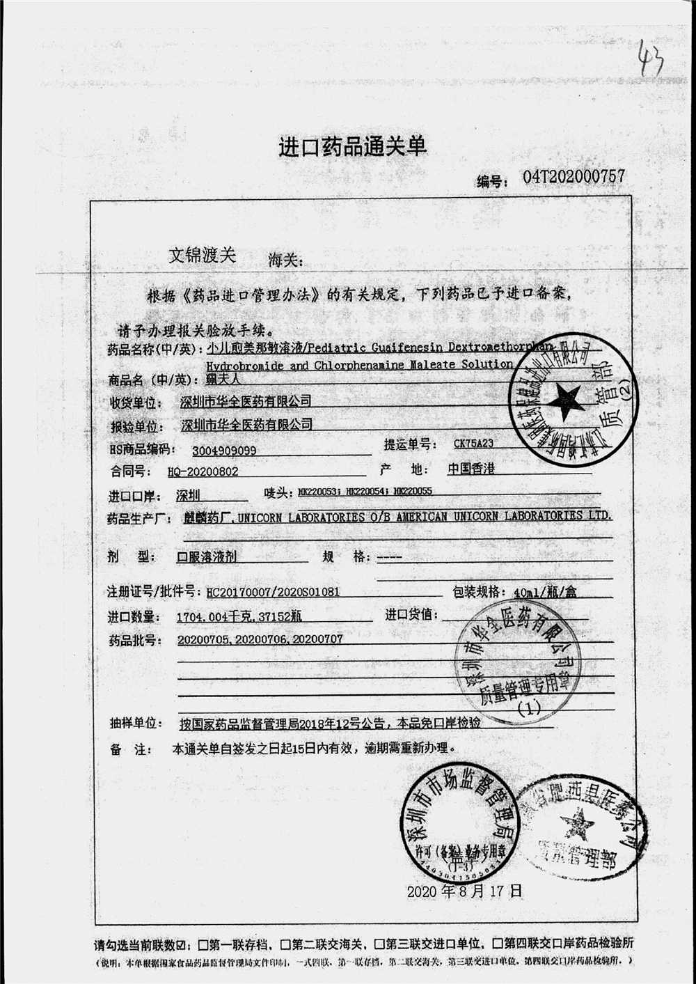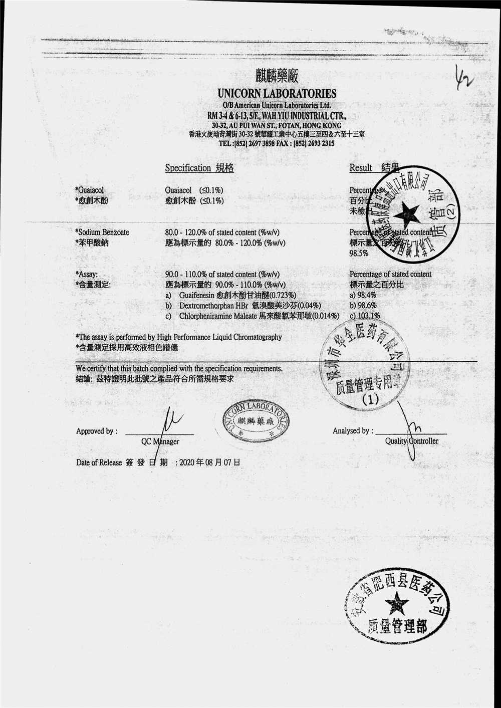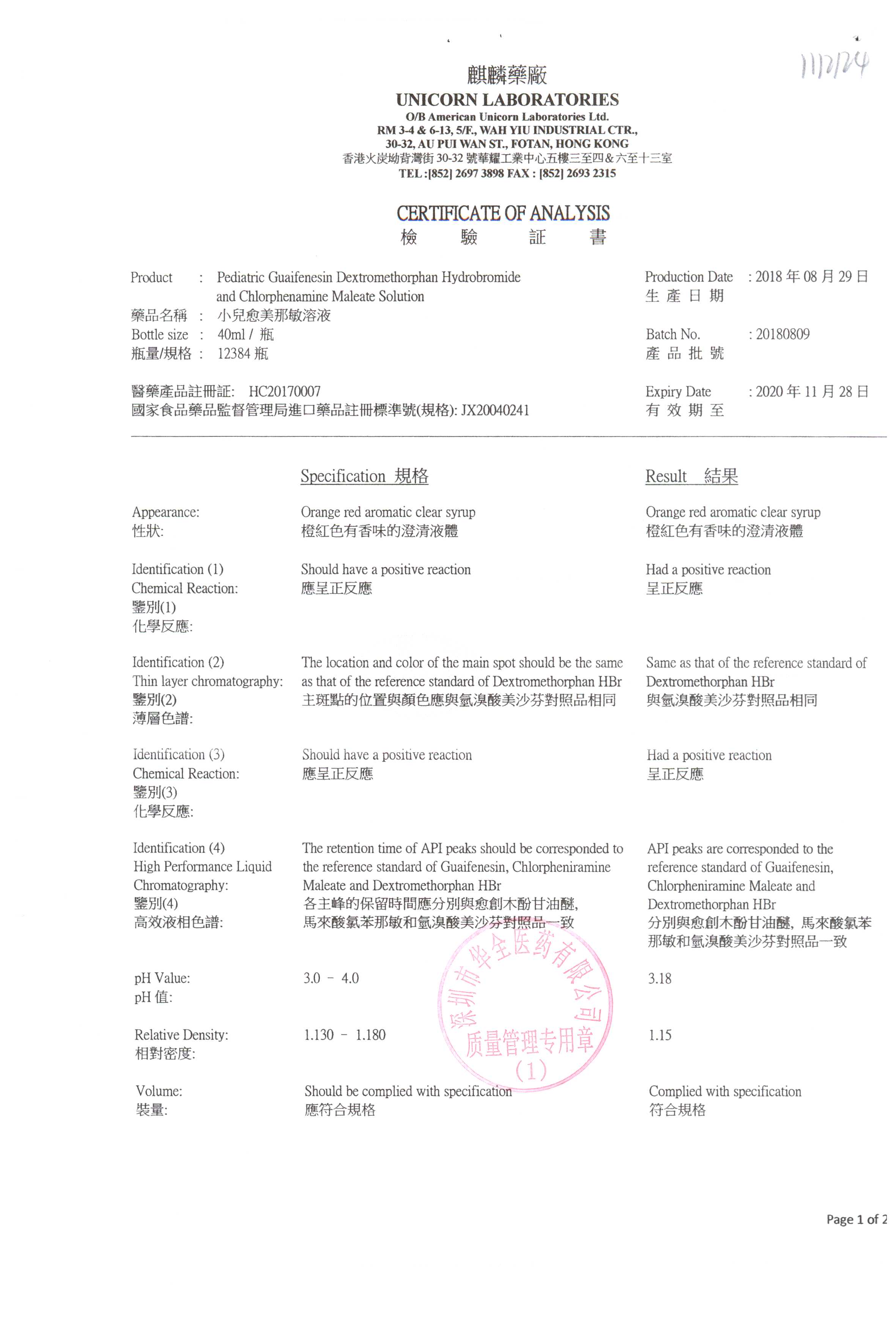 小儿愈美那敏溶液 | 40ml | 20180809(4/4) | 查看详情 |