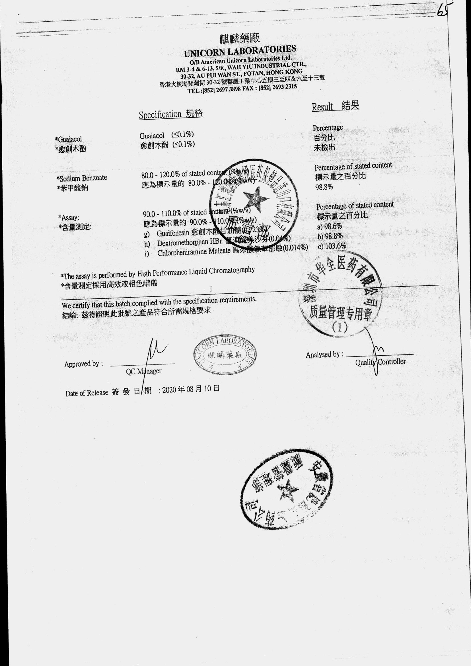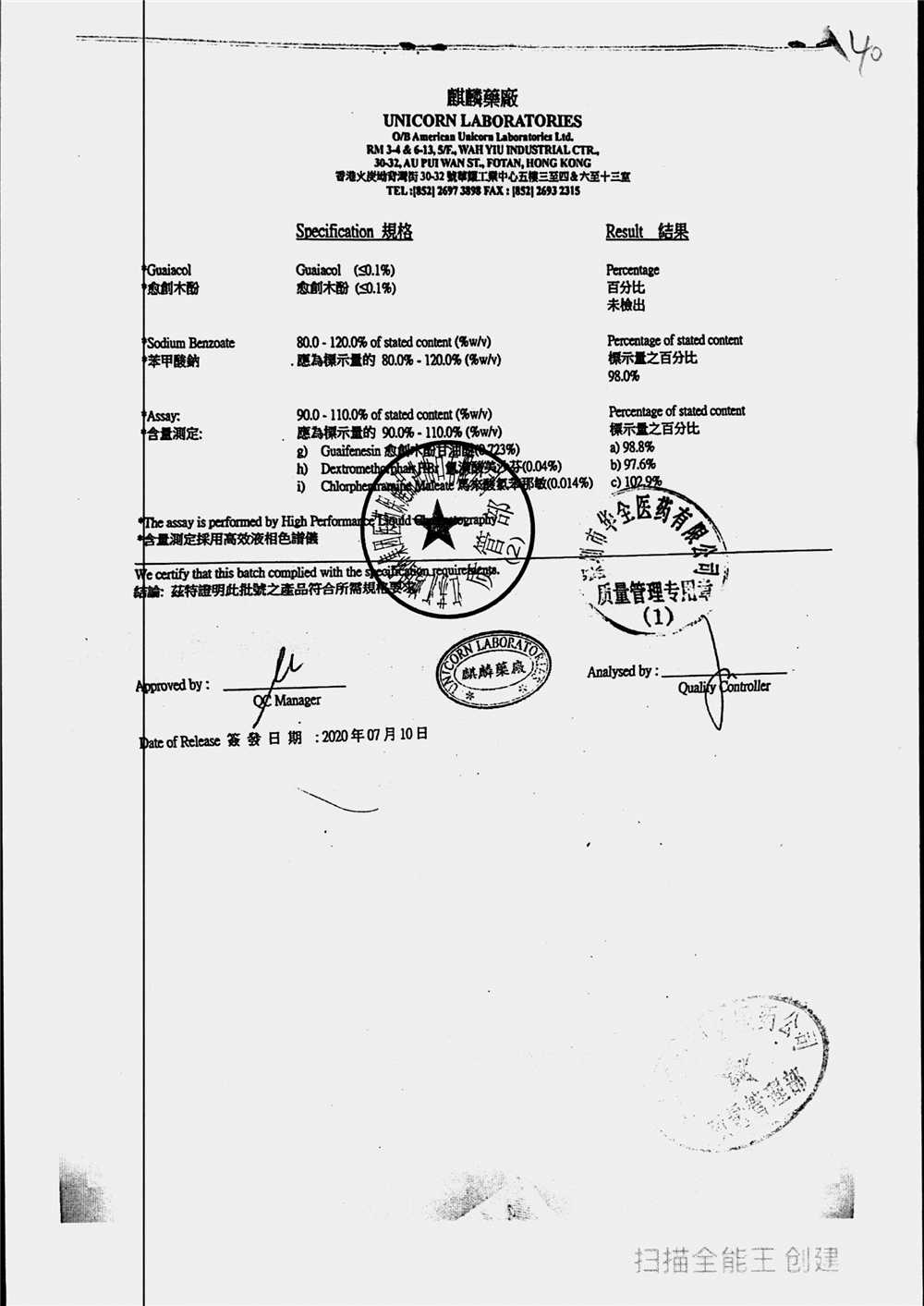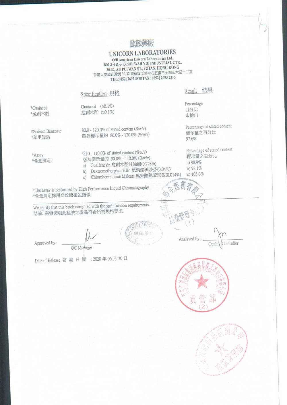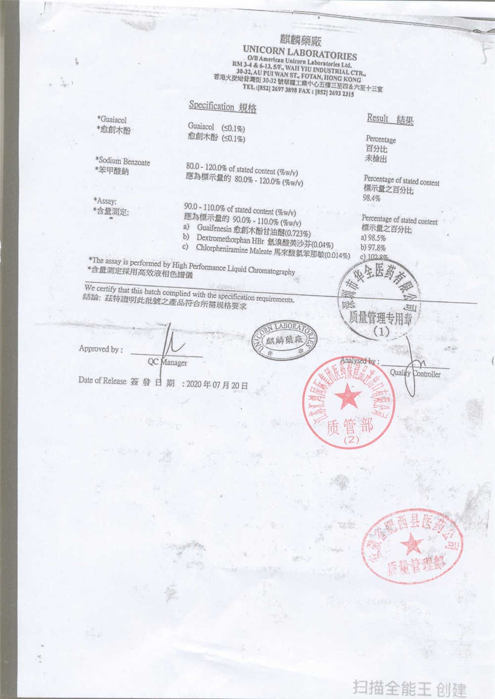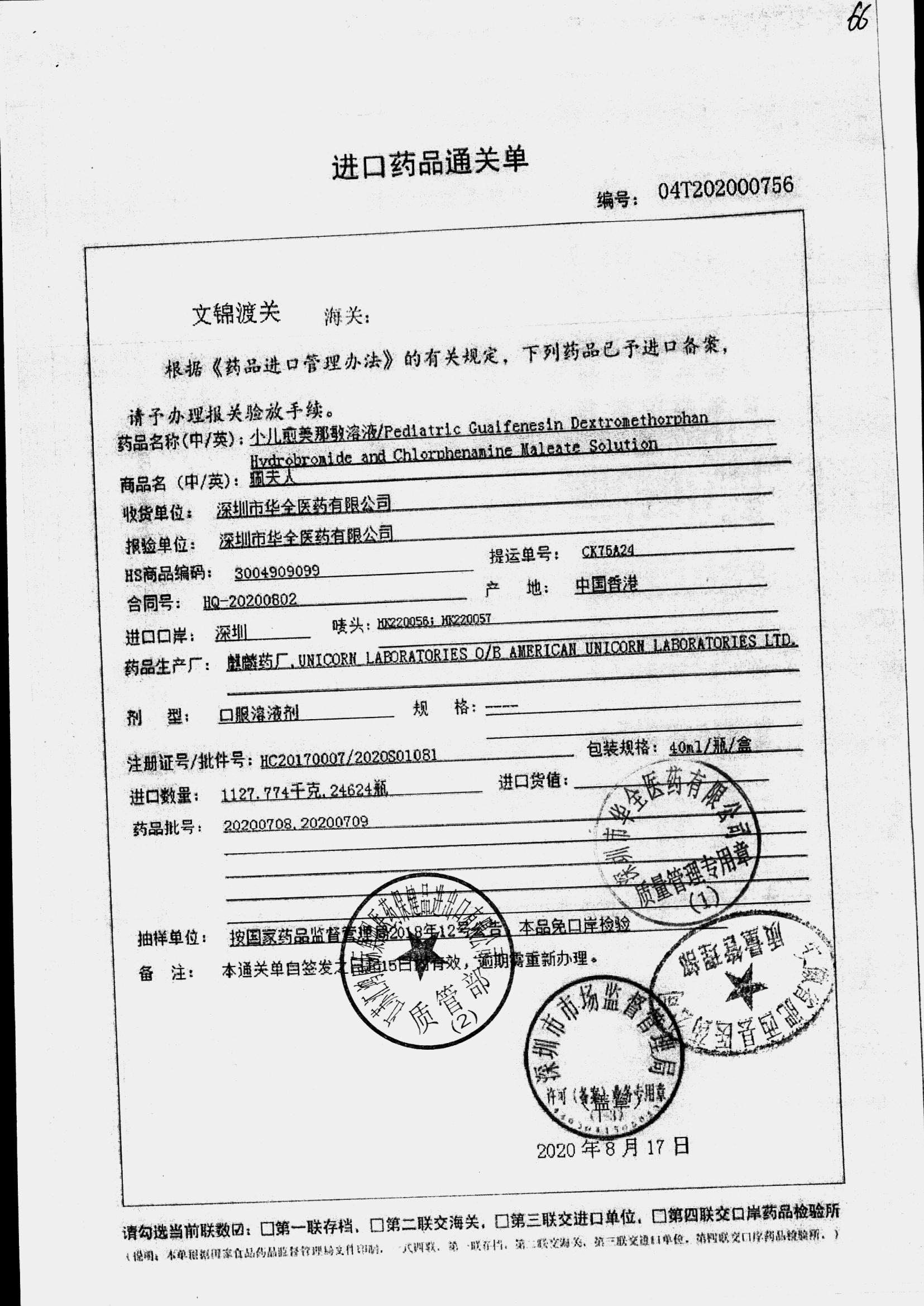 小儿愈美那敏溶液 | 40ml | 20180809(4/4) | 查看详情 |
