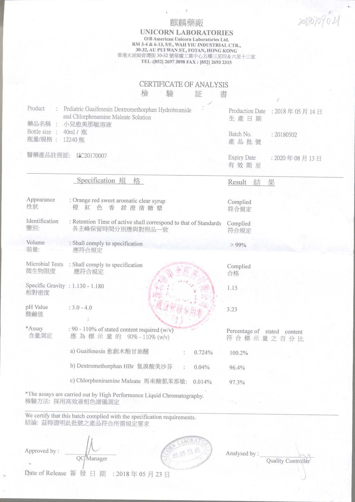 小儿愈美那敏溶液 | 40ml | 20180502(2/3) | 查看详情 |