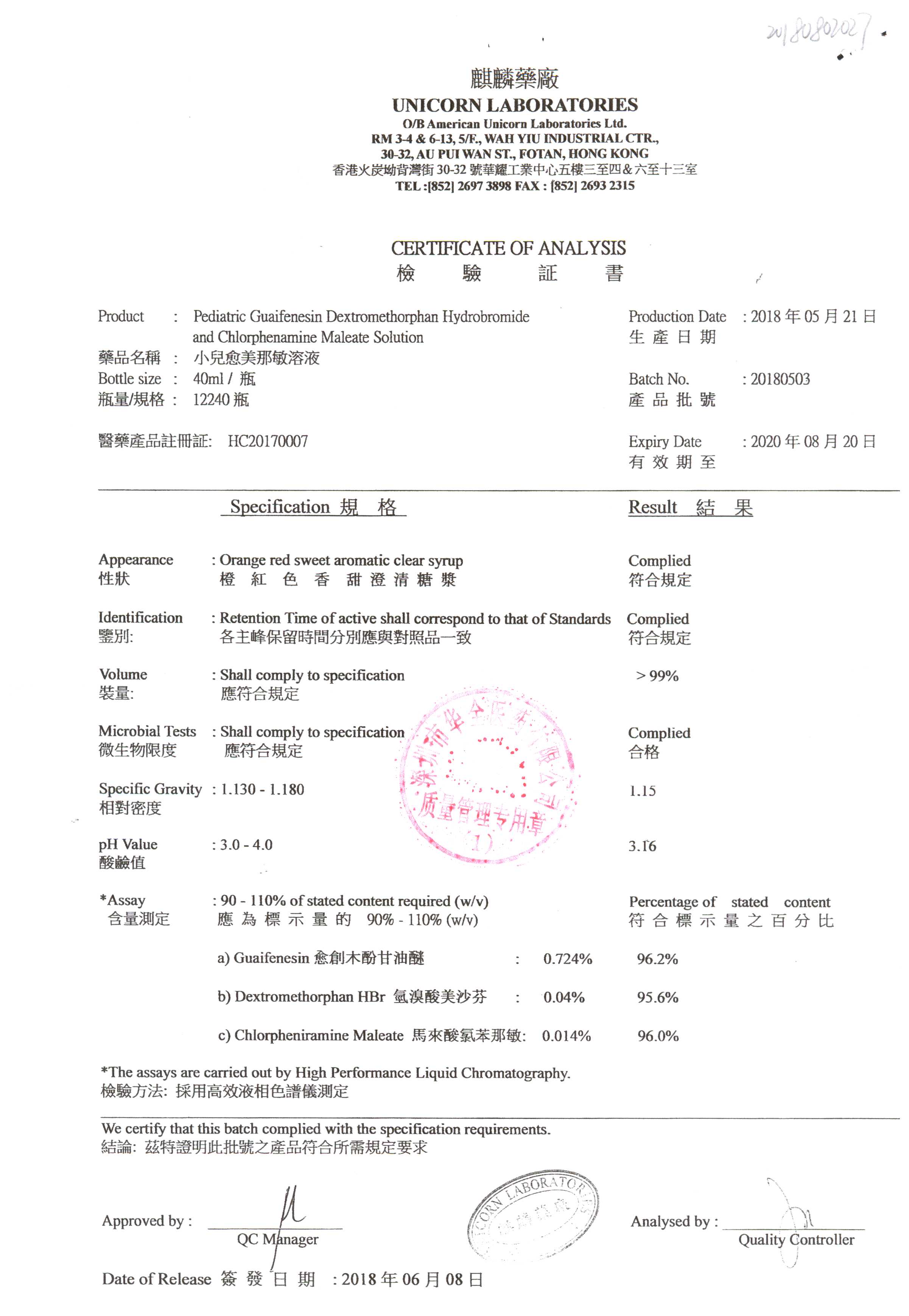 小儿愈美那敏溶液 | 40ml | 20180503(2/3) | 查看详情 |