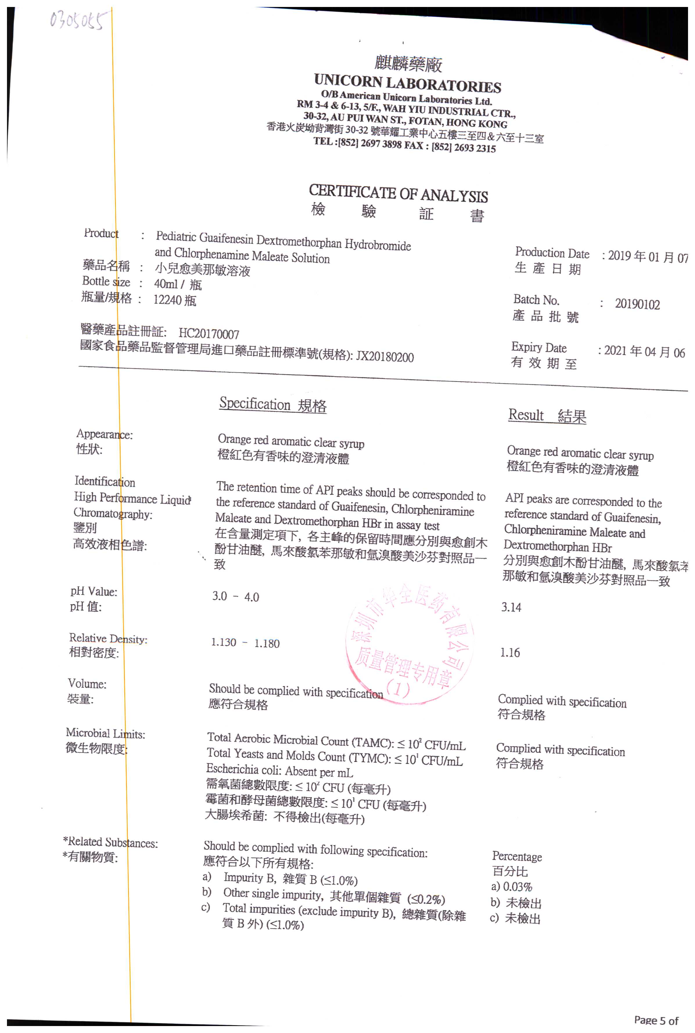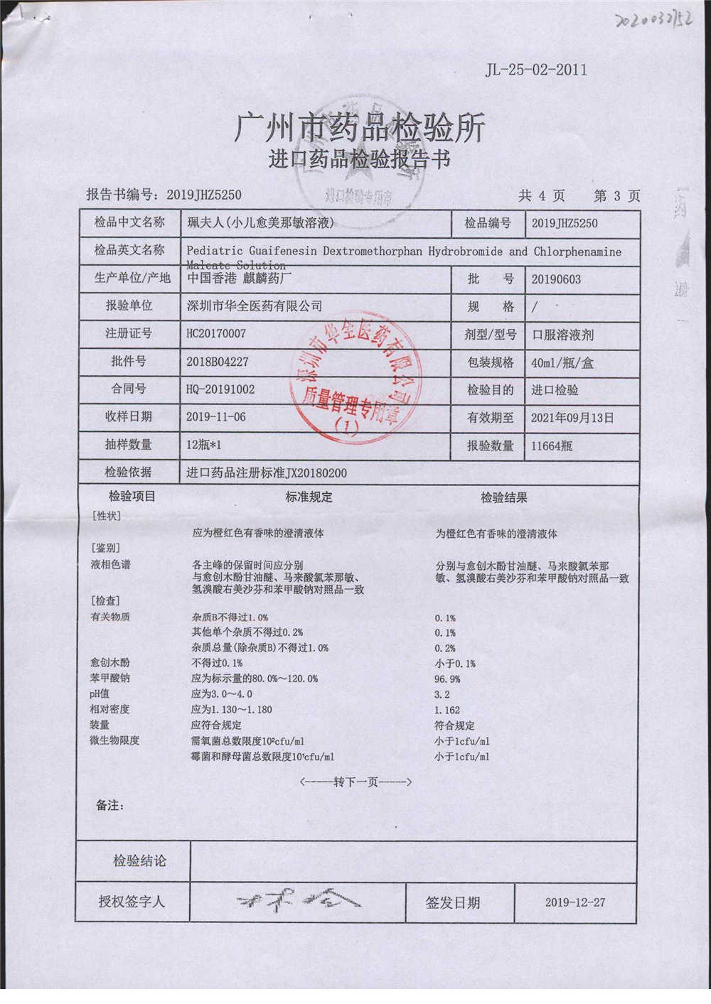 小儿愈美那敏溶液 | 40ml | 20190102(3/4) | 查看详情 |