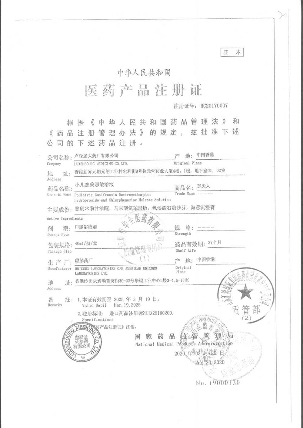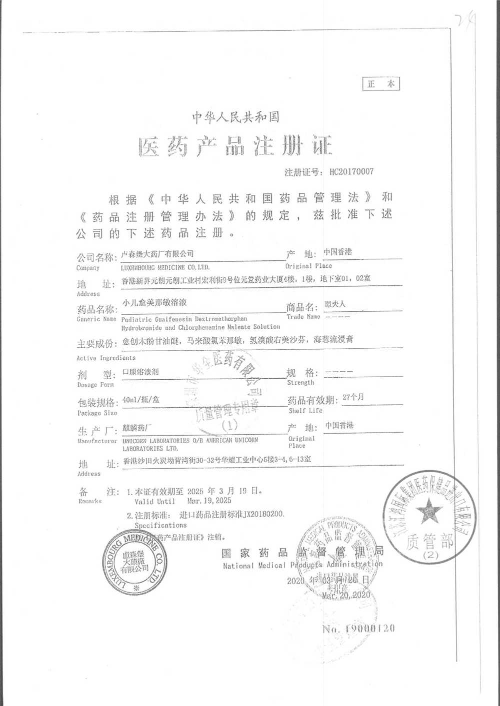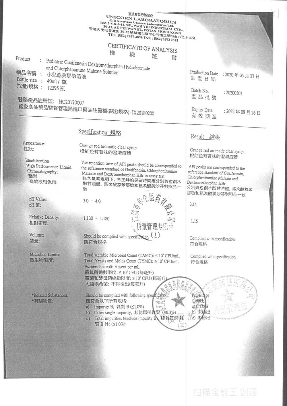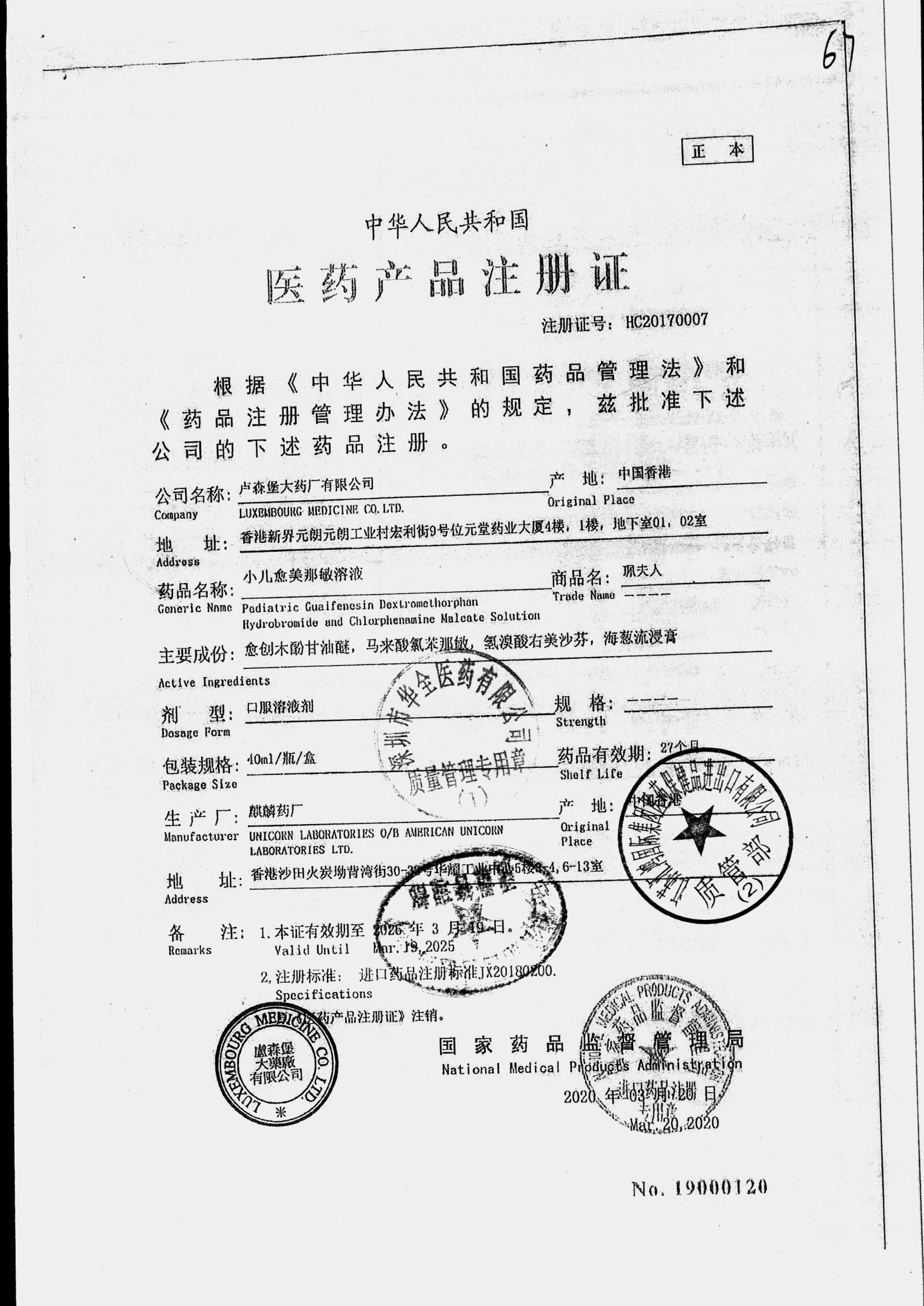 小儿愈美那敏溶液 | 40ml | 20200503(1/2) | 查看详情 |